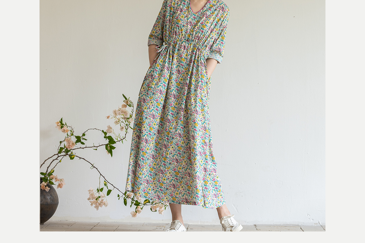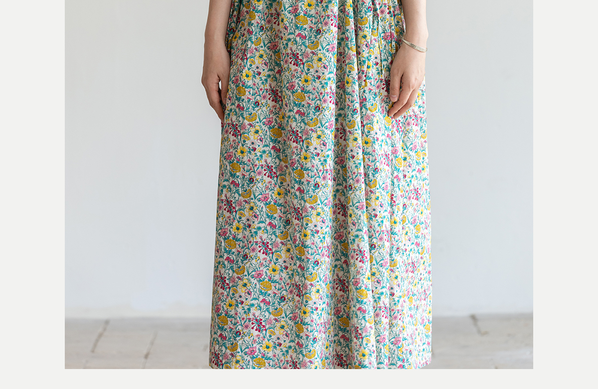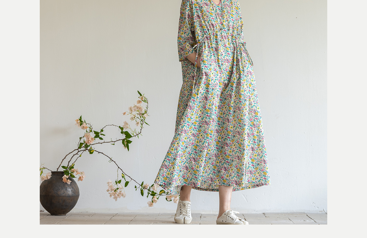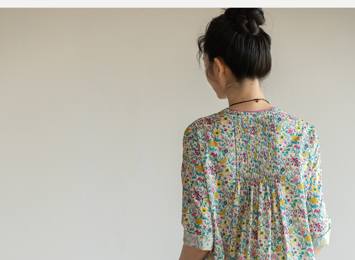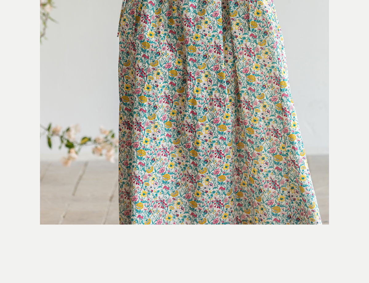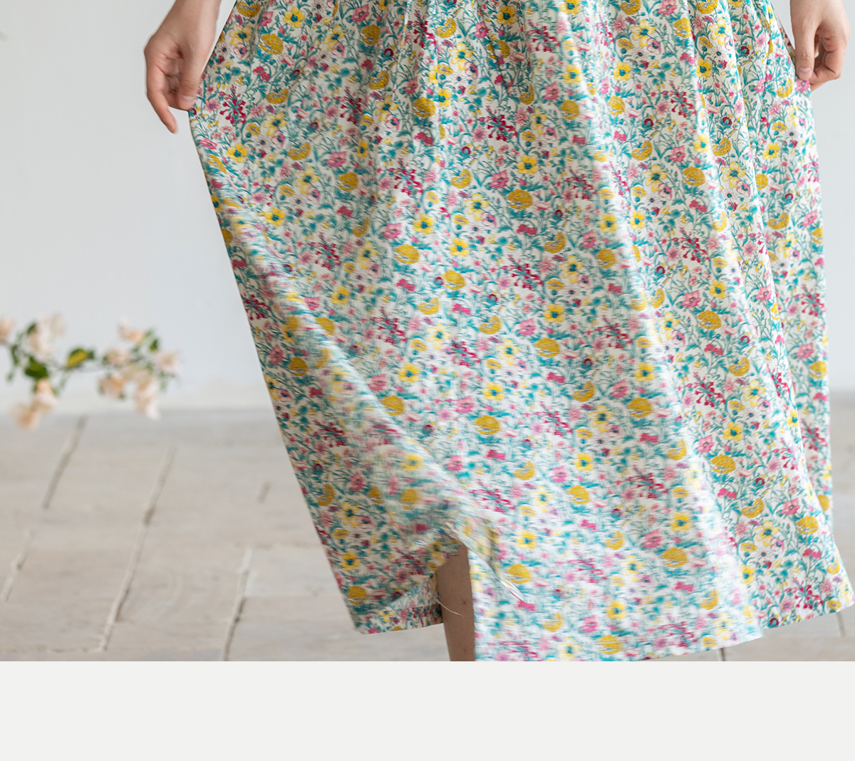 牧衣游原创 小碎花纯棉连衣裙夏日轻薄设计感文艺气质碎花裙 竹青