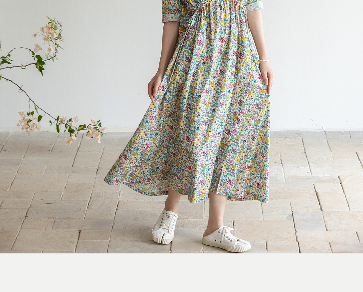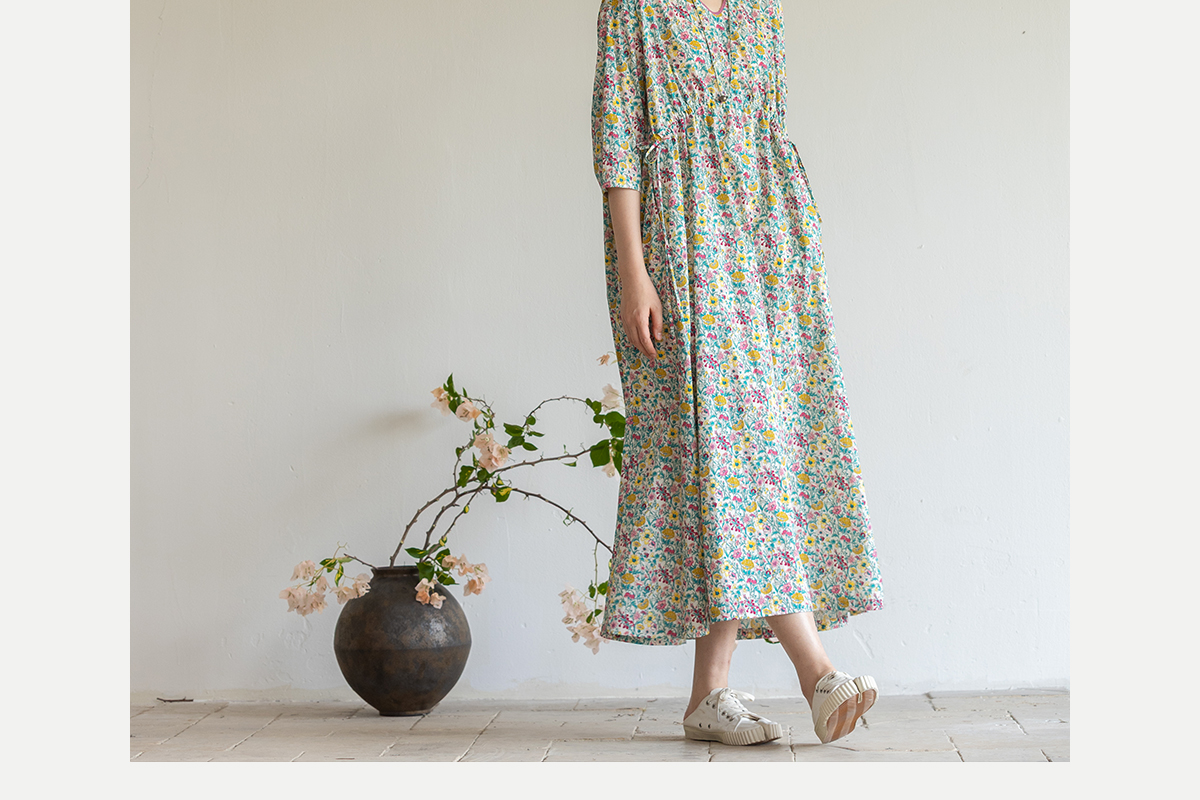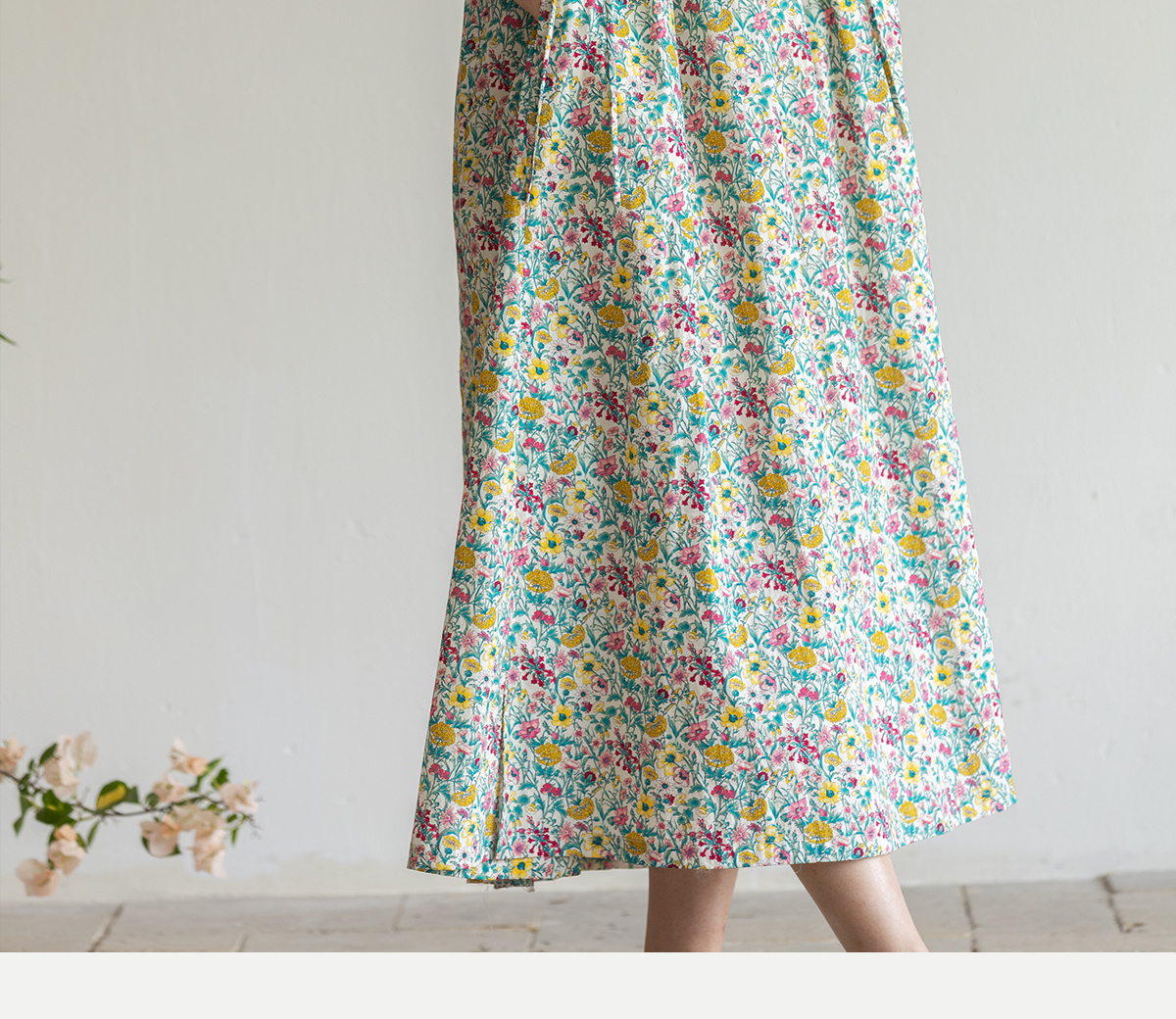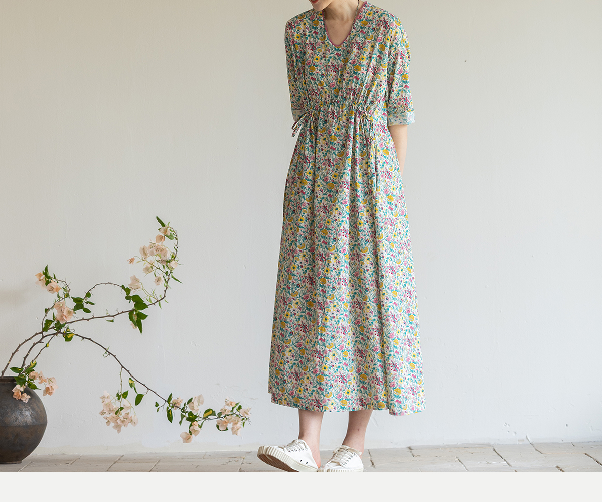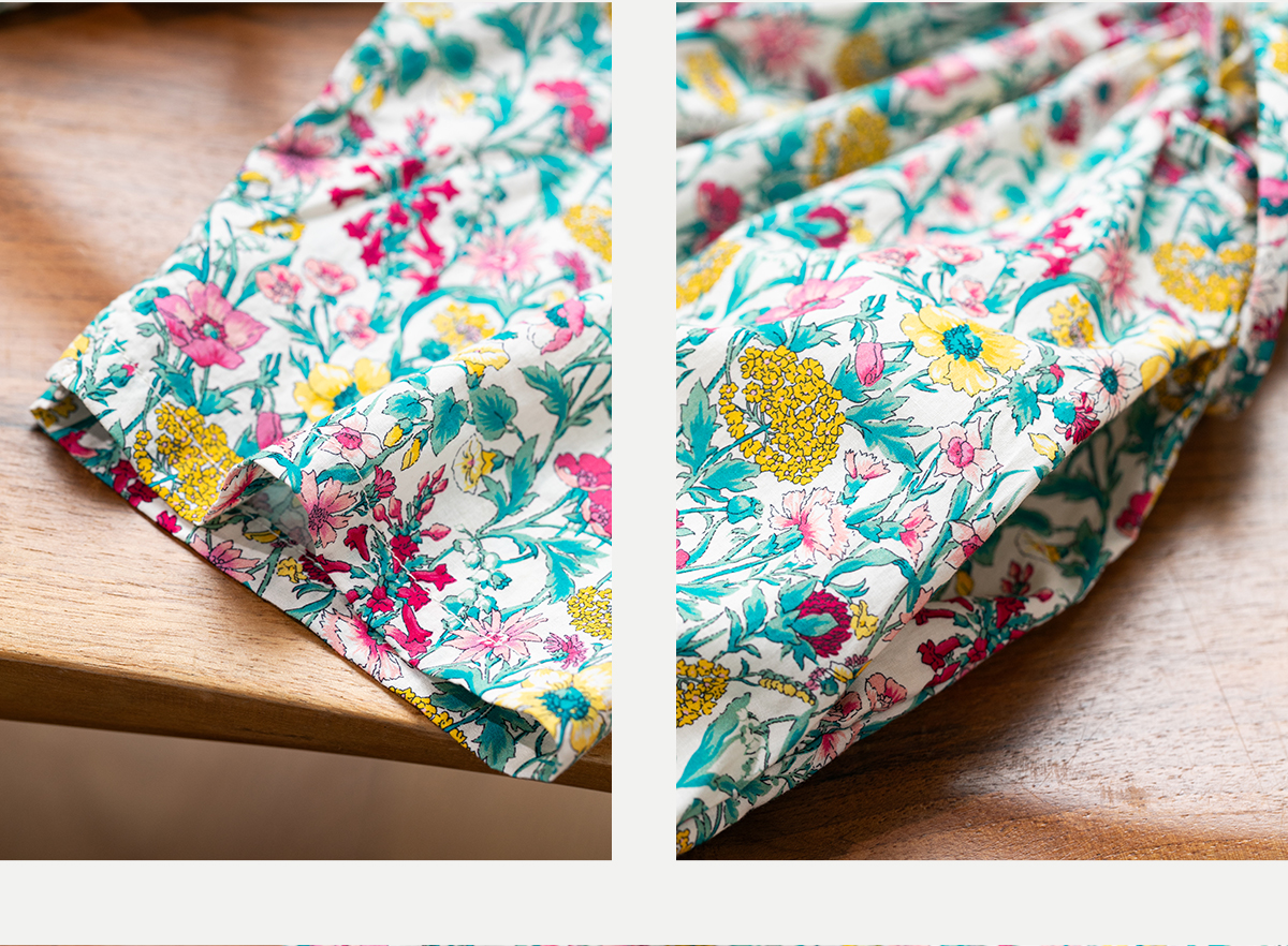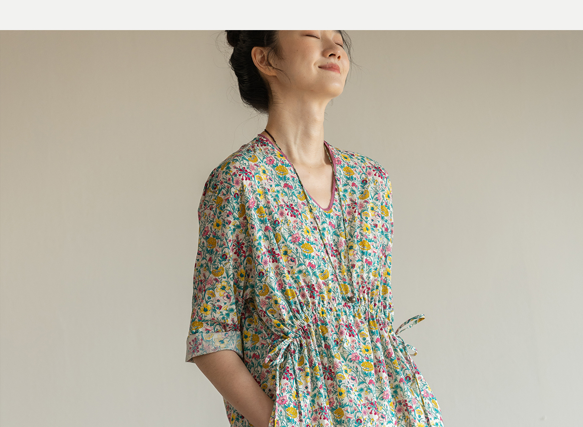 牧衣游原创 小碎花纯棉连衣裙夏日轻薄设计感文艺气质碎花裙 竹青
