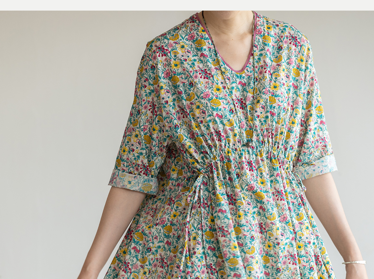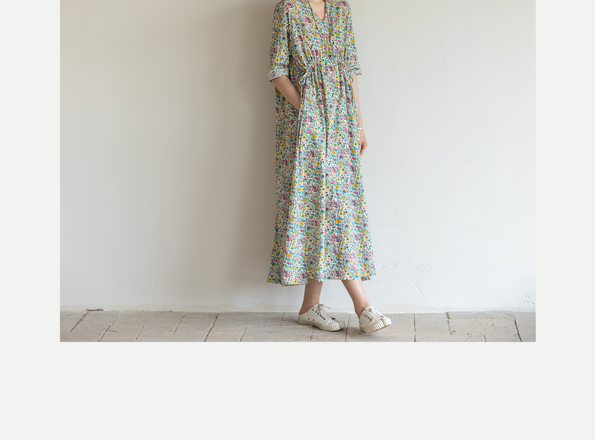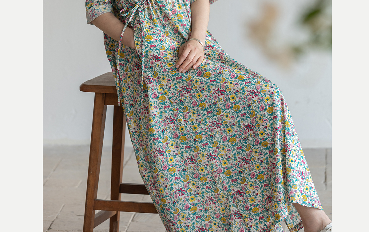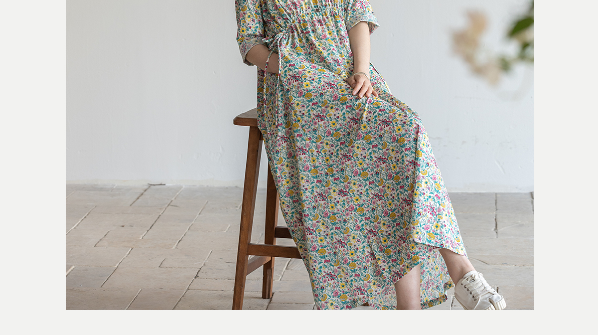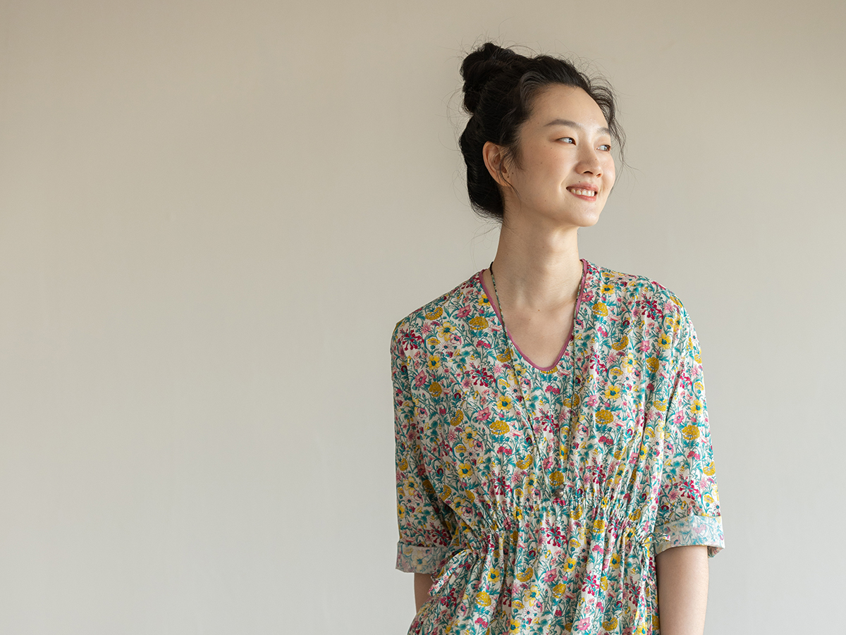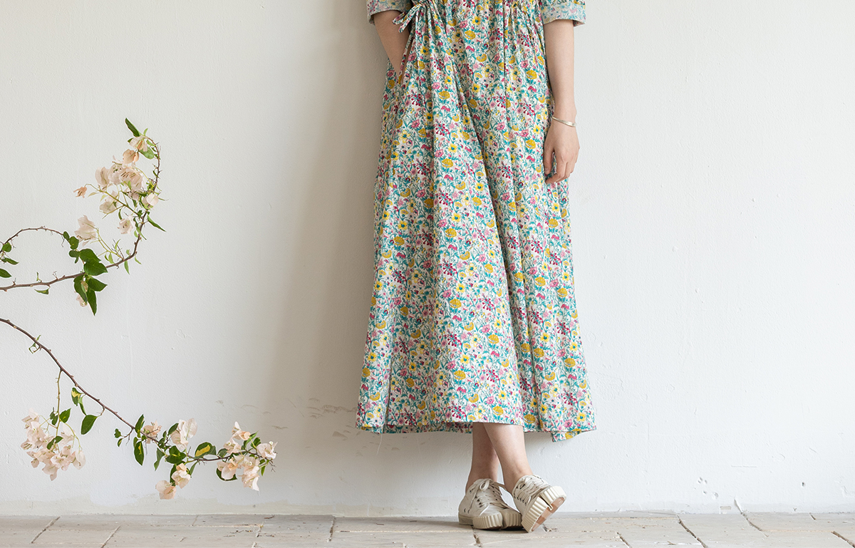 牧衣游原创 小碎花纯棉连衣裙夏日轻薄设计感文艺气质碎花裙 竹青