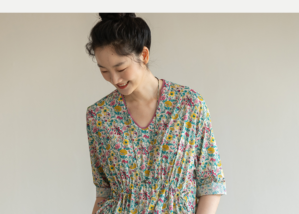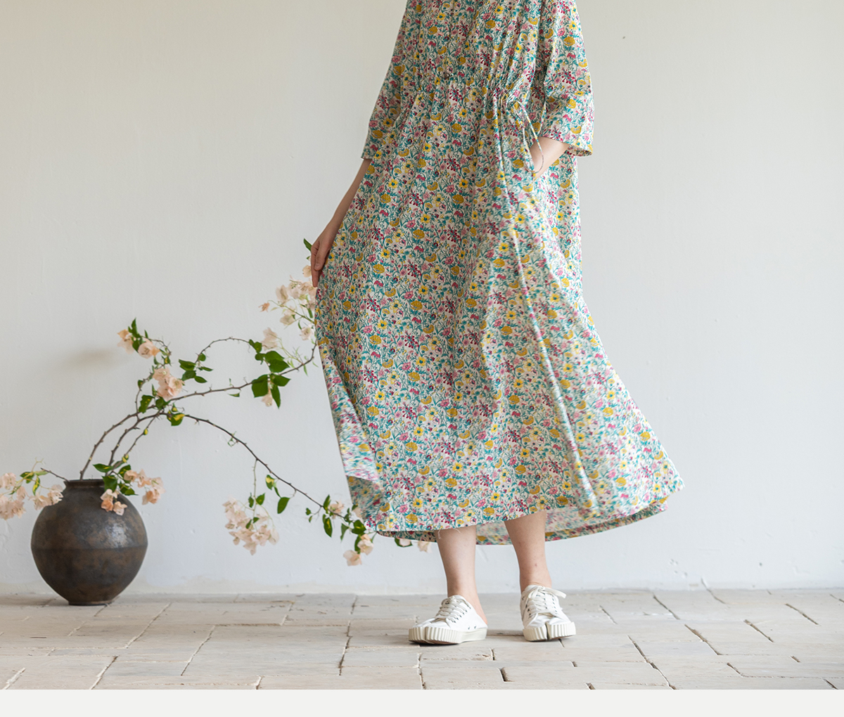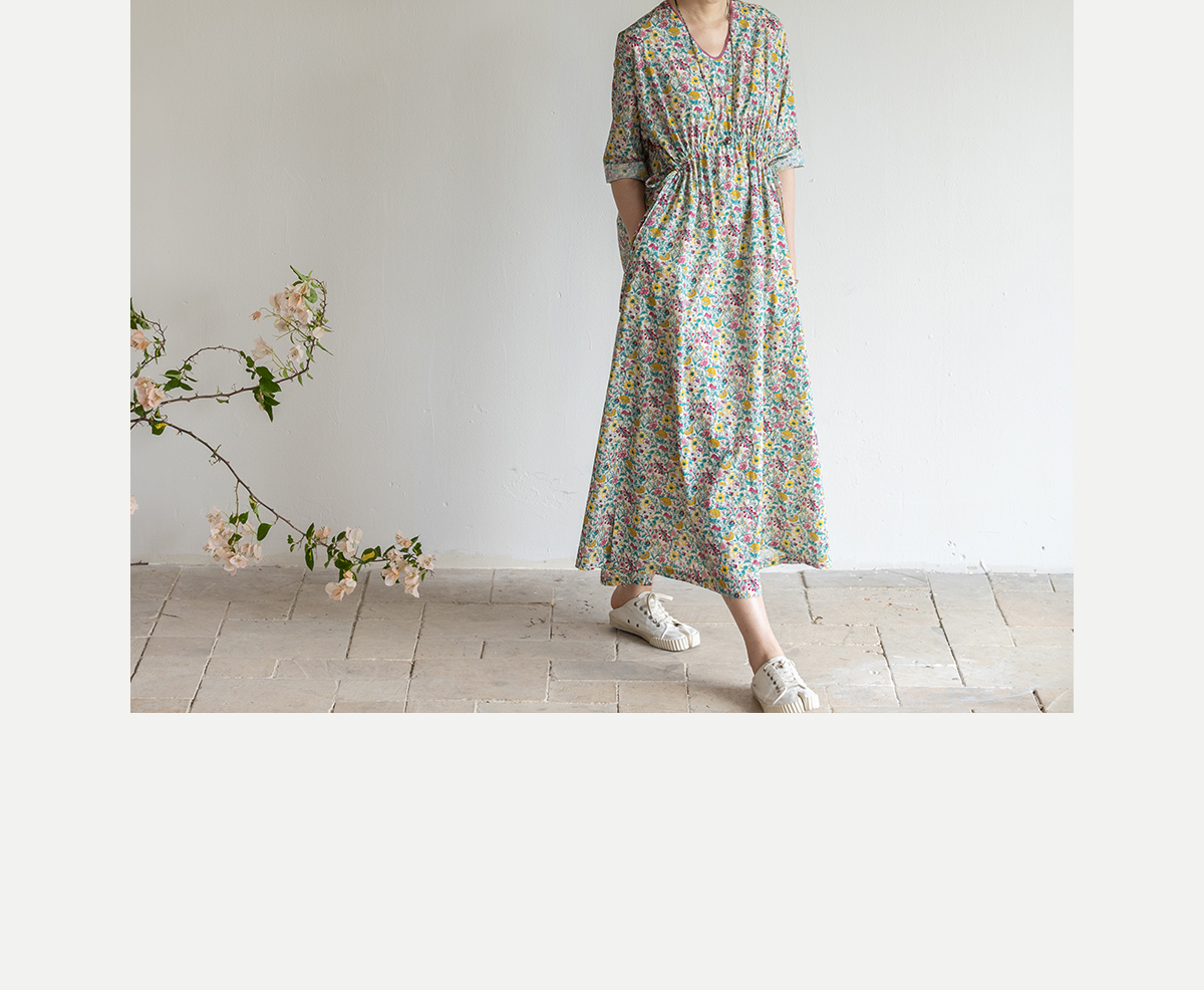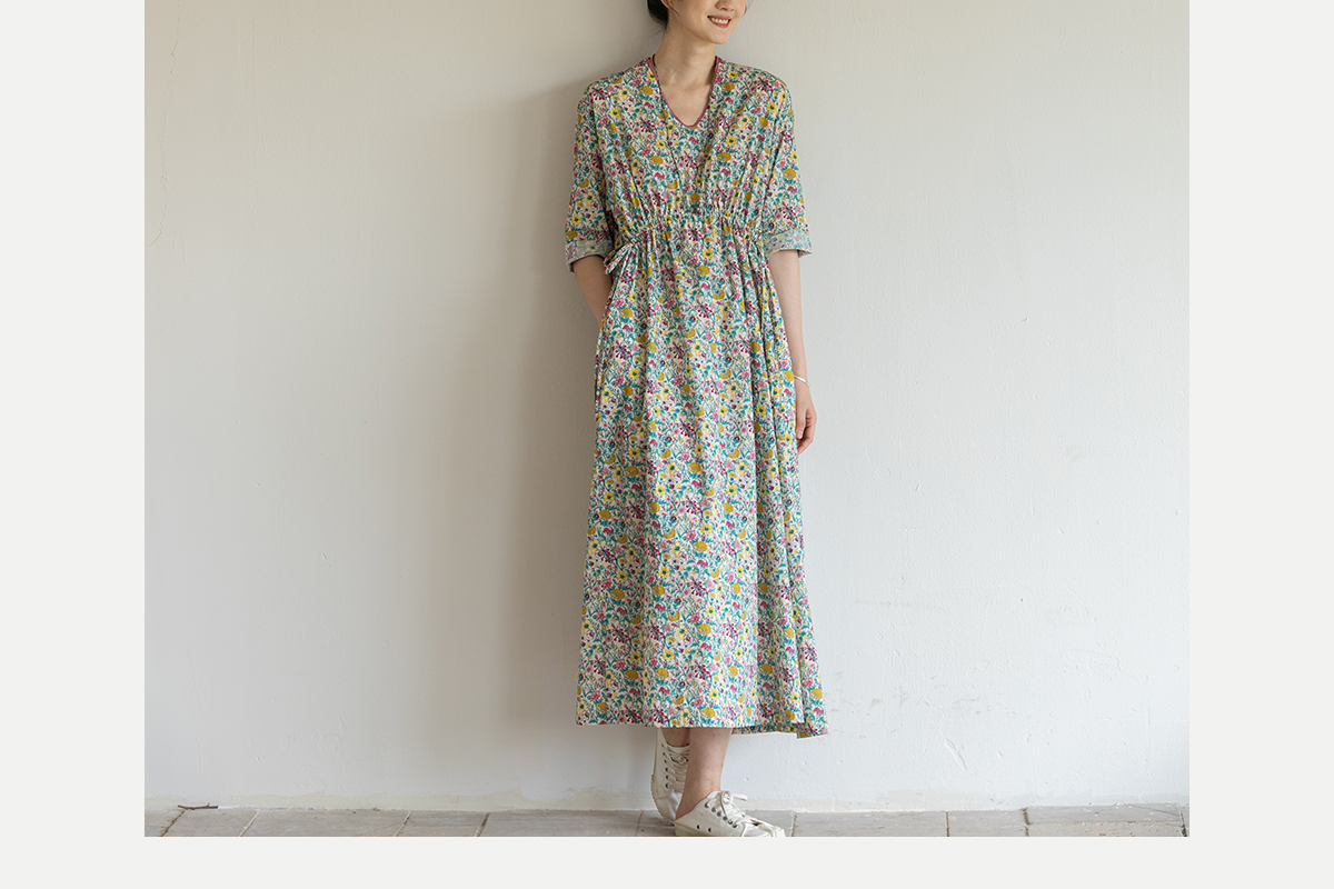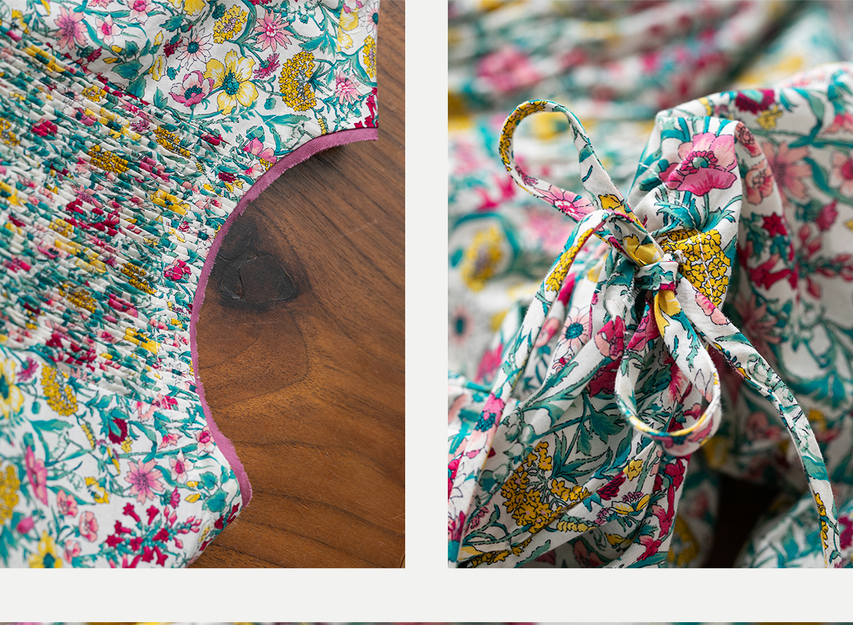牧衣游原创 小碎花纯棉连衣裙夏日轻薄设计感文艺气质碎花裙 竹青