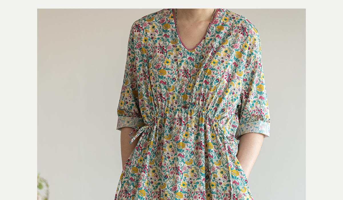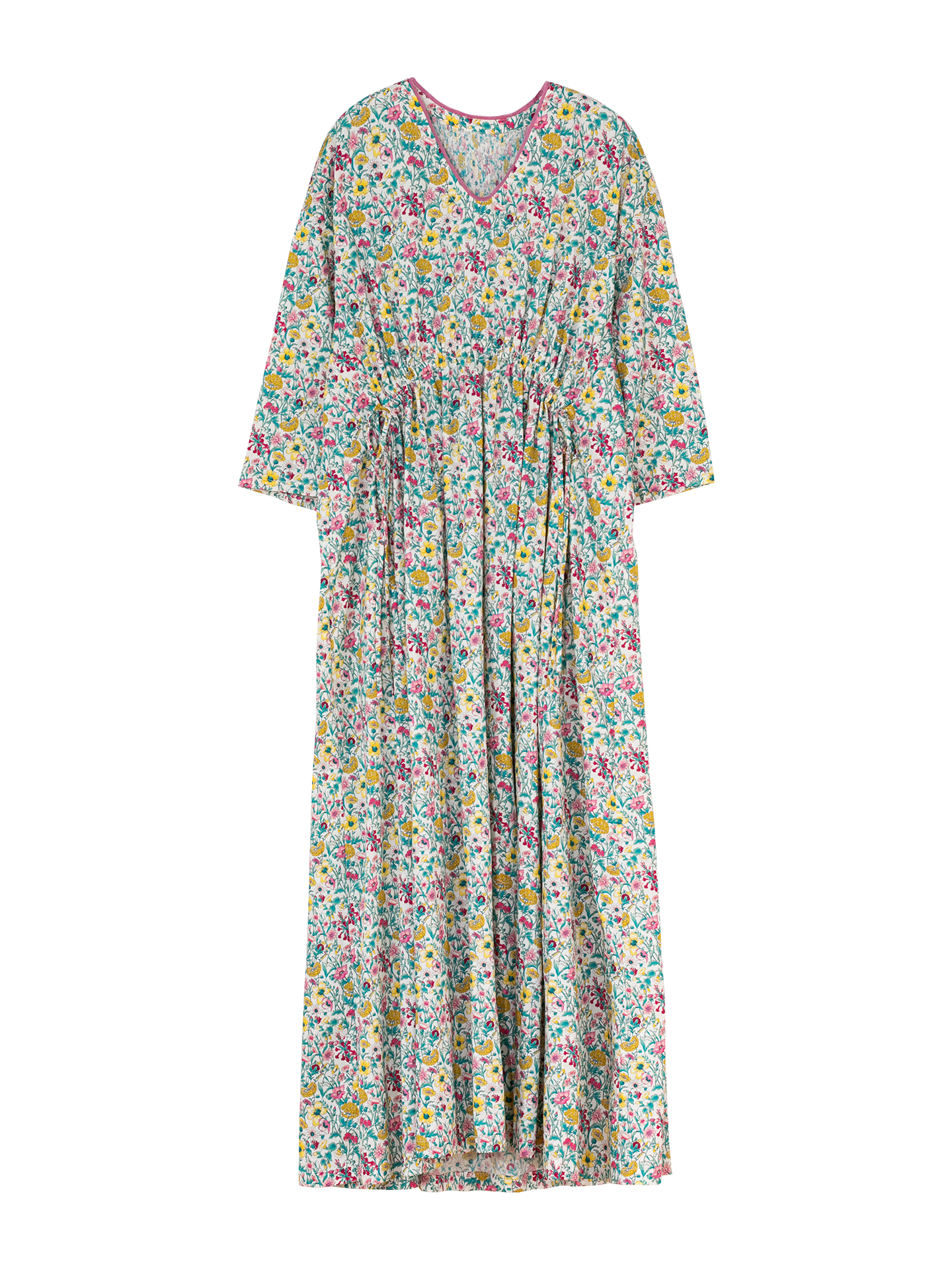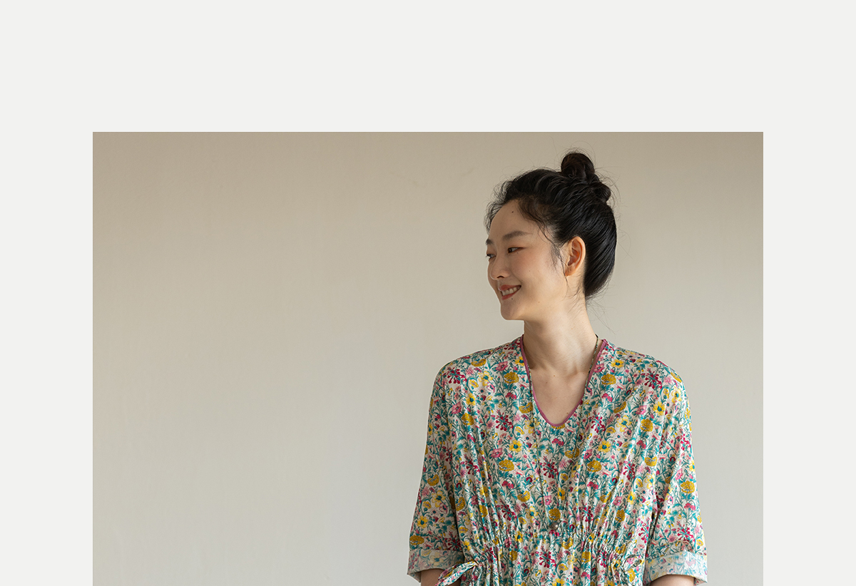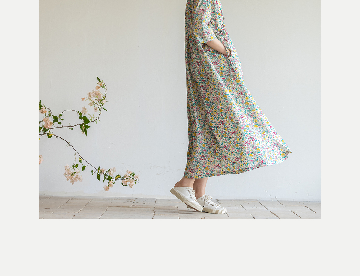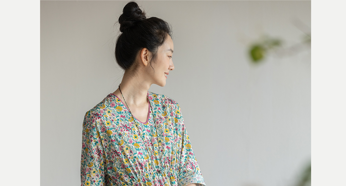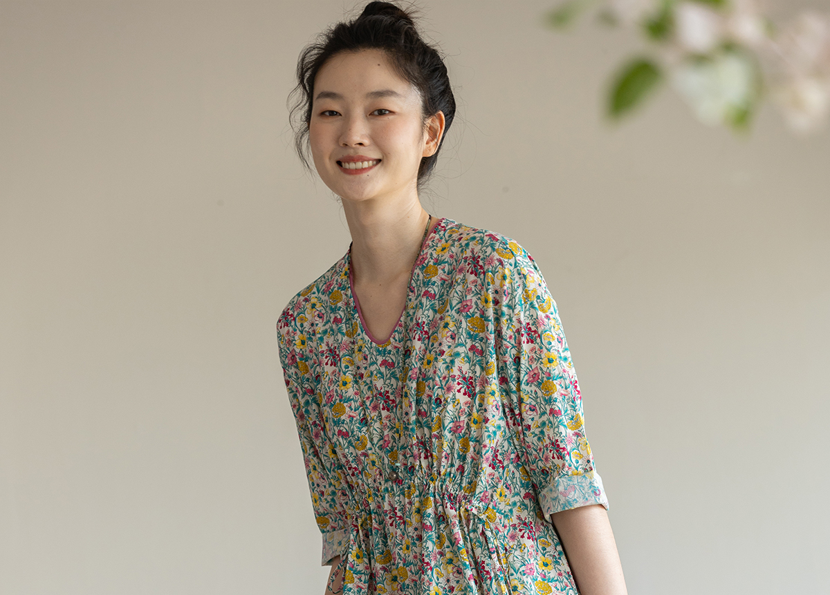 牧衣游原创 小碎花纯棉连衣裙夏日轻薄设计感文艺气质碎花裙 竹青