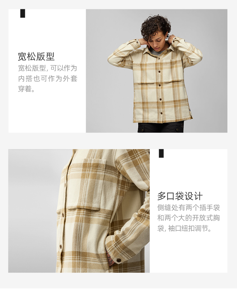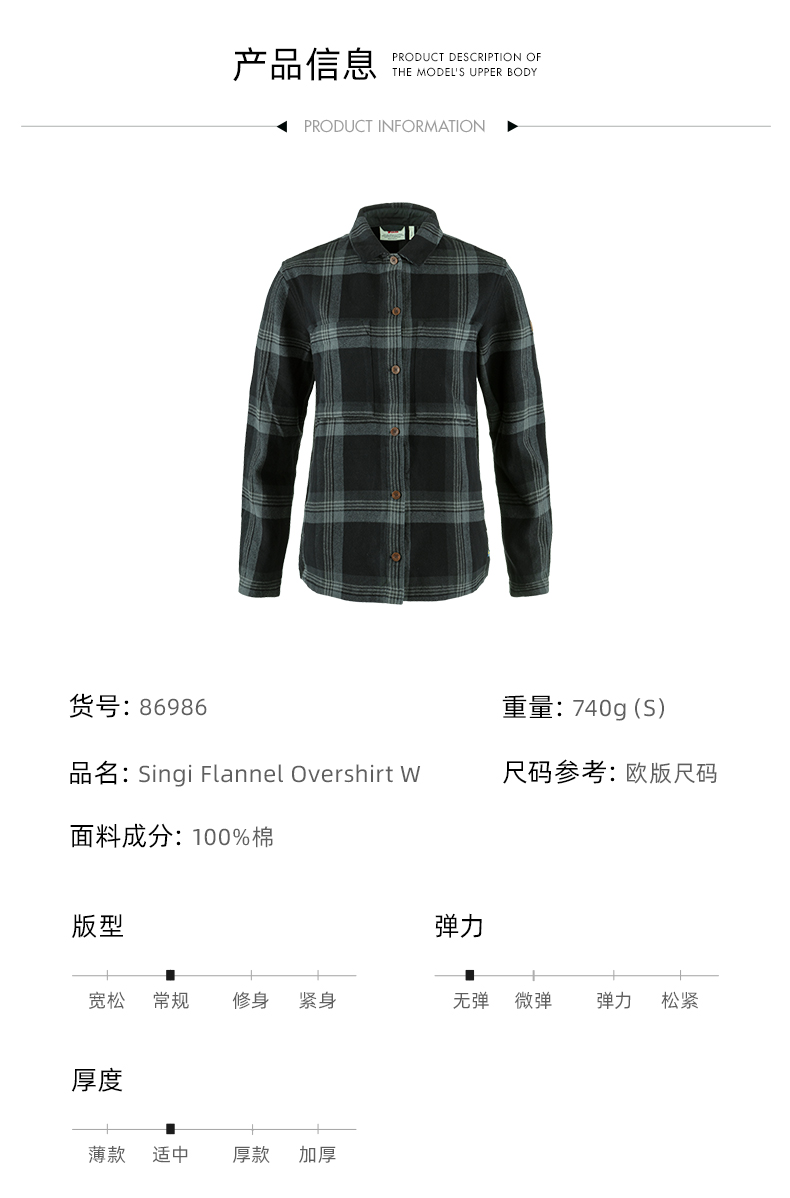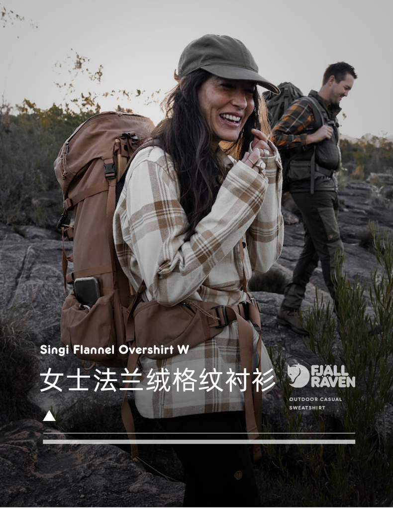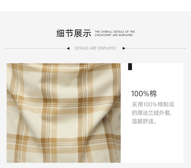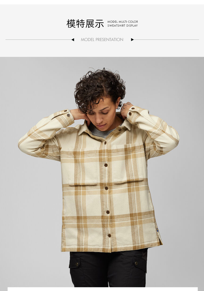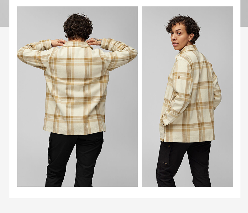 北极狐法兰绒格纹衬衫女士纯棉舒适宽松日常外套 86986