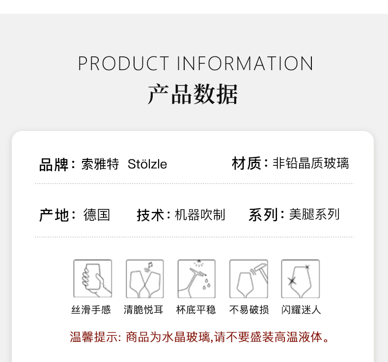索雅特Stolzle德国进口水晶红酒杯高脚杯葡萄酒杯高档酒具轻奢礼盒套装【不支持补差,非质量问题不退不换】S
