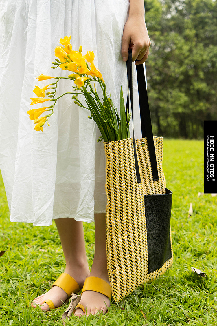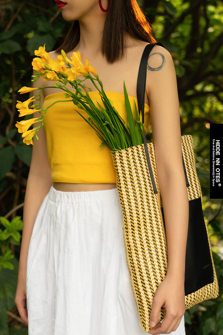 〖HIDDENNOTES〗原创单肩包 阳光元气鹅黄色编织单肩tote托特包