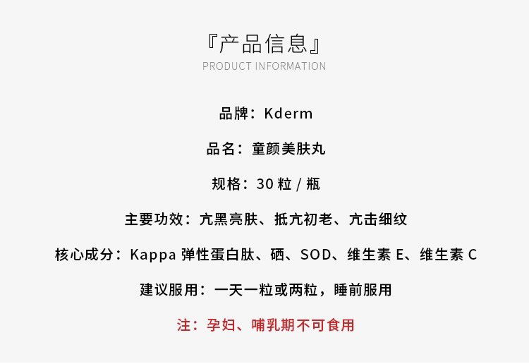 【品名】法国kderm童颜美肤丸30粒/瓶