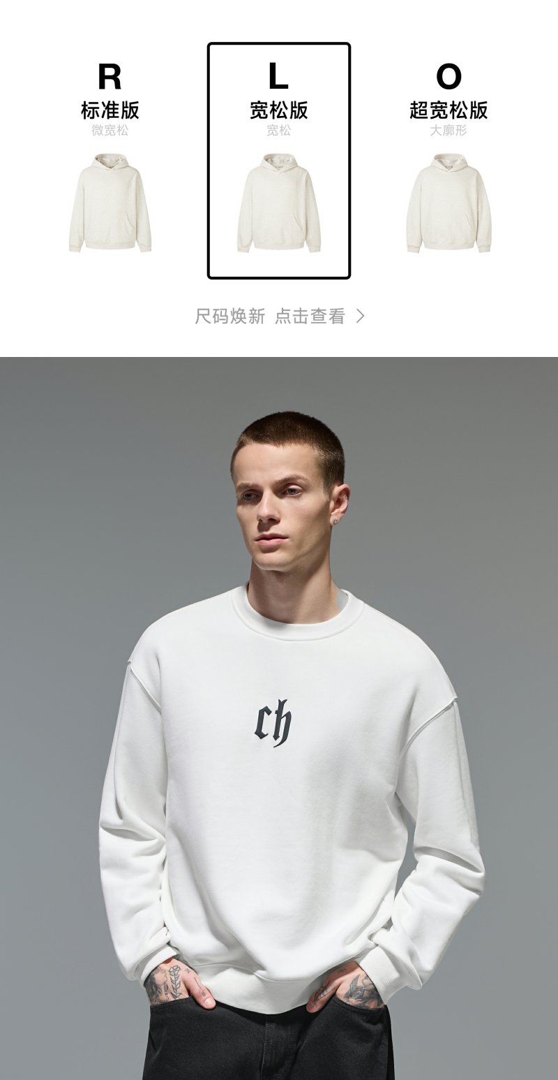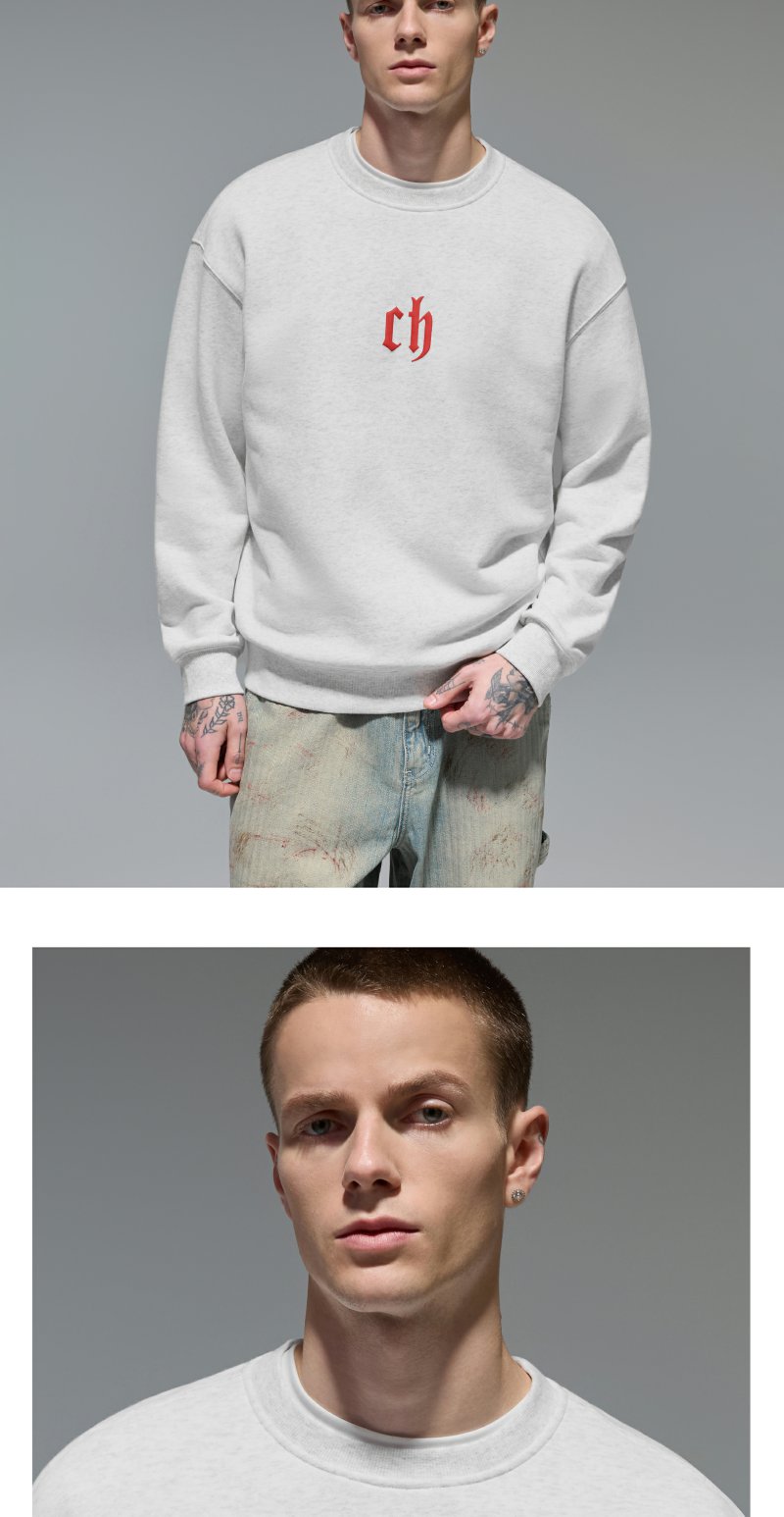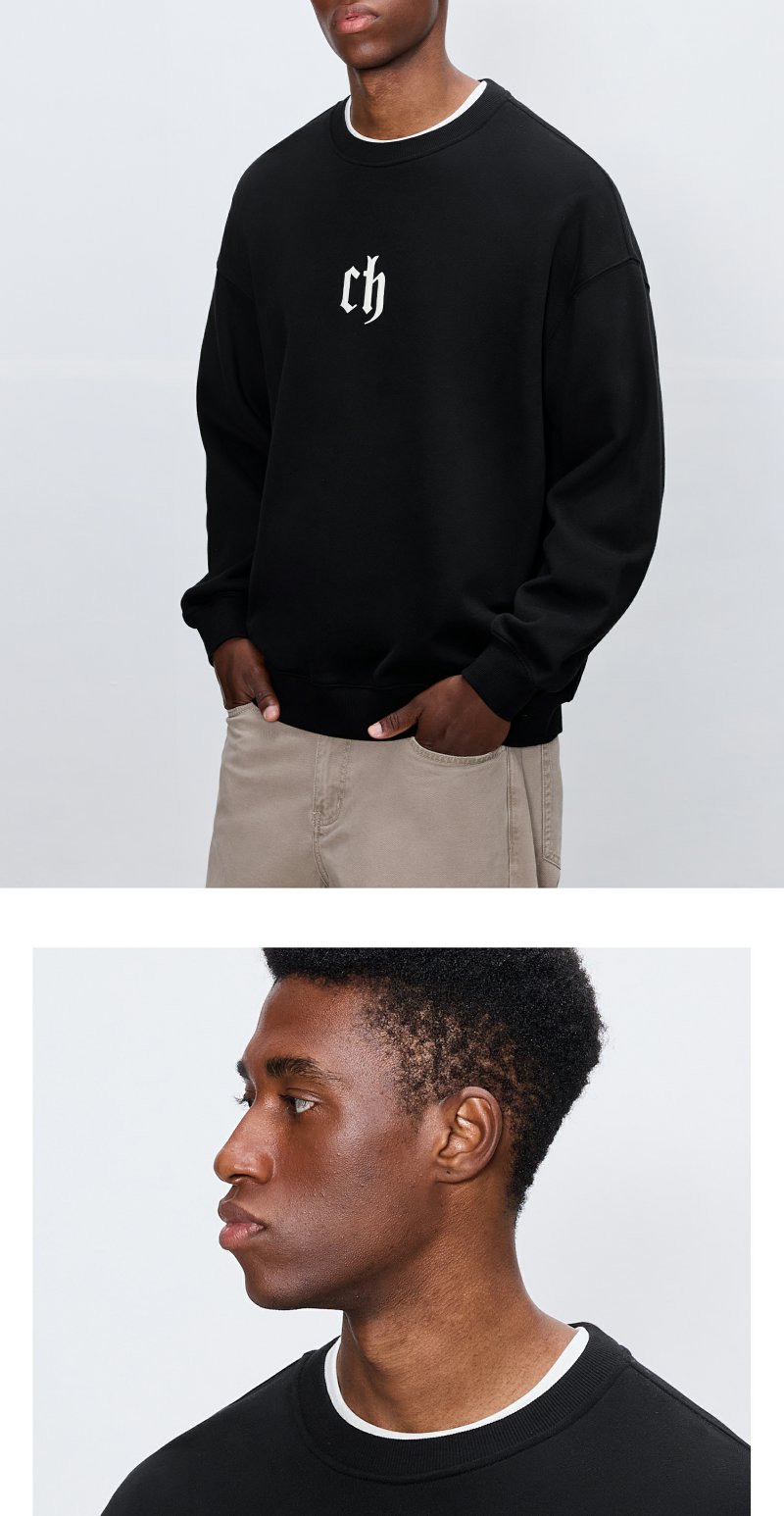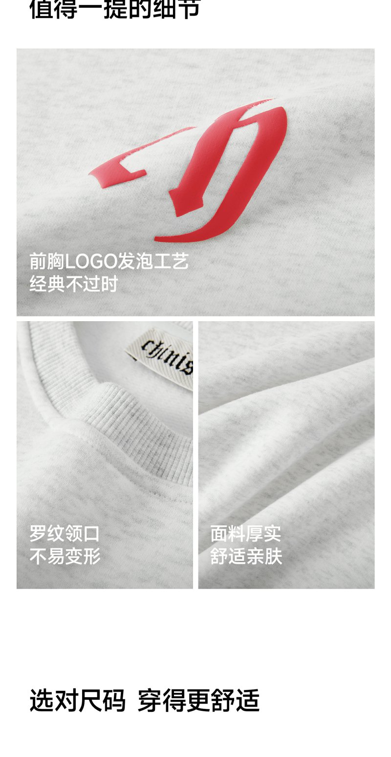 CHINISM赤尘 花灰色发泡印花圆领卫衣男秋季经典宽松休闲套头上衣