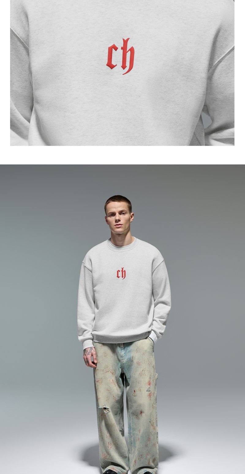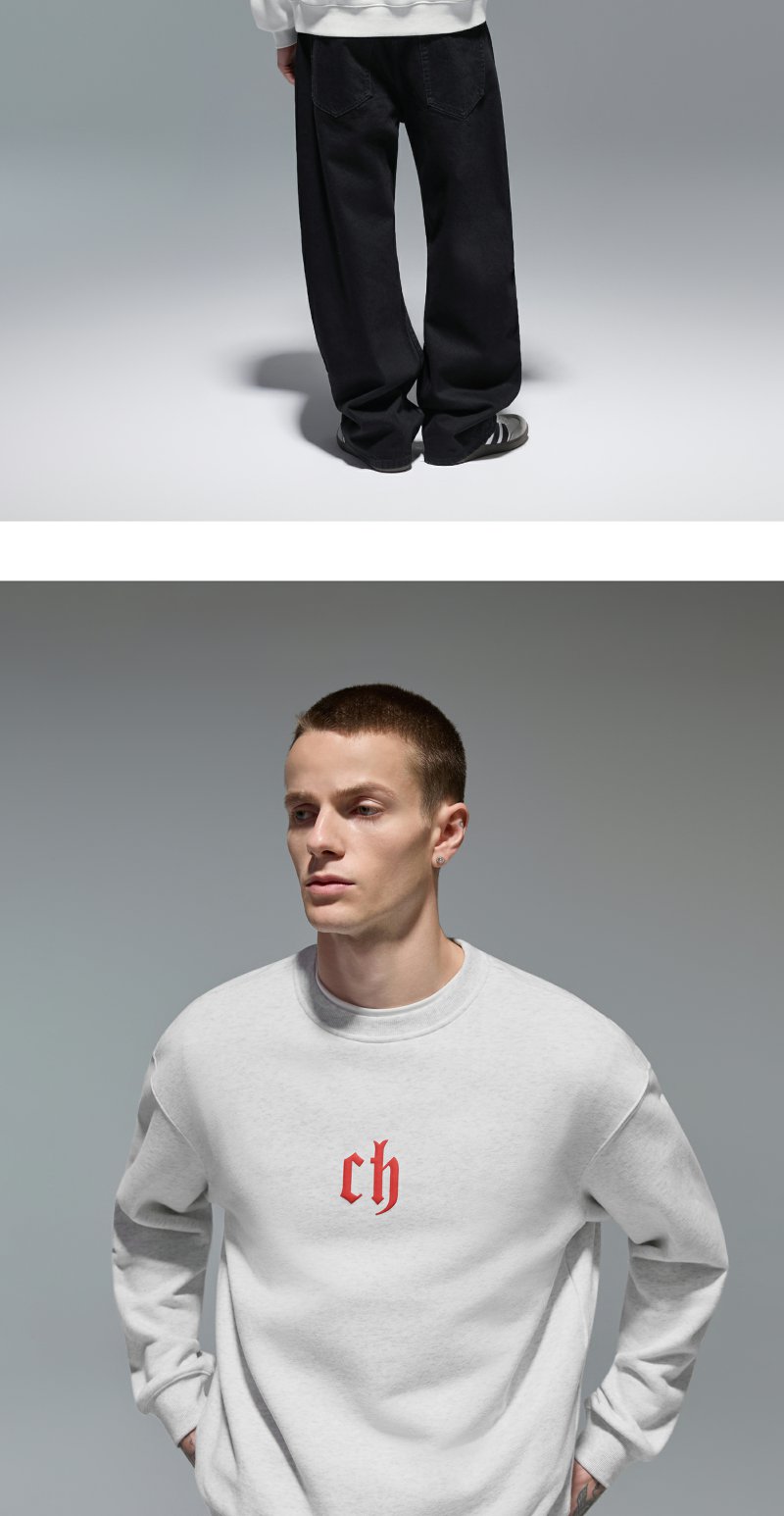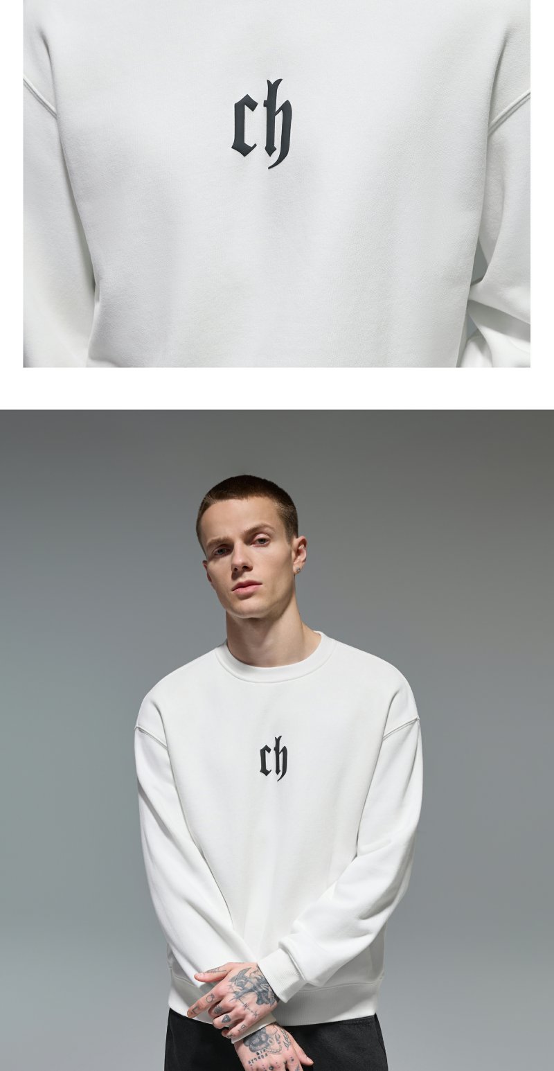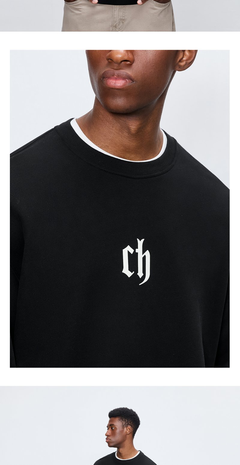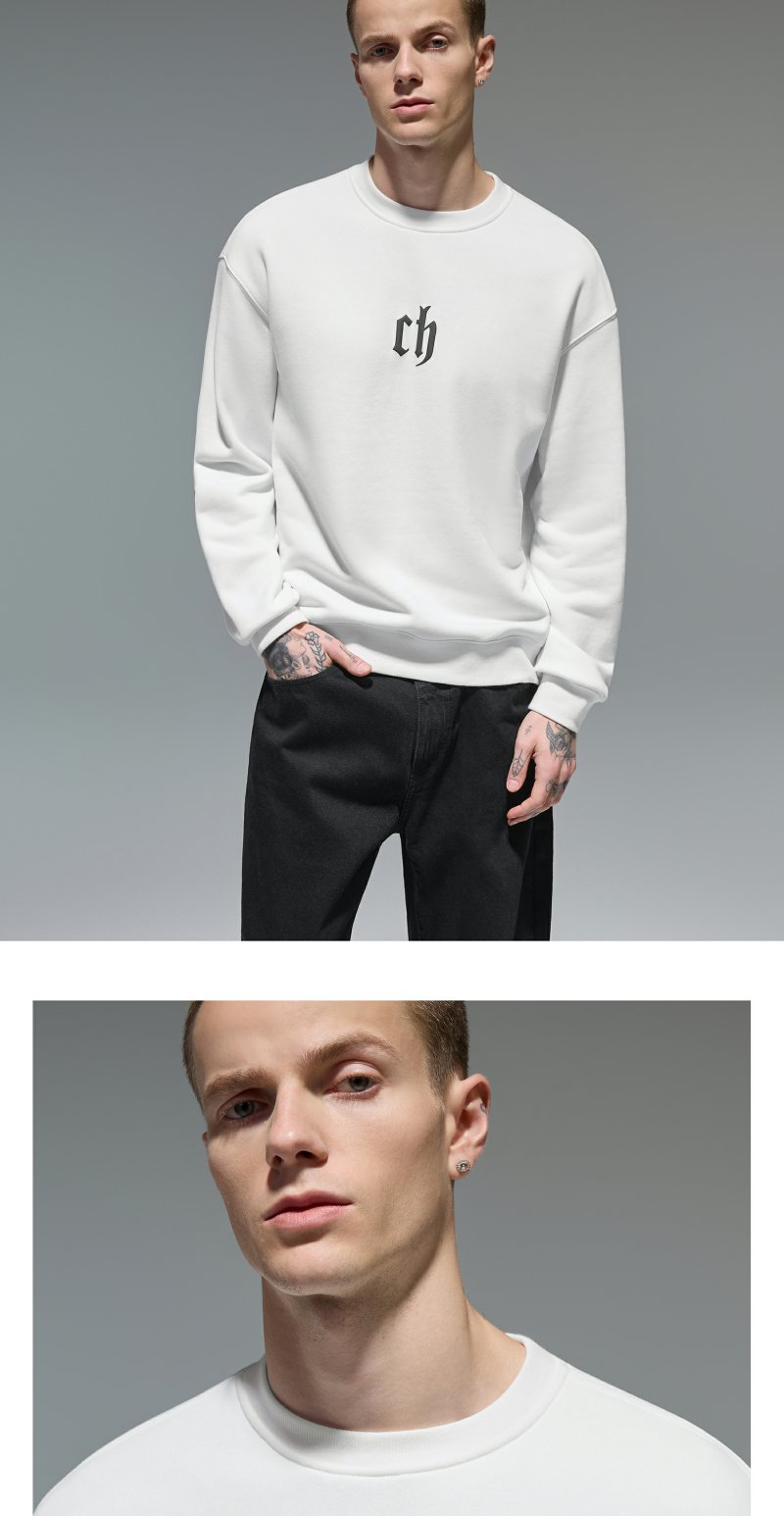 CHINISM赤尘 花灰色发泡印花圆领卫衣男秋季经典宽松休闲套头上衣