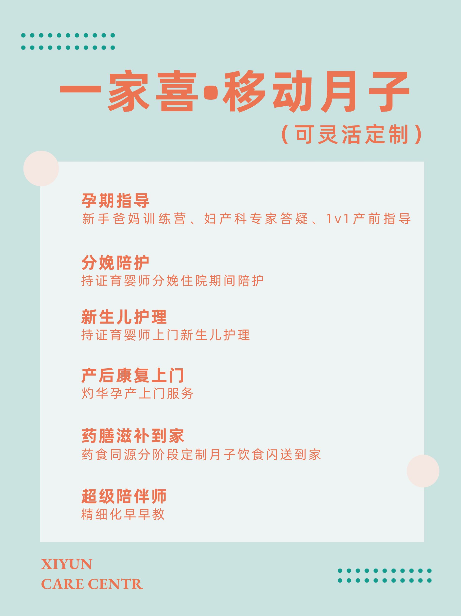喜孕“一家喜”移动月子服务