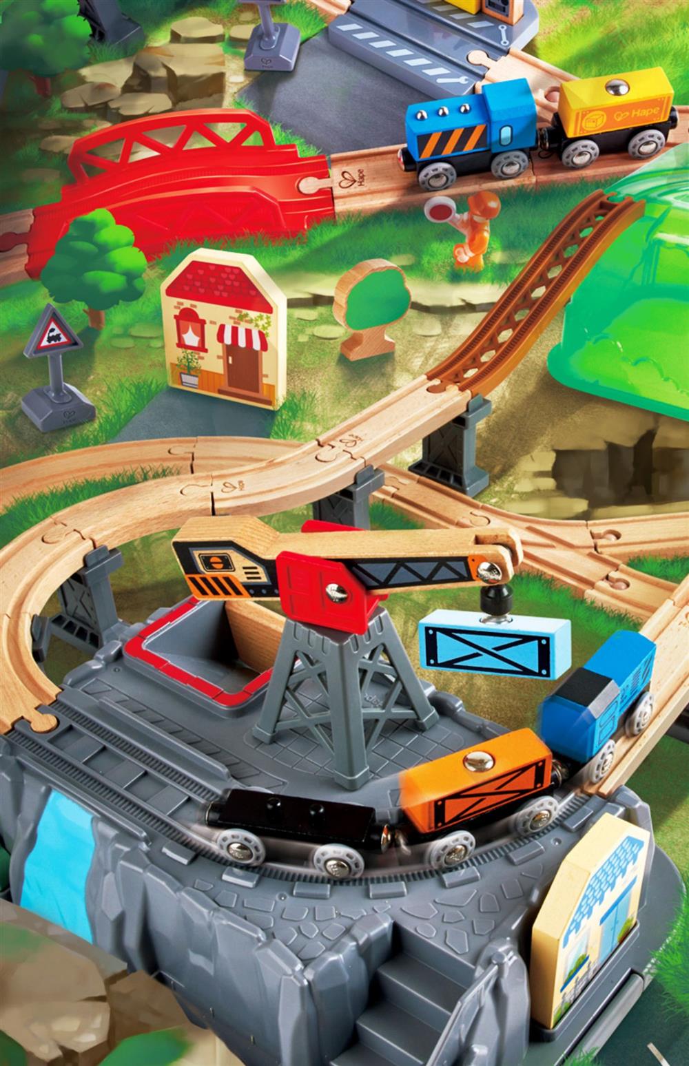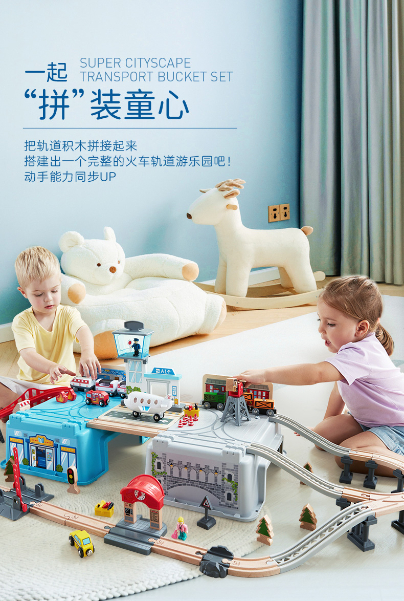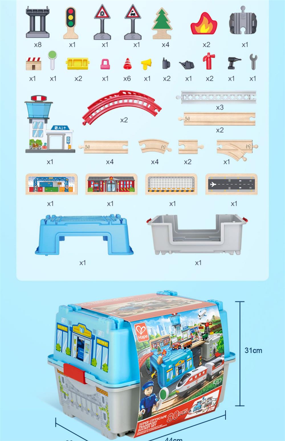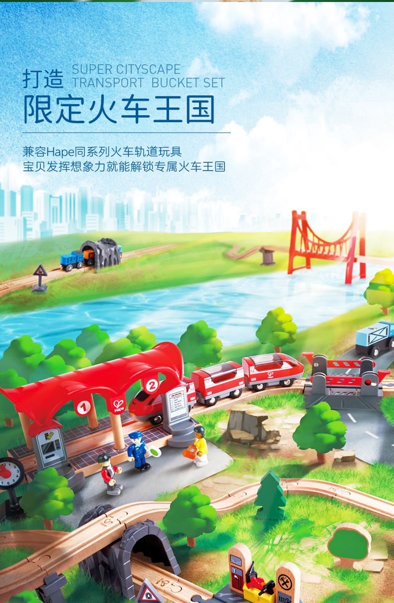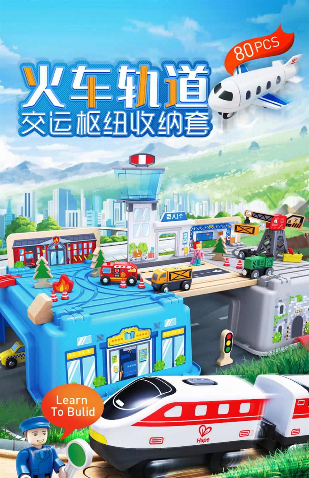 Hape木制火车轨道交通枢纽收纳套宝宝儿童男女孩益智玩具飞机3岁+