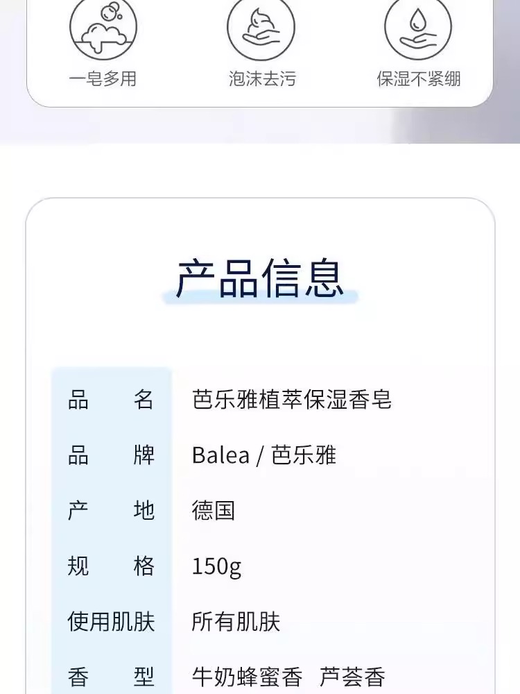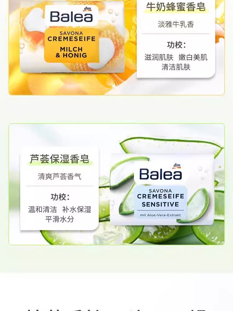 【中欧班列】【三块】德国进口DM芭乐雅Balea蜂蜜牛奶芦荟洗手沐浴香皂温和不紧绷150g/块