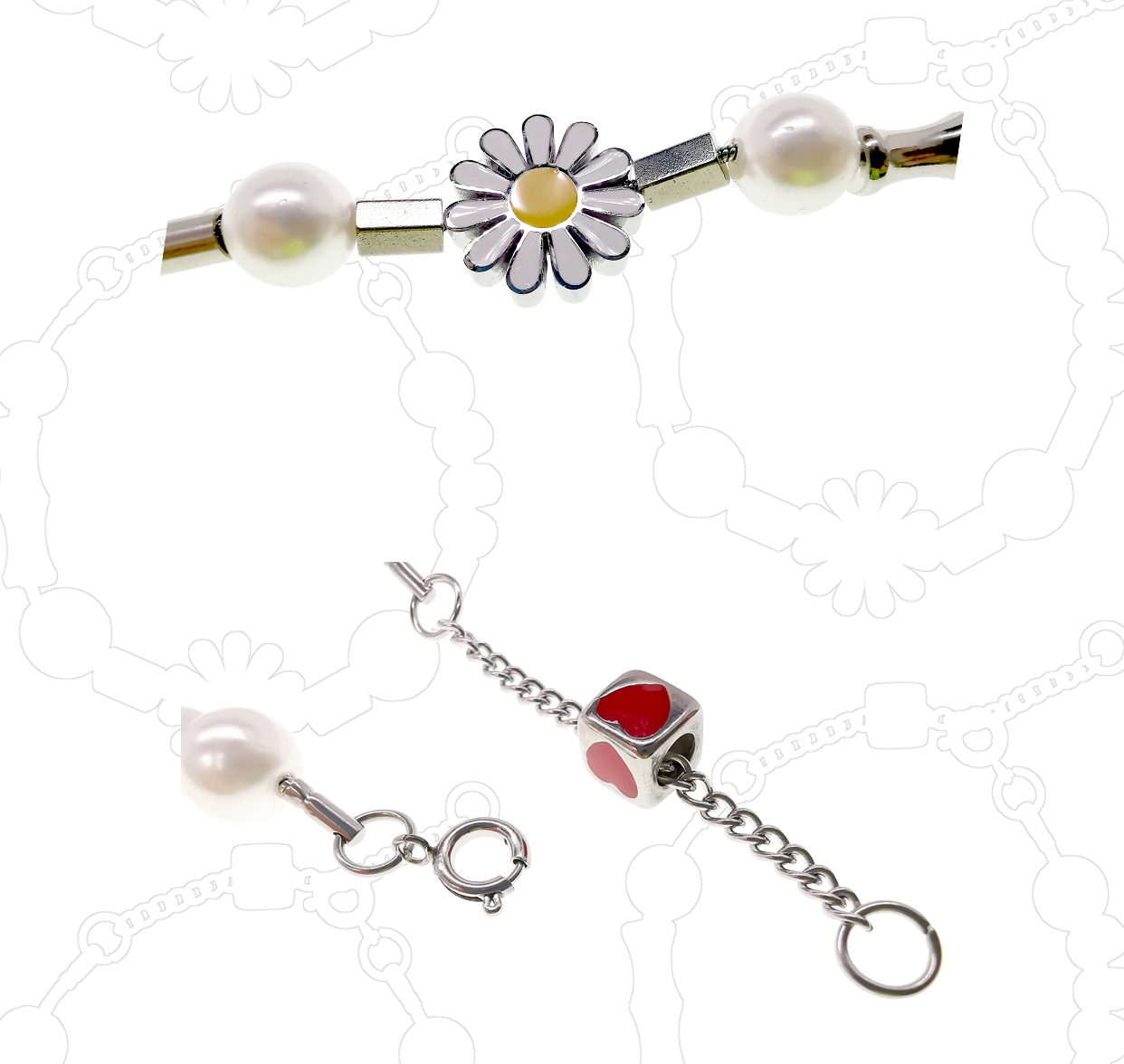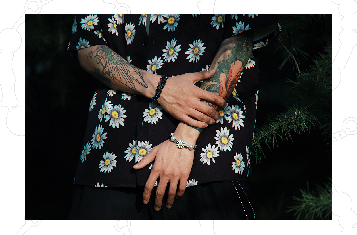MADE BY DIZON 雏菊手链 GD潮流钛钢情侣 菊花 珍珠 元素 小众款
