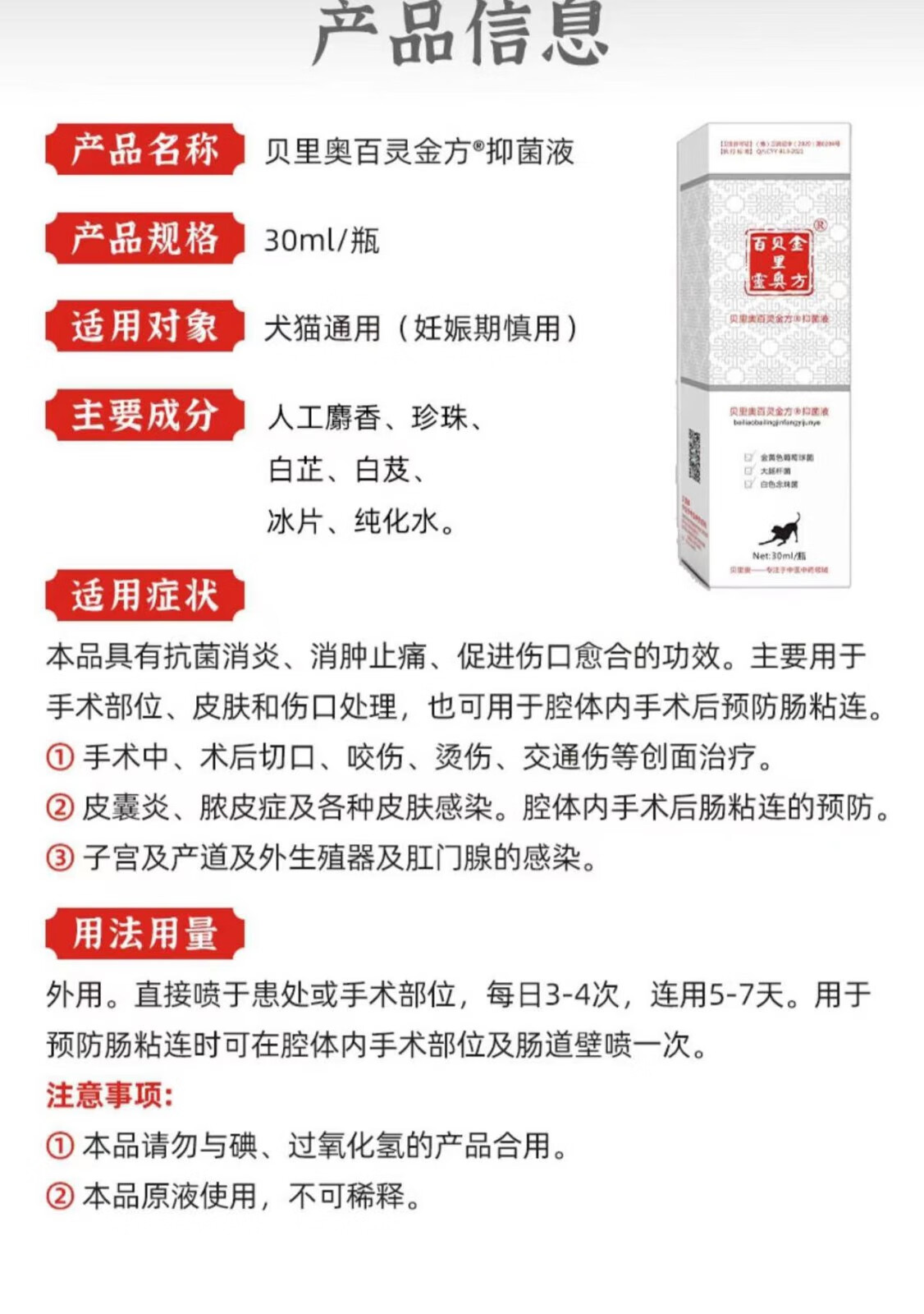 百灵金方宠物抑菌伤口喷剂猫咪术后消肿感染愈合狗皮肤病30ml