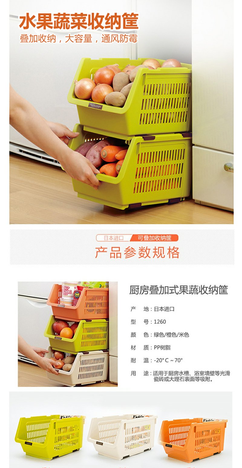 日本进口inomata可叠小号果蔬篮绿/果蔬篮橙