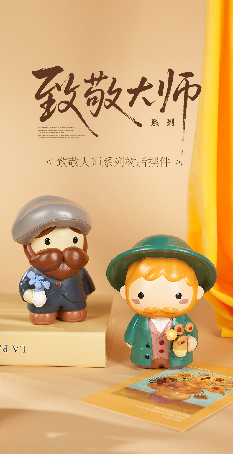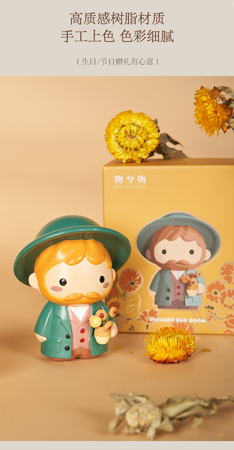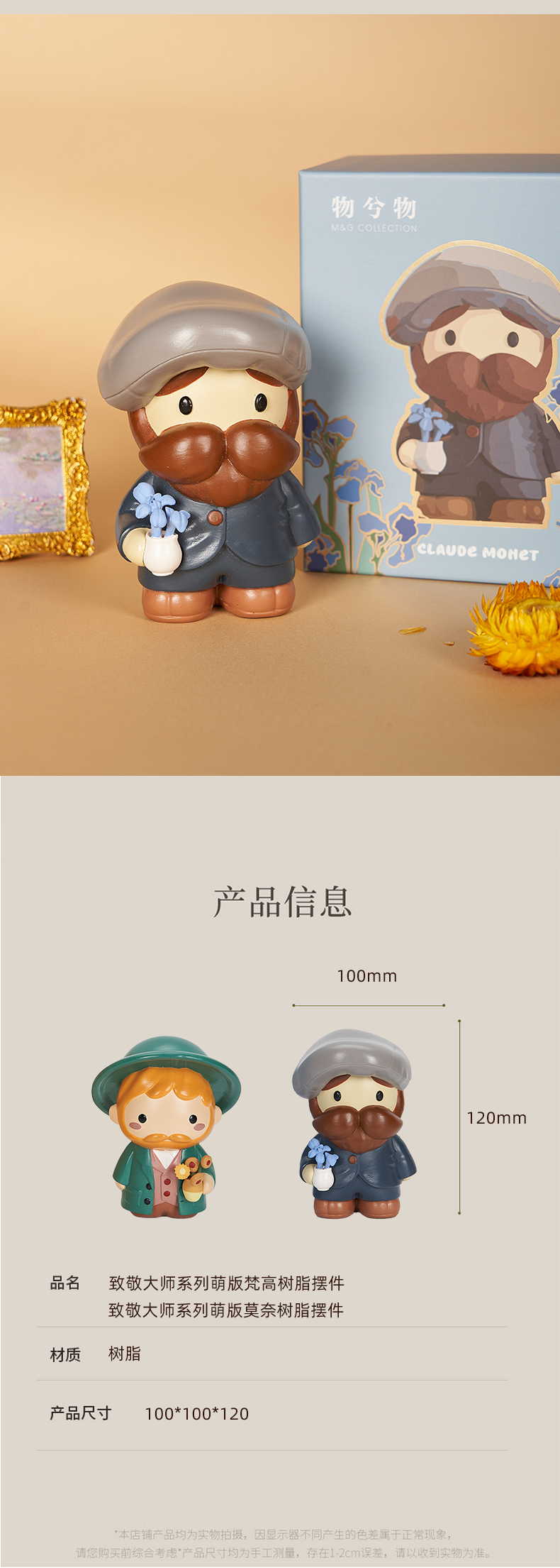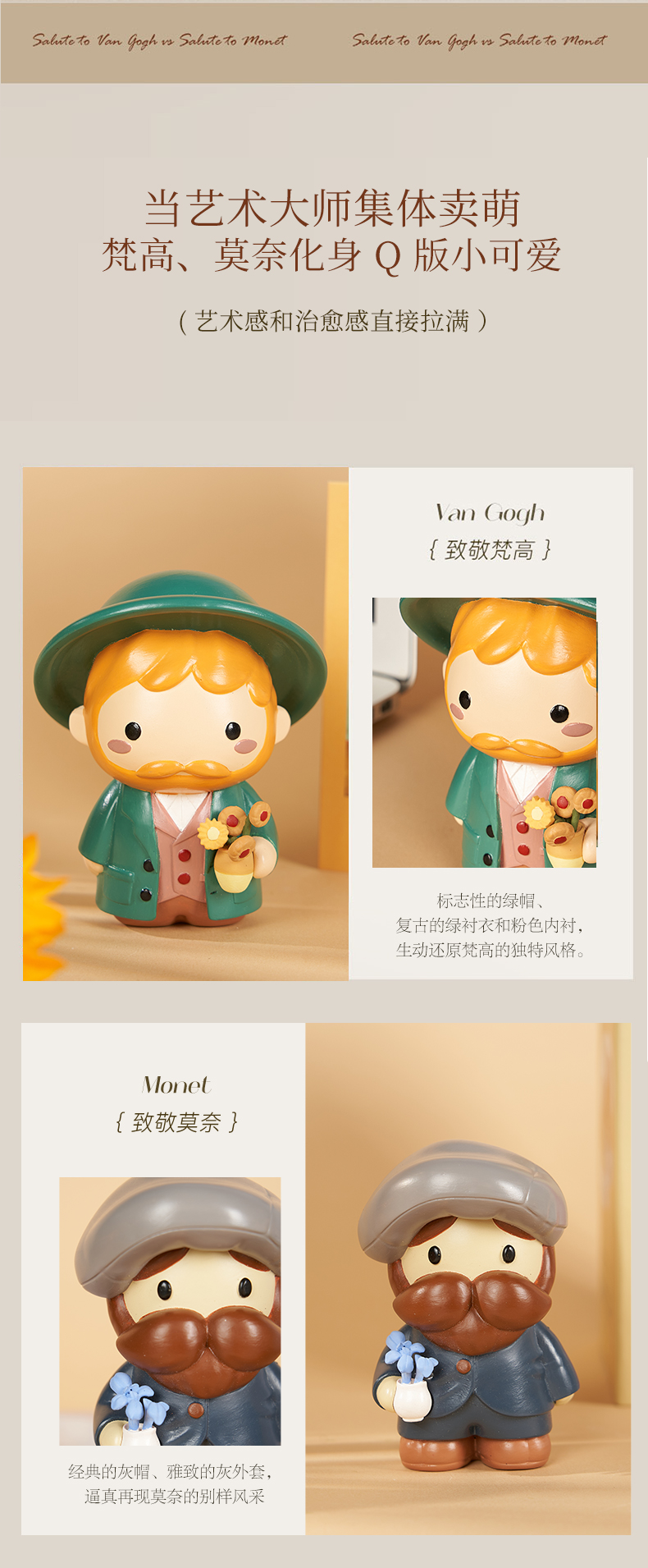 物兮物 致敬大师系列 萌版梵高 莫奈 树脂摆件
