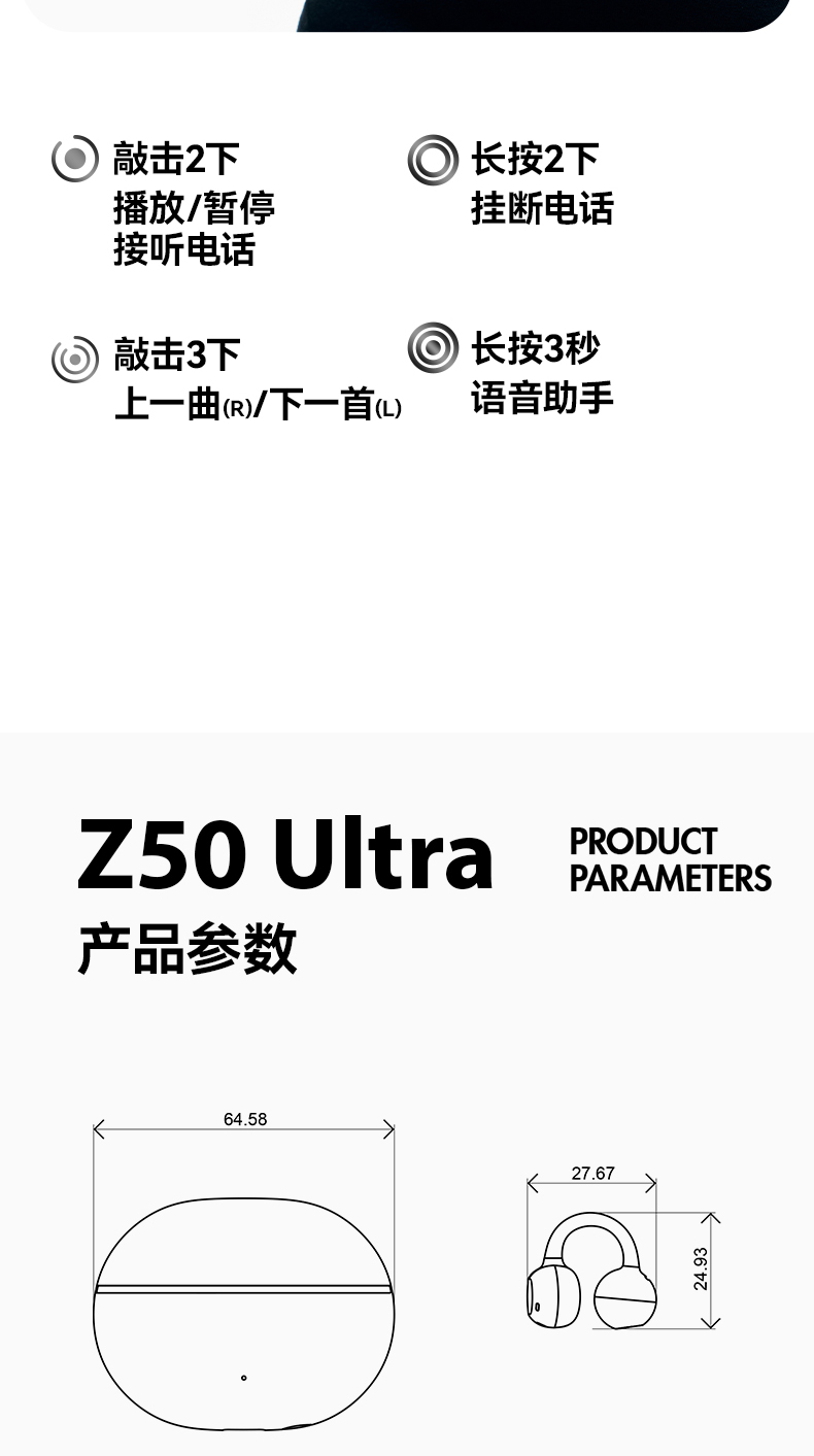 SANAG塞那 Z50 Ultra 耳夹式蓝牙耳机 开放式运动无线音乐耳机 不入耳舒适佩戴