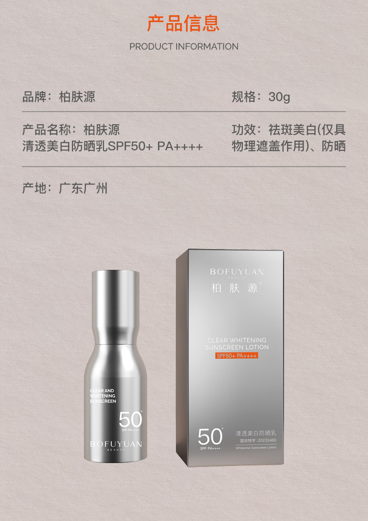 【防晒炸弹小银瓶】柏肤源清透美白防晒乳SPF50+ PA++++(小银瓶)