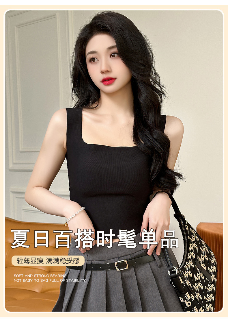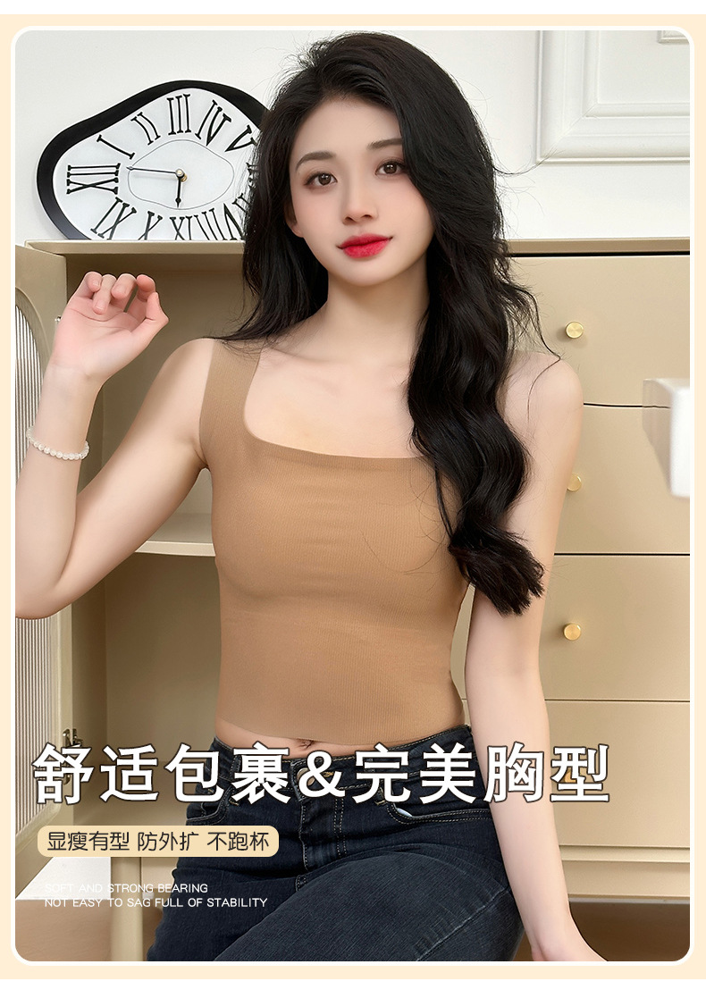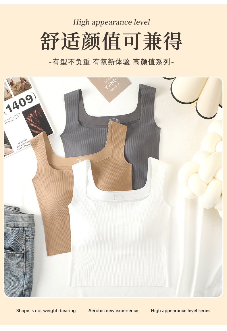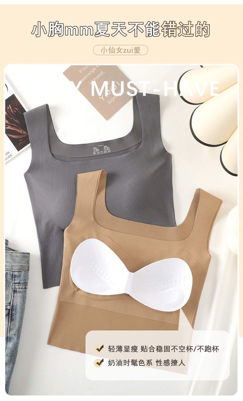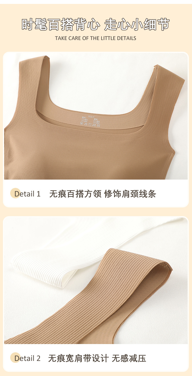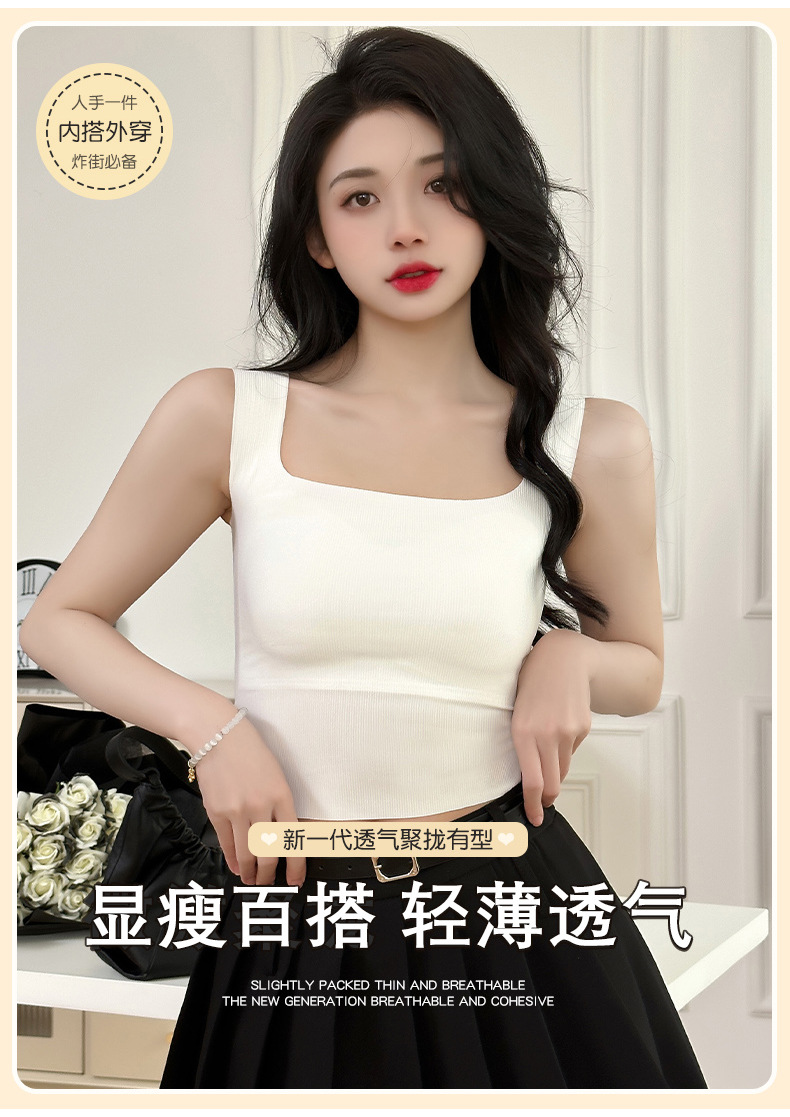 超值两件装【显瘦 显身材】新款无痕方领冰丝螺纹女士背心,舒适亲肤,轻薄透气,耐磨抗皱,高弹力,夏季纯棉美背小背心女,内搭外穿可拆卸胸垫无钢圈内衣