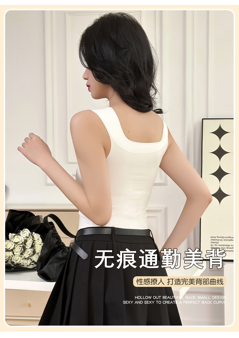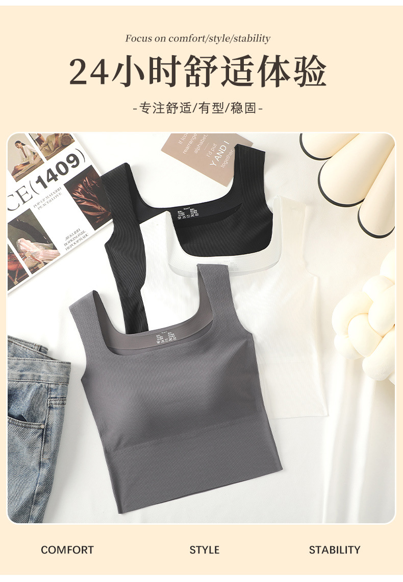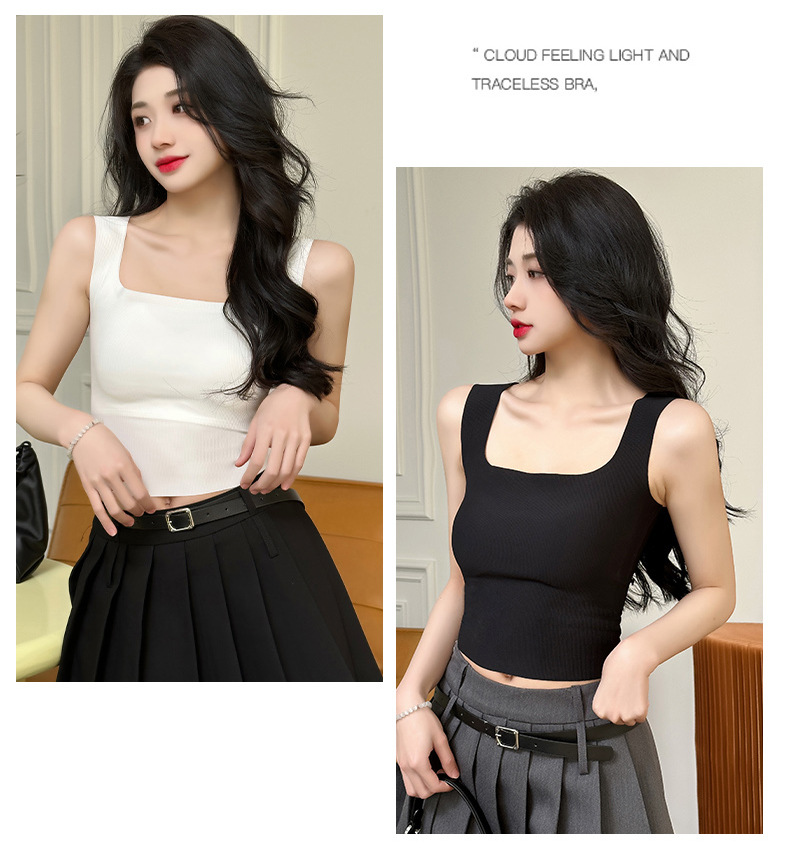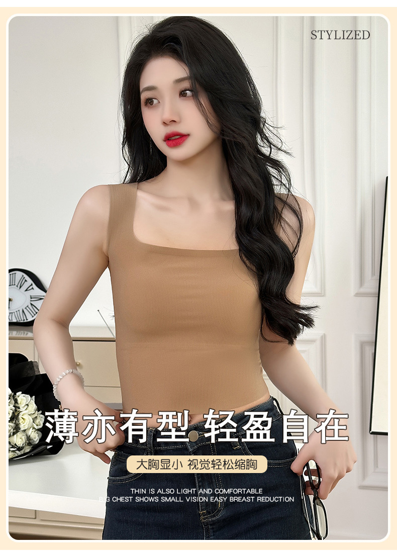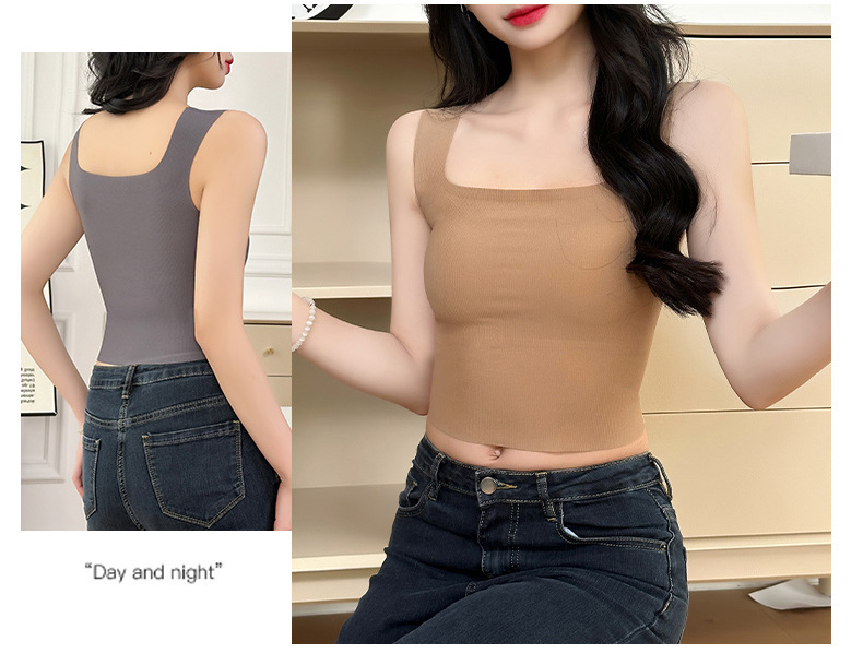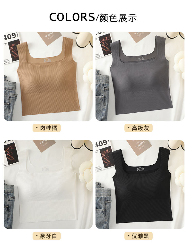 超值两件装【显瘦 显身材】新款无痕方领冰丝螺纹女士背心,舒适亲肤,轻薄透气,耐磨抗皱,高弹力,夏季纯棉美背小背心女,内搭外穿可拆卸胸垫无钢圈内衣