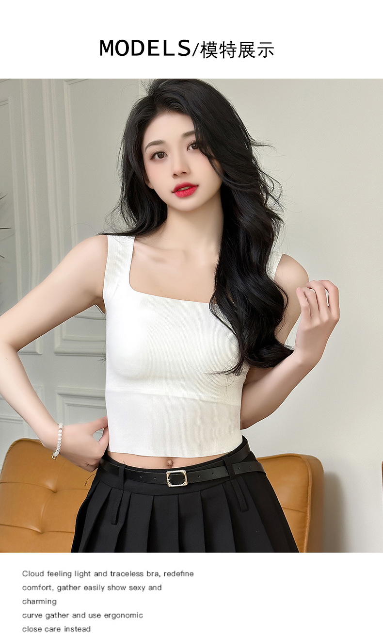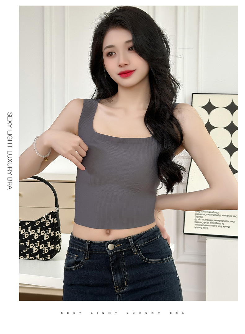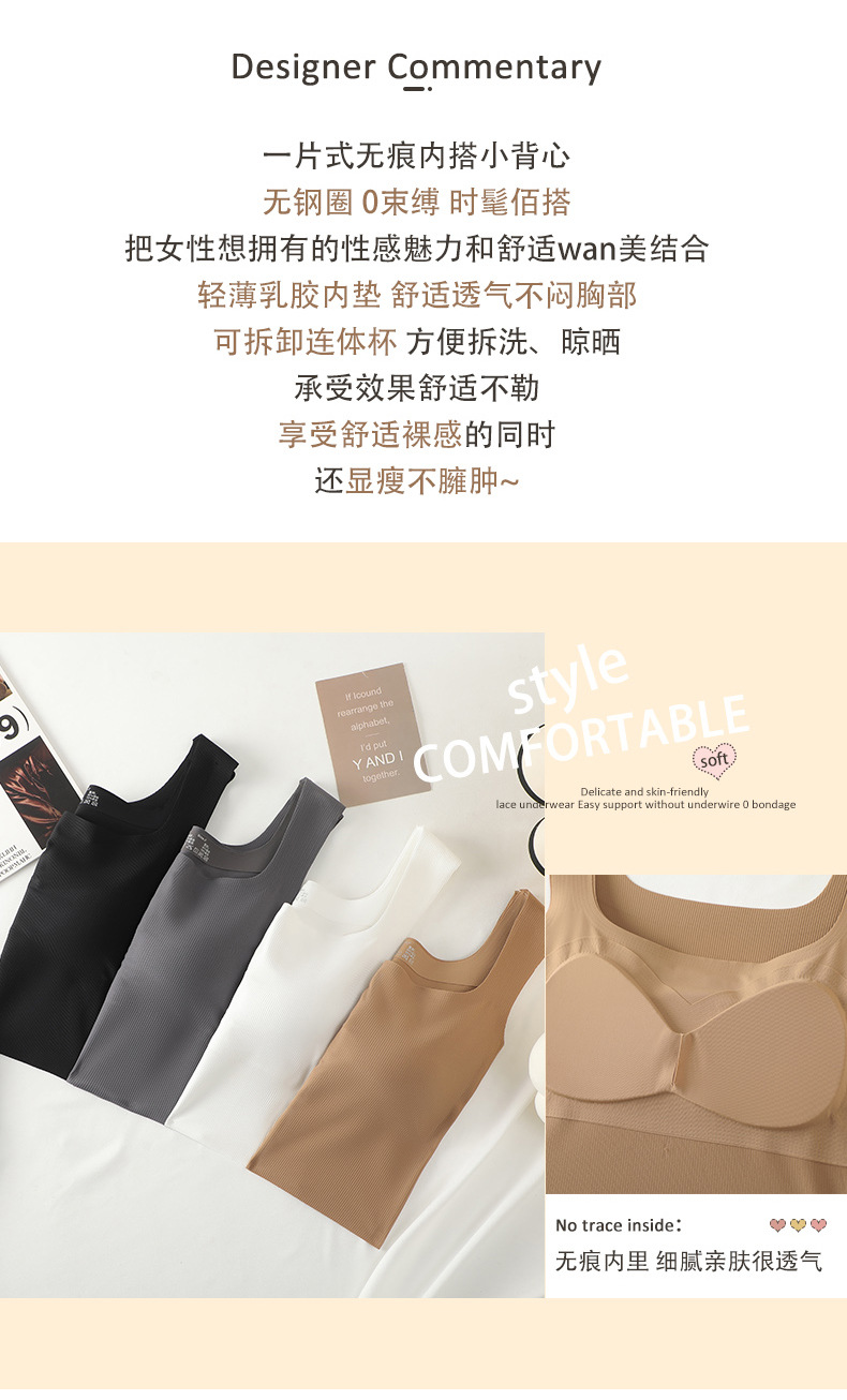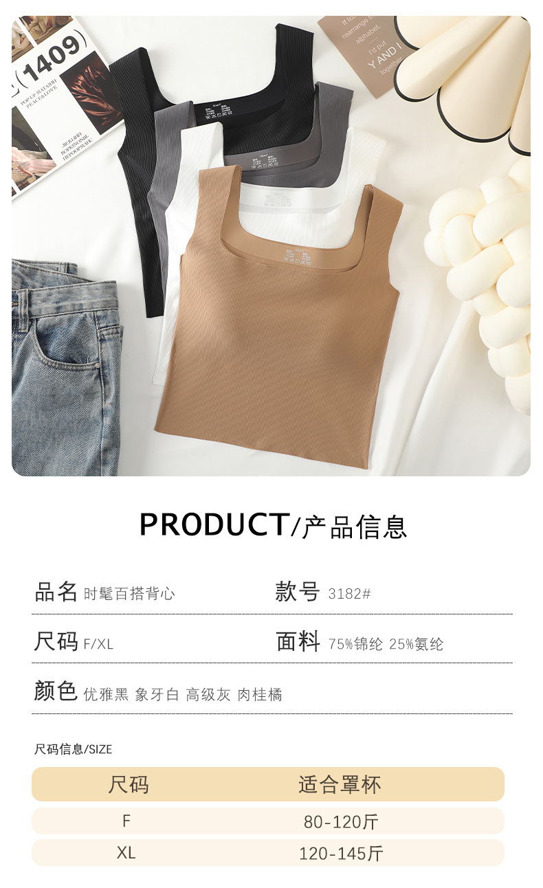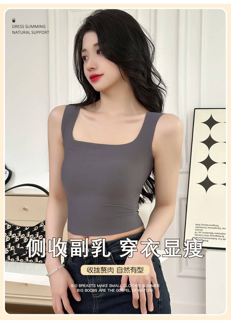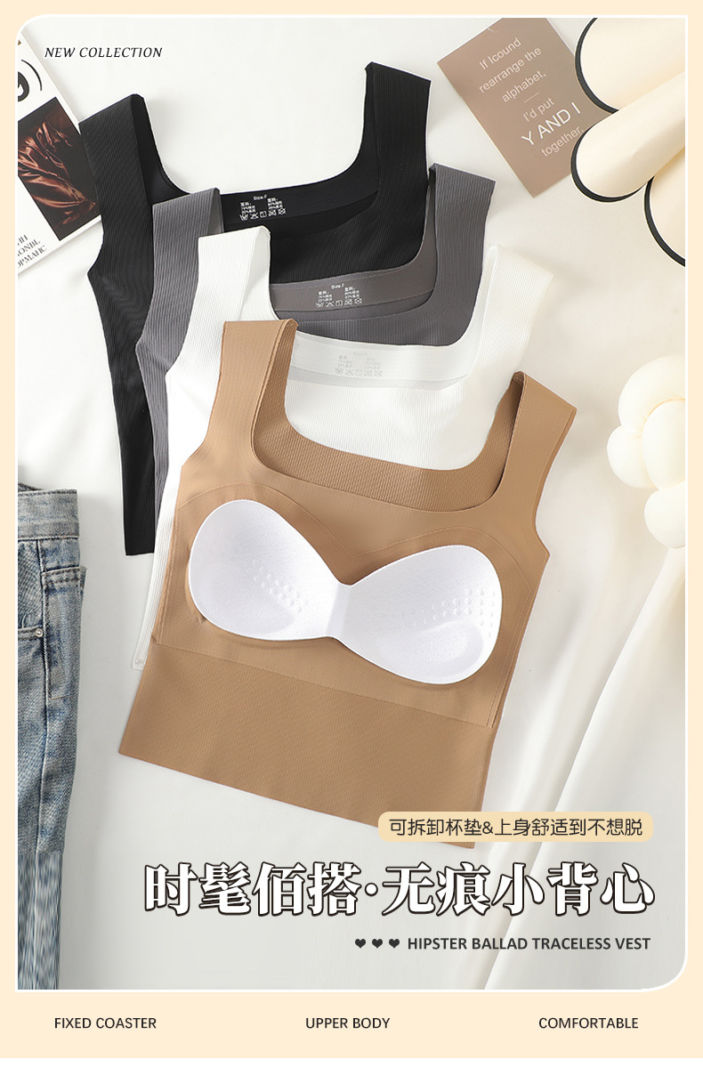 超值两件装【显瘦 显身材】新款无痕方领冰丝螺纹女士背心,舒适亲肤,轻薄透气,耐磨抗皱,高弹力,夏季纯棉美背小背心女,内搭外穿可拆卸胸垫无钢圈内衣