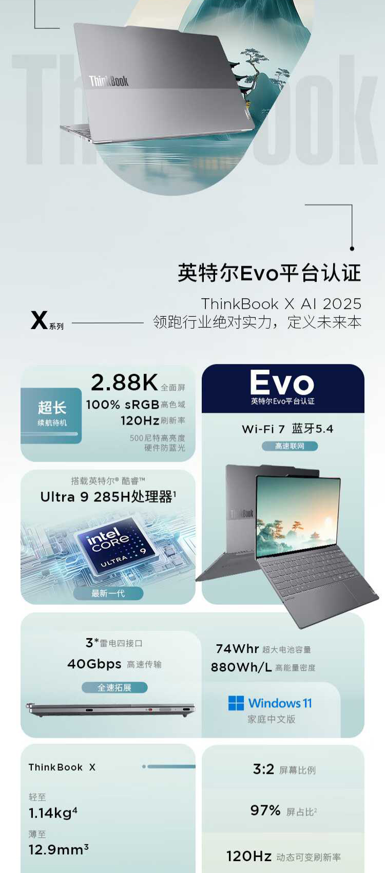 ThinkBook X-03CD | Ultra9-285H/32G/1TSSD/集显/13.5"2.8K/WiFi7/FHD+IR摄像头/指纹/Win11银灰色 |