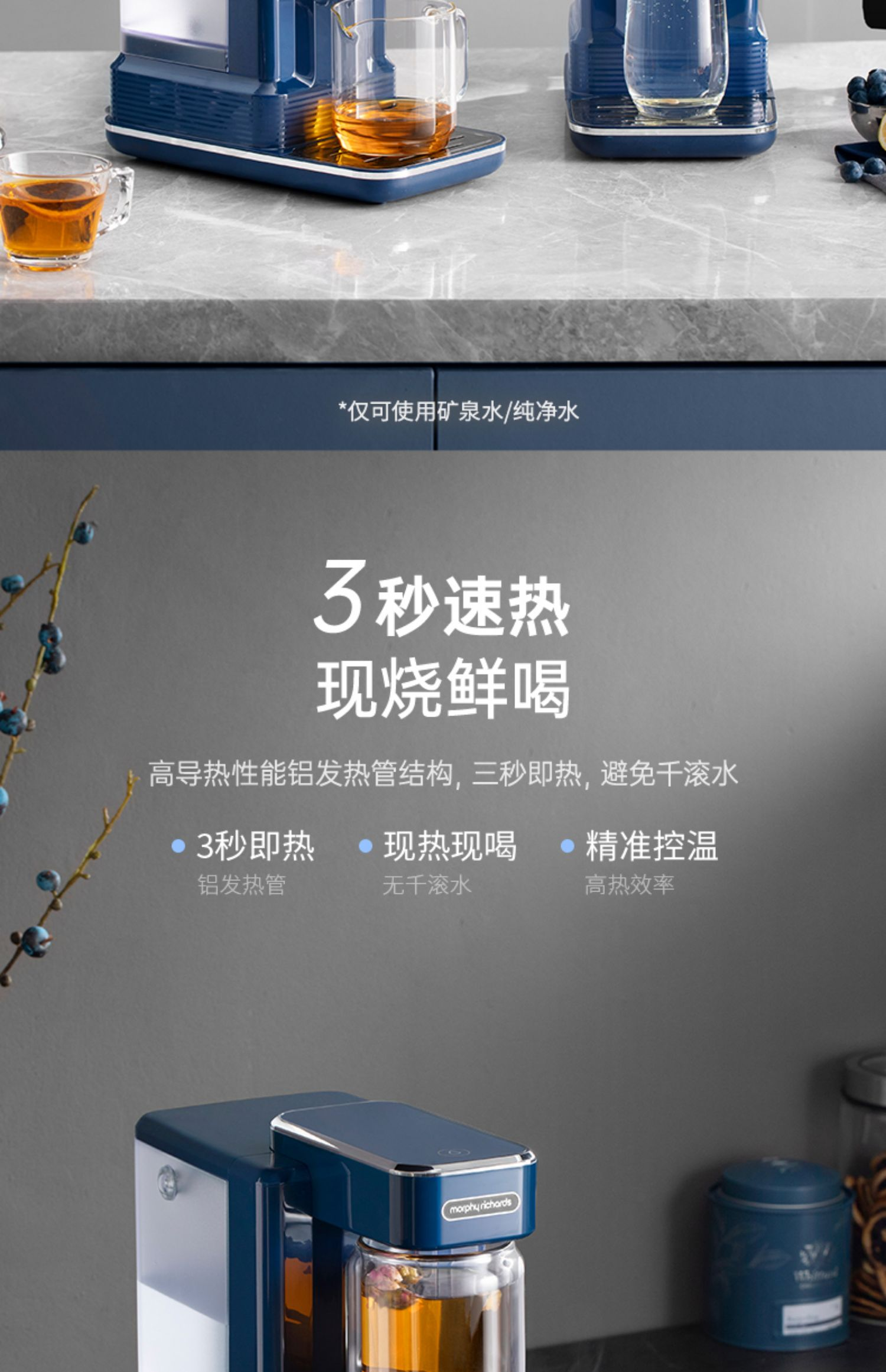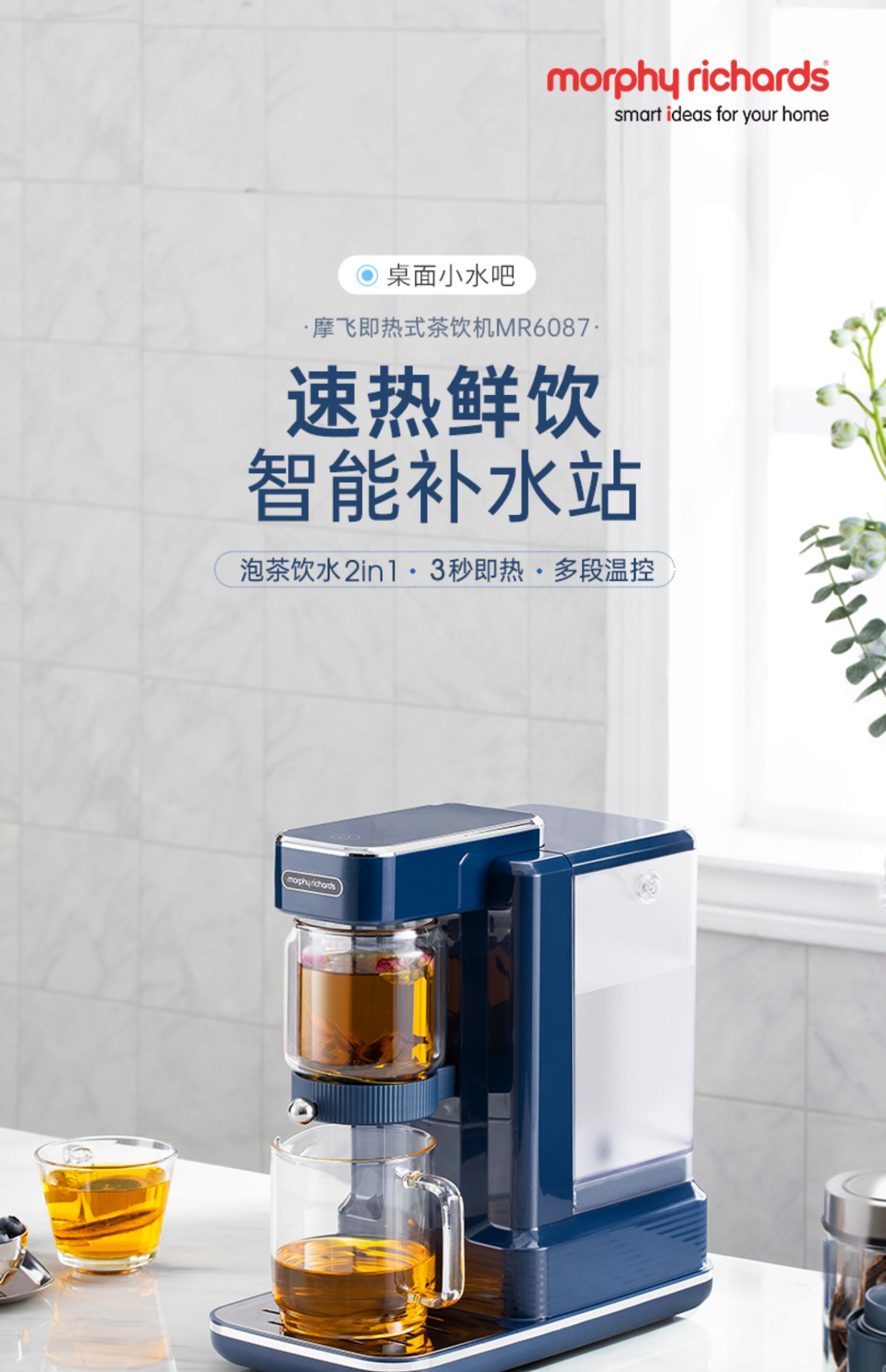 【摩飞3秒速热即热饮水机】摩飞即热式饮水机台式小型桌面家用泡茶直饮器智能速热茶饮一体机
