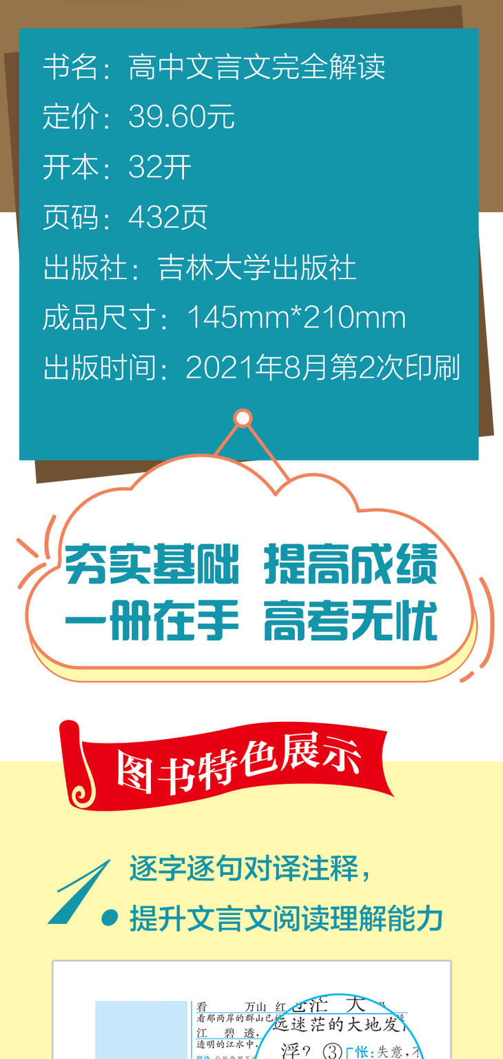 正版2册高中文言文解读+高中文言文基础知识译注及赏析初中古诗文全解一本通阅读训练中学语文教辅古汉文一本通高中教辅