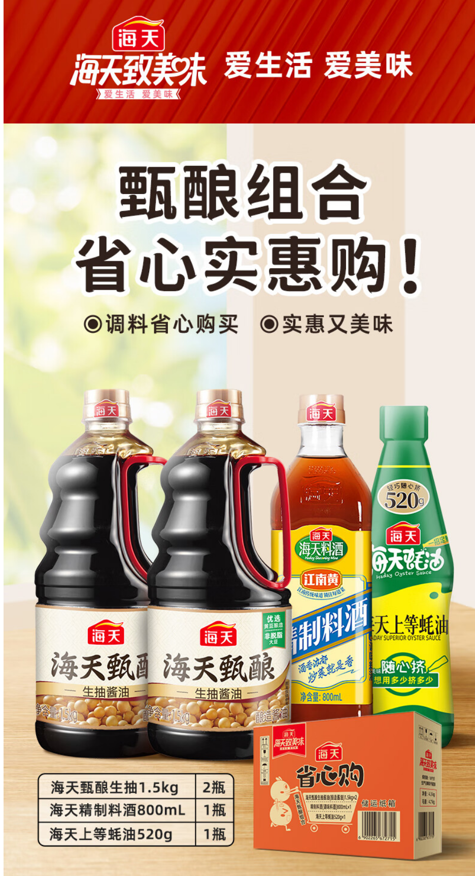 海天礼盒 甄酿1.5kg*2+上等蚝油520g+精制料酒800ml 100091755695