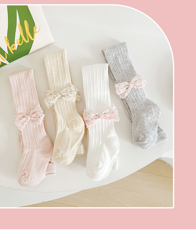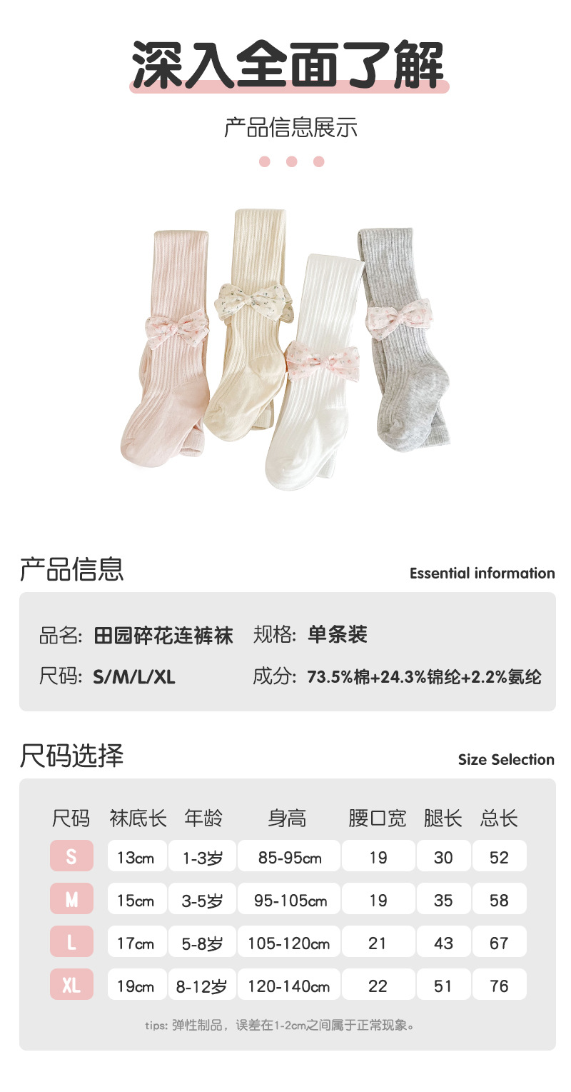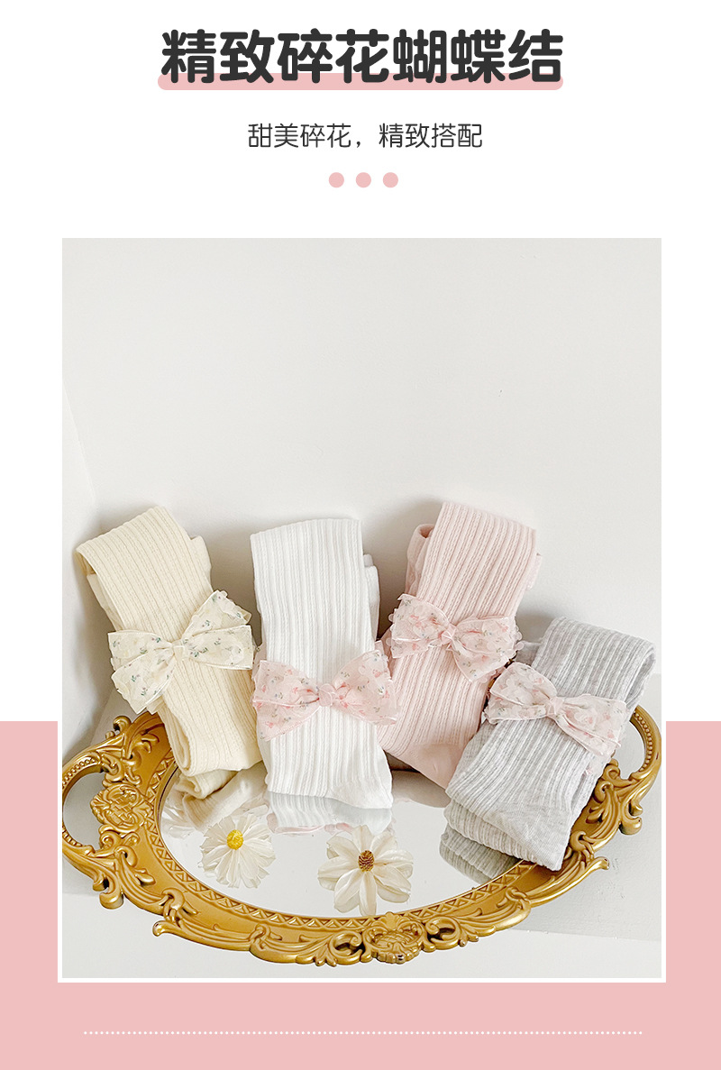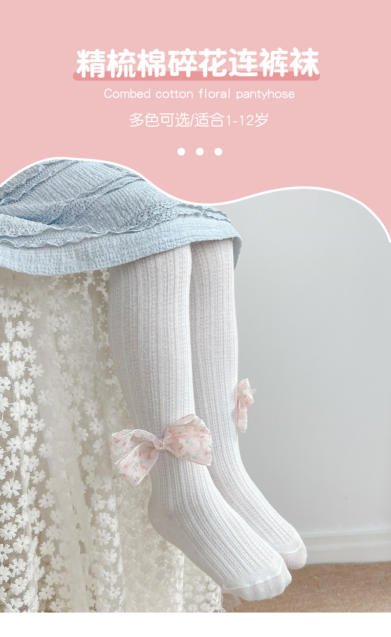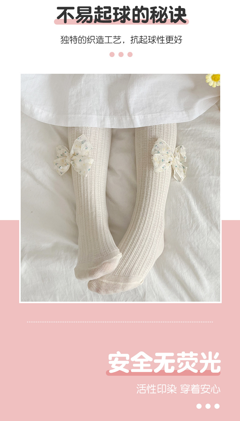 女童打底裤春夏季麻花纹儿童打底裤 纯色蝴蝶结女童连裤袜聚