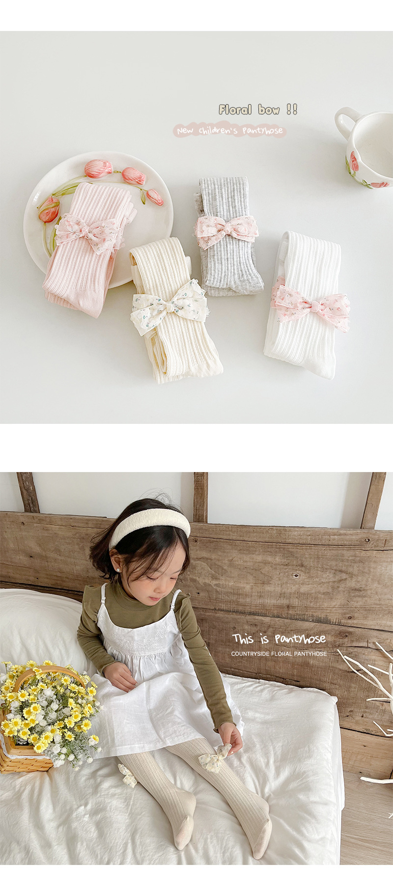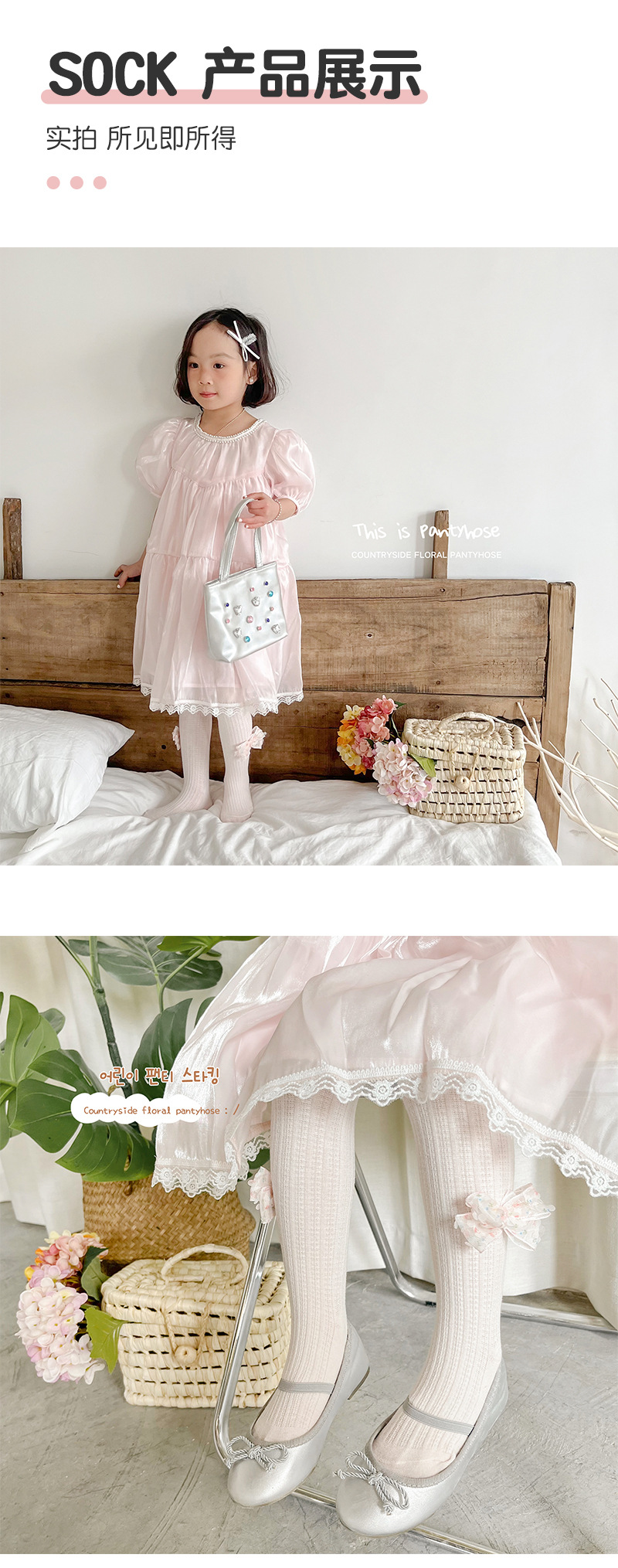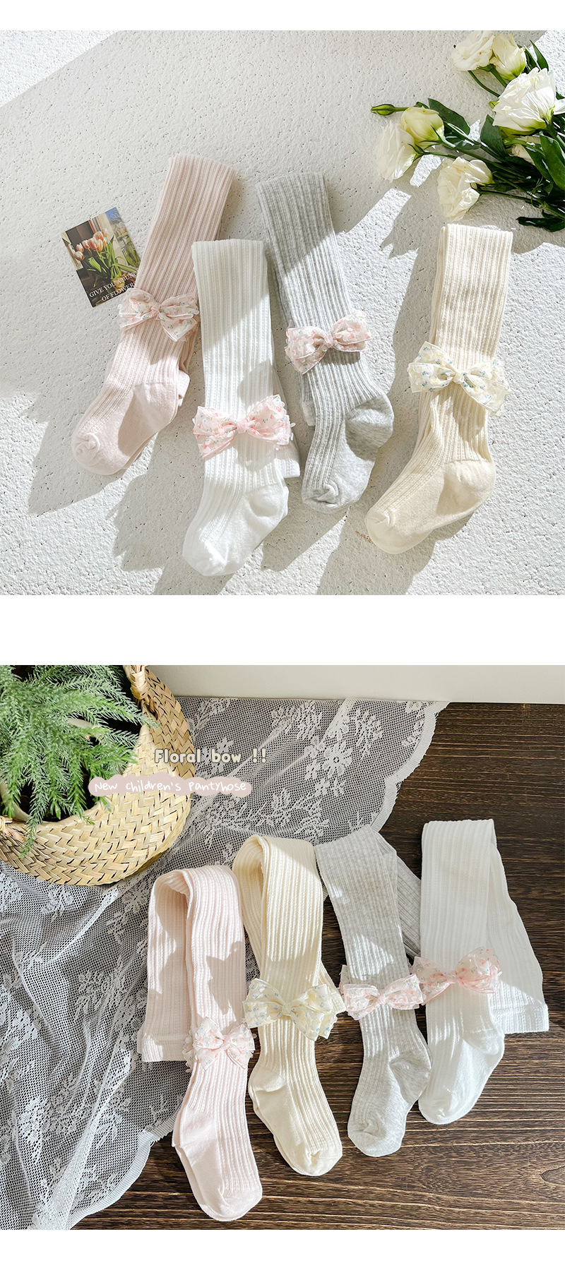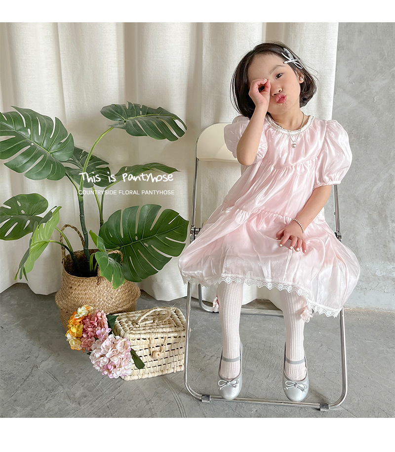 女童打底裤春夏季麻花纹儿童打底裤 纯色蝴蝶结女童连裤袜聚