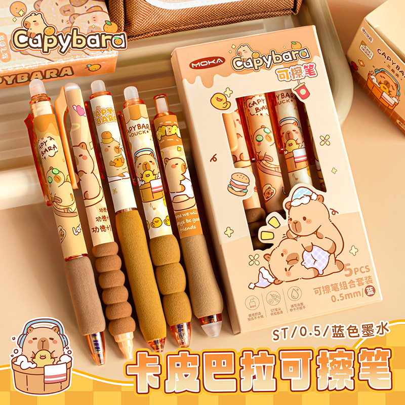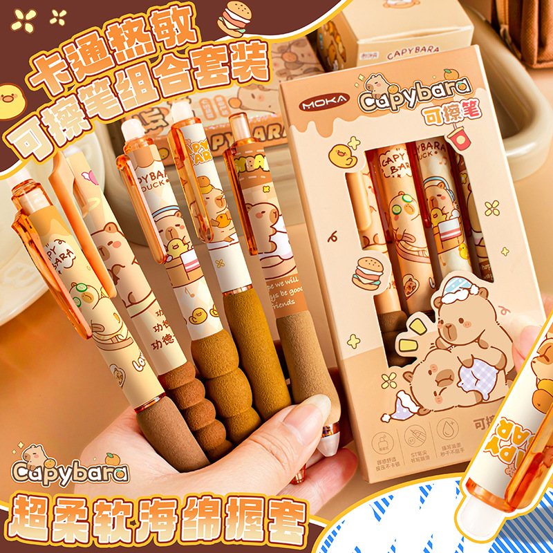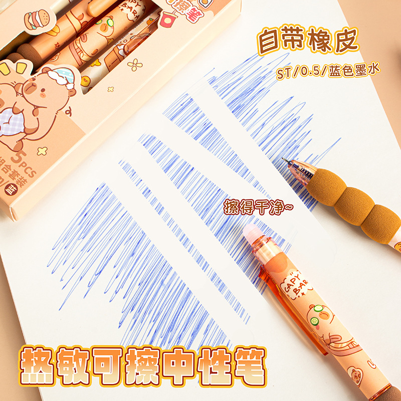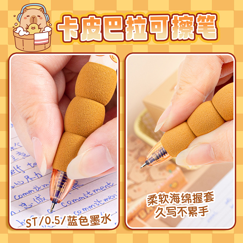 【开学季❗️可擦按动中性笔】卡皮巴拉卡通学生高颜值热敏可擦中性笔,柔软海绵握套久写不累手,书写顺畅,字迹清晰,速干成型!高颜值小学生儿童用卡通活动笔L