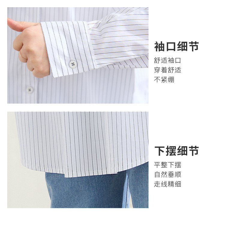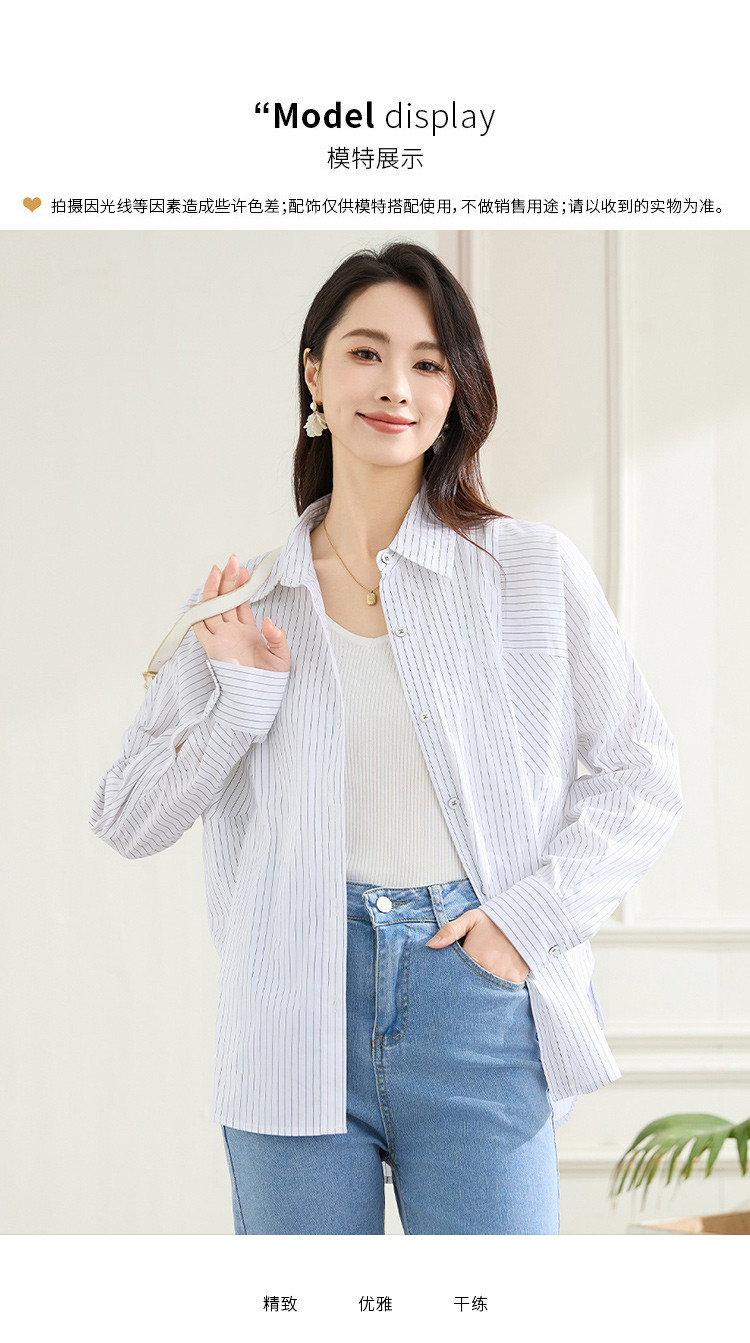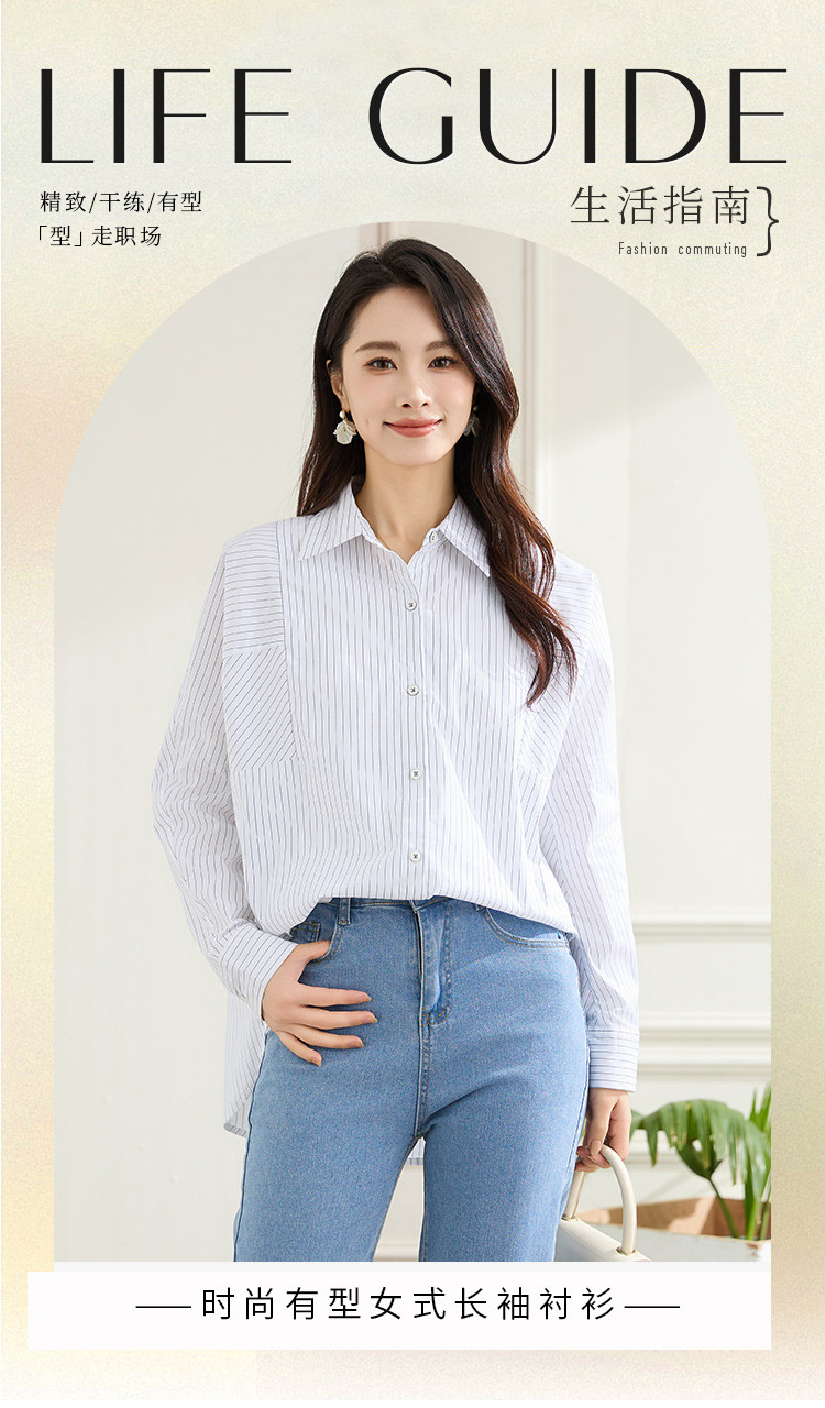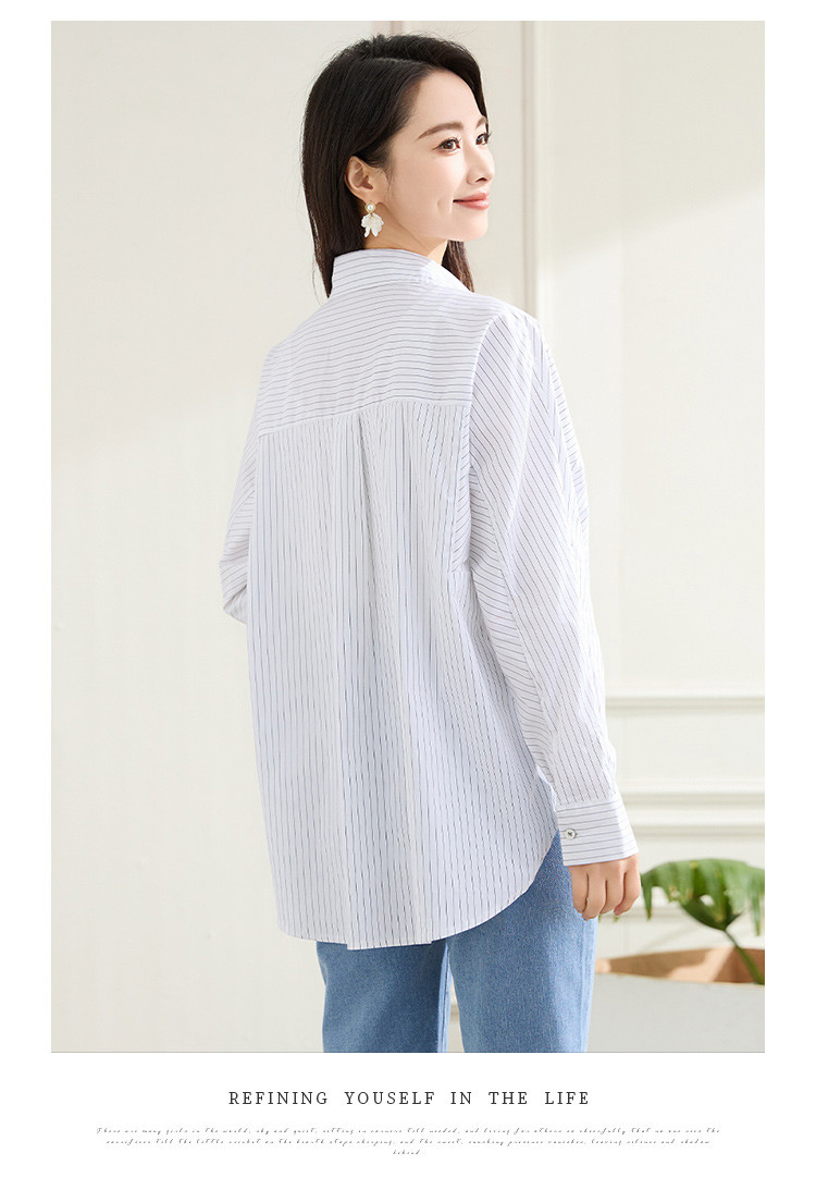 罗蒙春秋条纹长袖衬衫女士休闲百搭商务通勤棉质衬衣外套