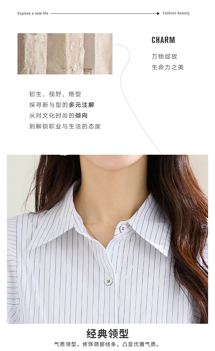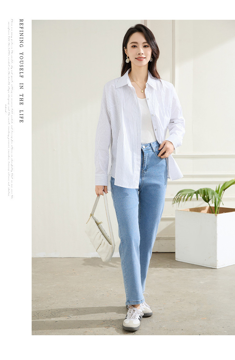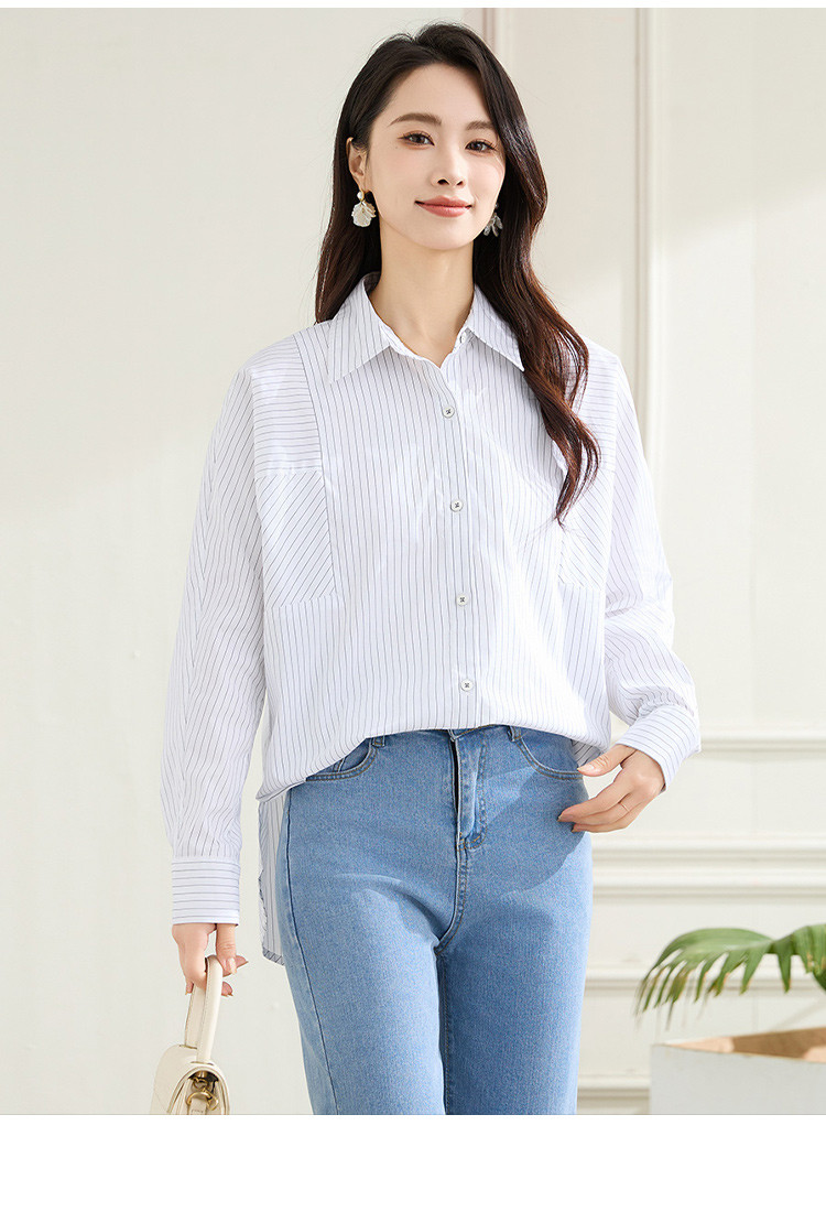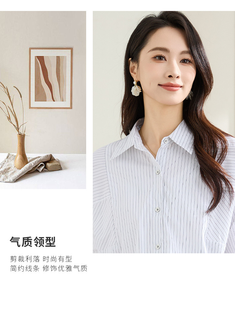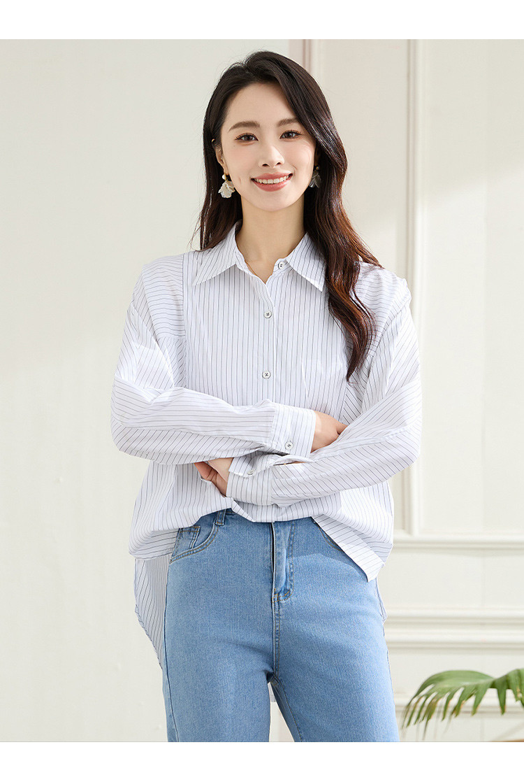 罗蒙春秋条纹长袖衬衫女士休闲百搭商务通勤棉质衬衣外套