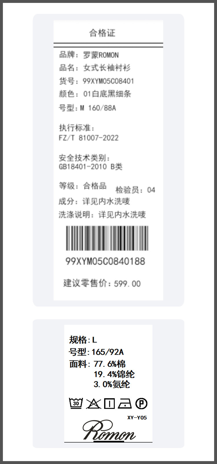 面料:77.6%棉 19.4%锦纶3.0%氨纶