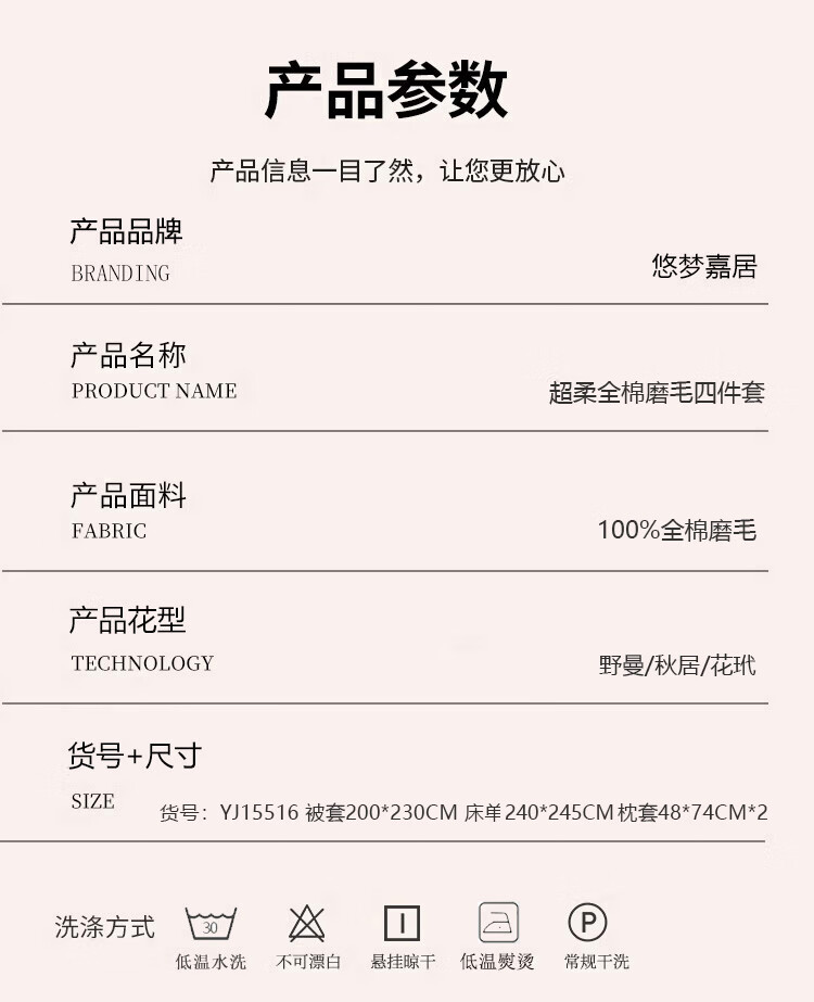 【多样屋专柜】悠梦嘉居超柔全棉磨毛四件套野曼/秋居/花玳 3款可选200*230cm