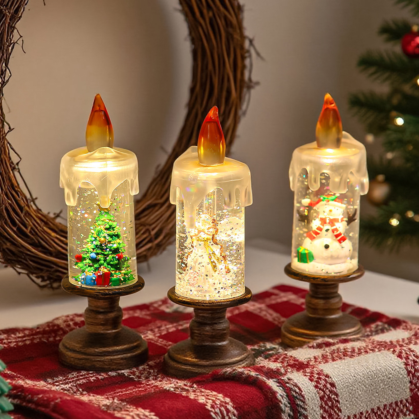 新品❗️圣诞节装饰品 蜡烛灯 飘雪雪花灯 圣诞水晶灯 创意圣诞礼物