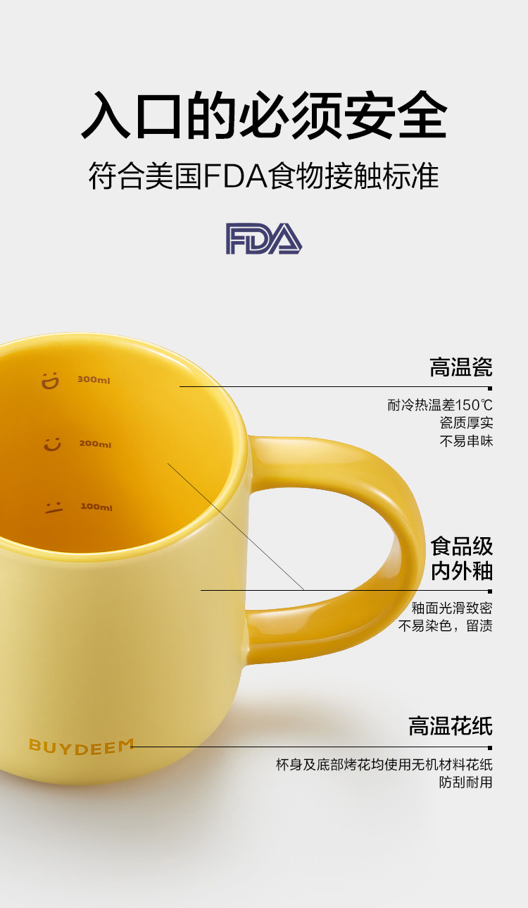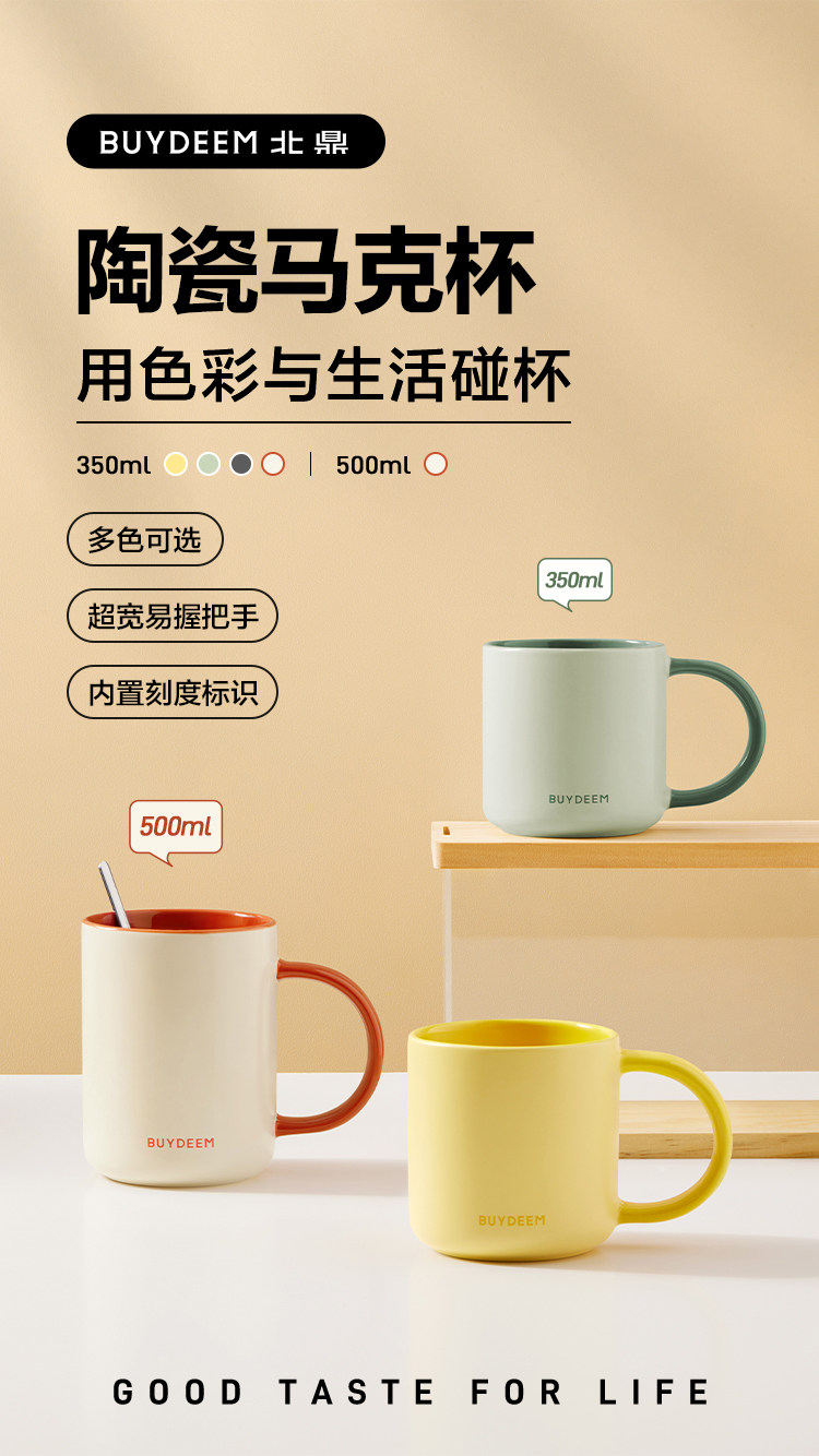 【北鼎陶瓷马克杯】北鼎马克杯陶瓷杯大容量杯子高颜值水杯咖啡杯茶杯办公室早餐杯