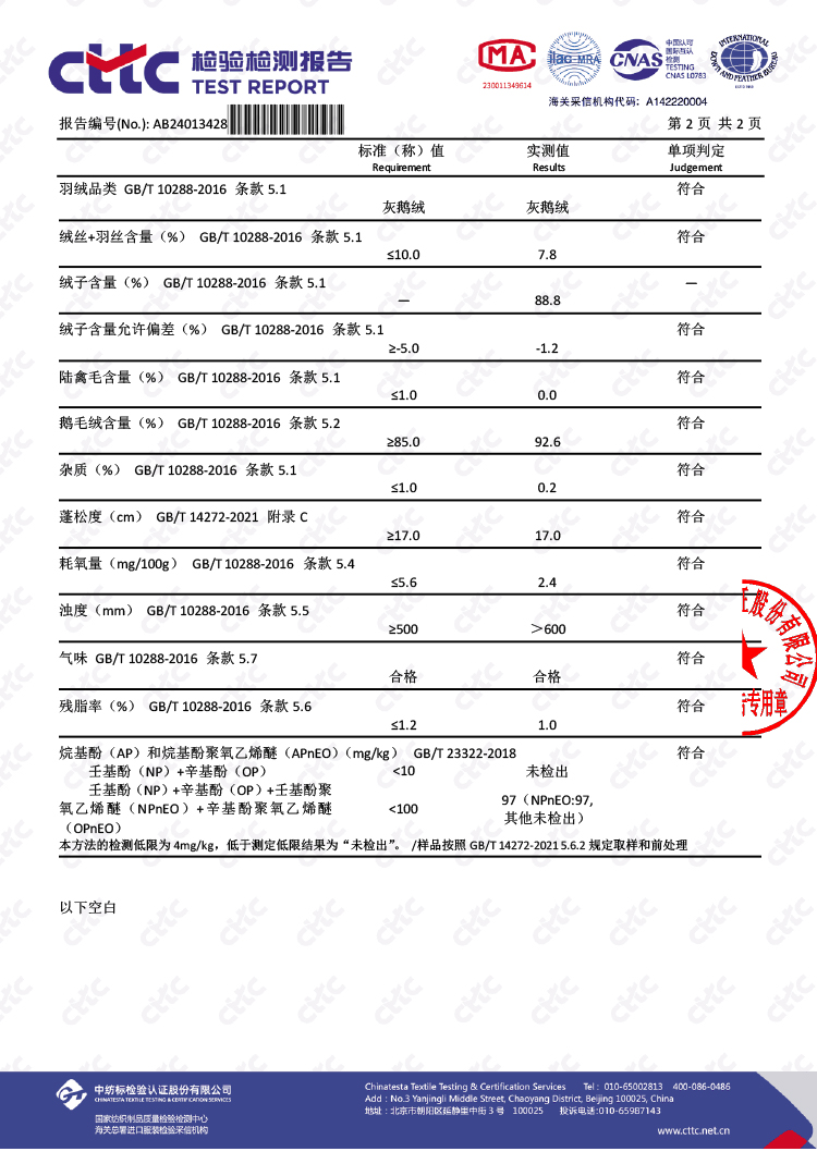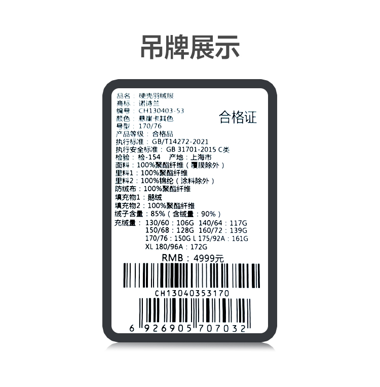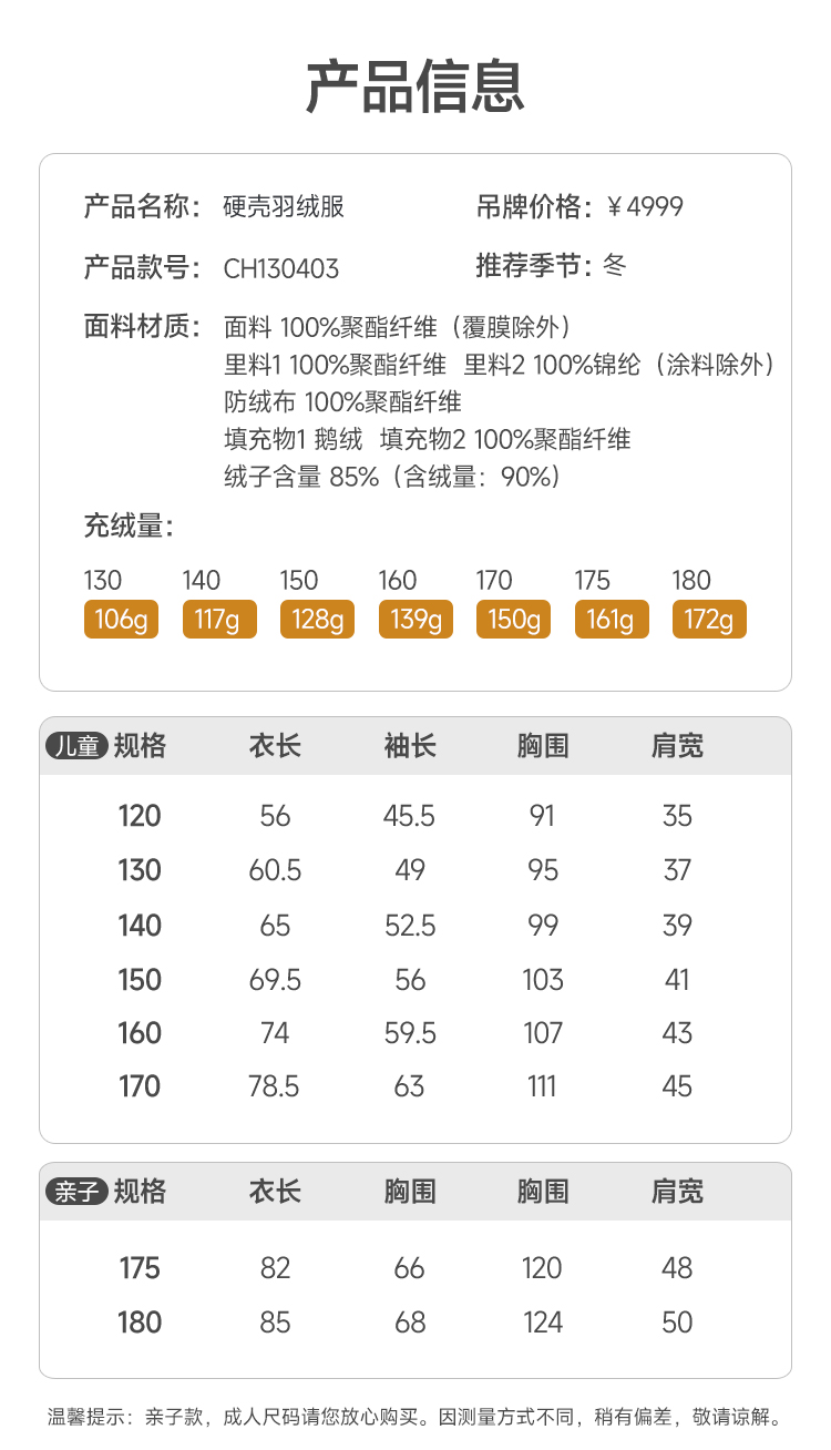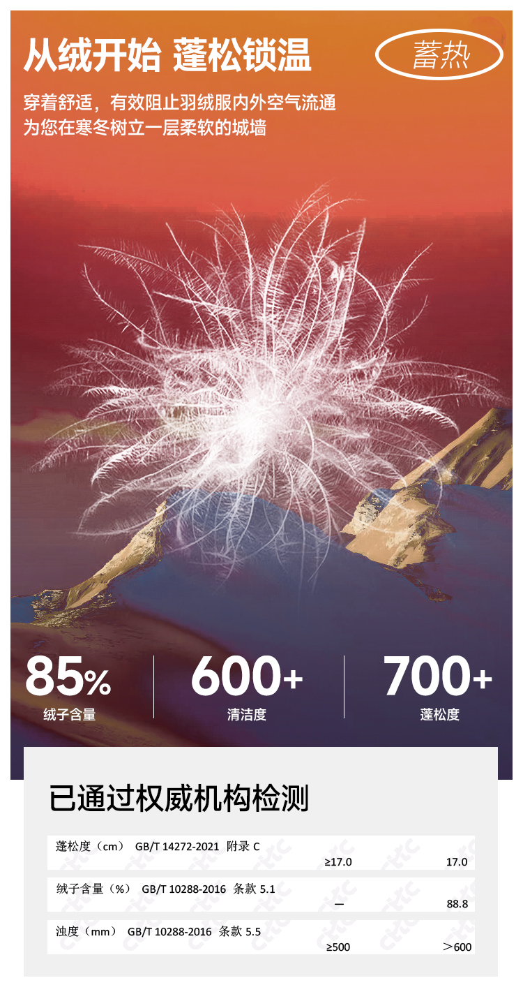 | 【面料成分】 面料100%聚酯纤维 里料100%锦纶 填充:85鹅绒 |