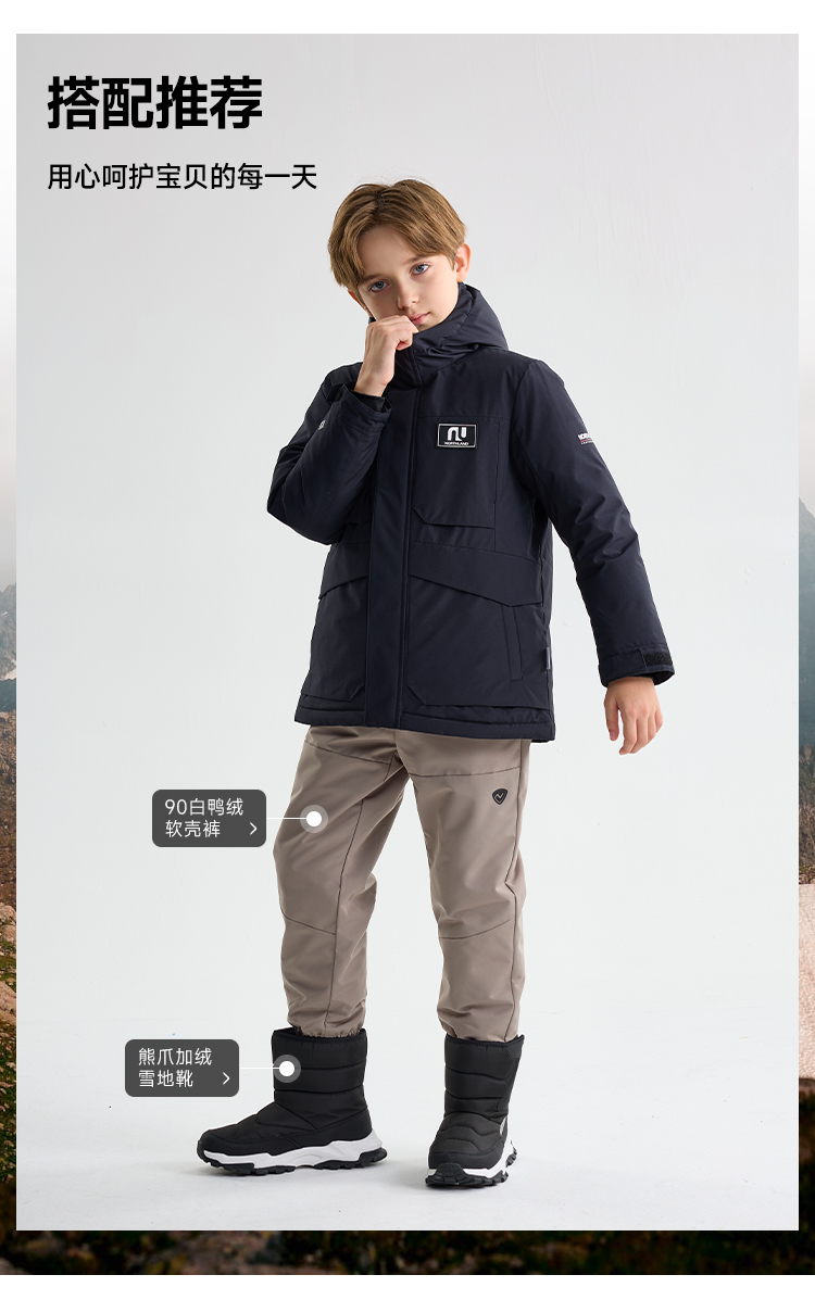 | 【商品名称】诺诗兰儿童鹅绒服GORE TEX冬季新款加厚羽绒服 |