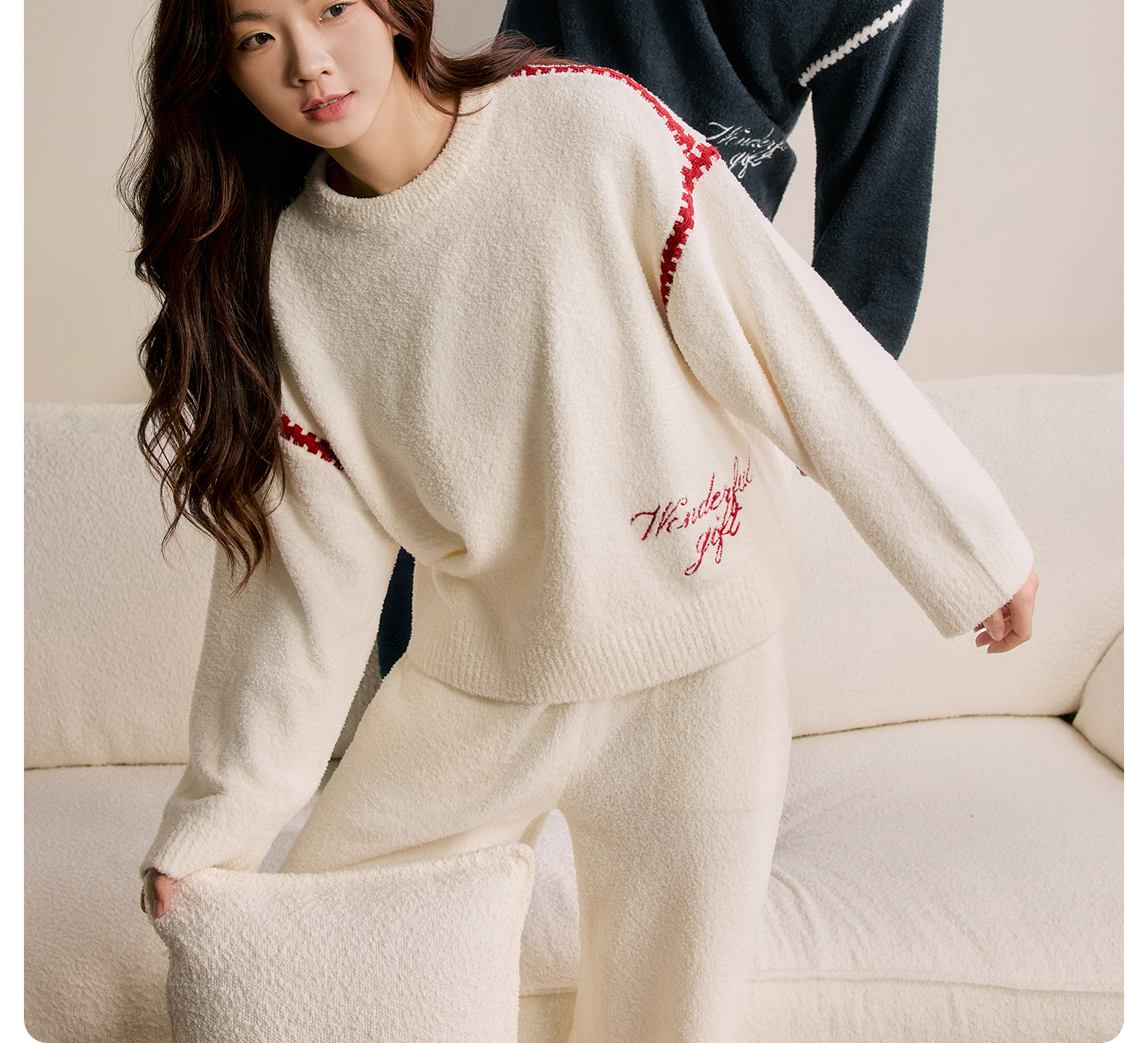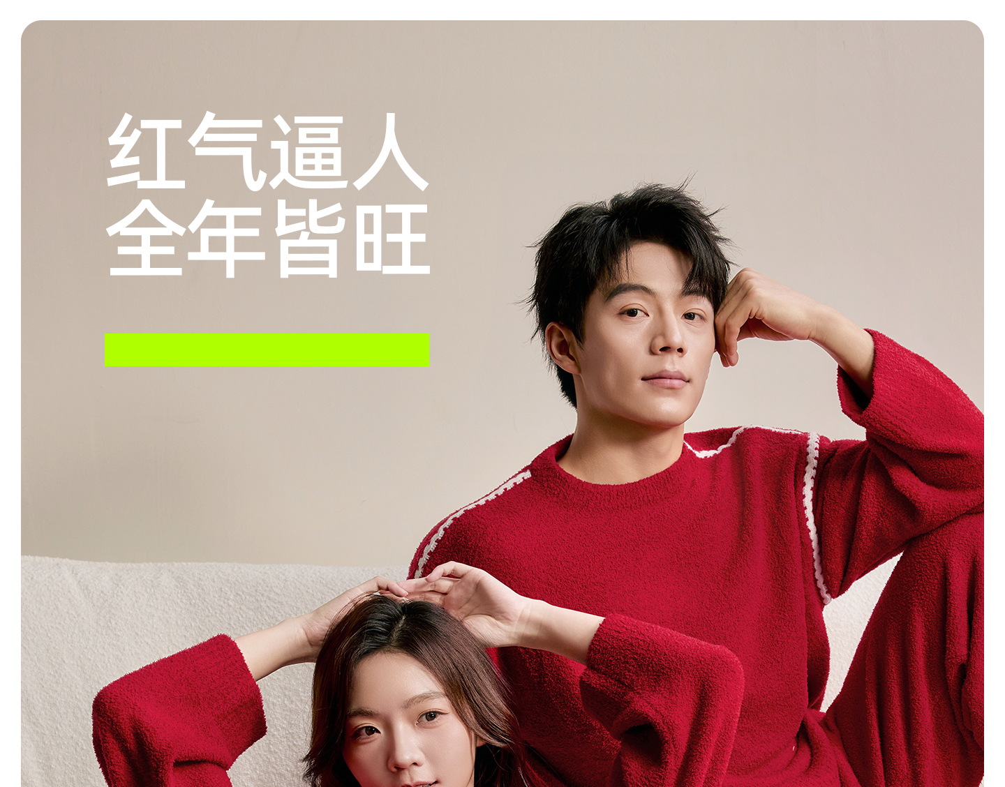 有棵树情侣半边绒本命年红色女士家居服套装-P1134