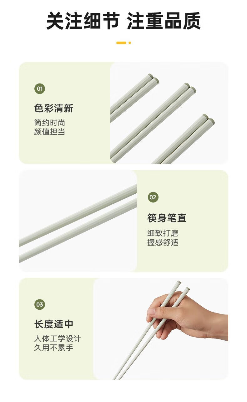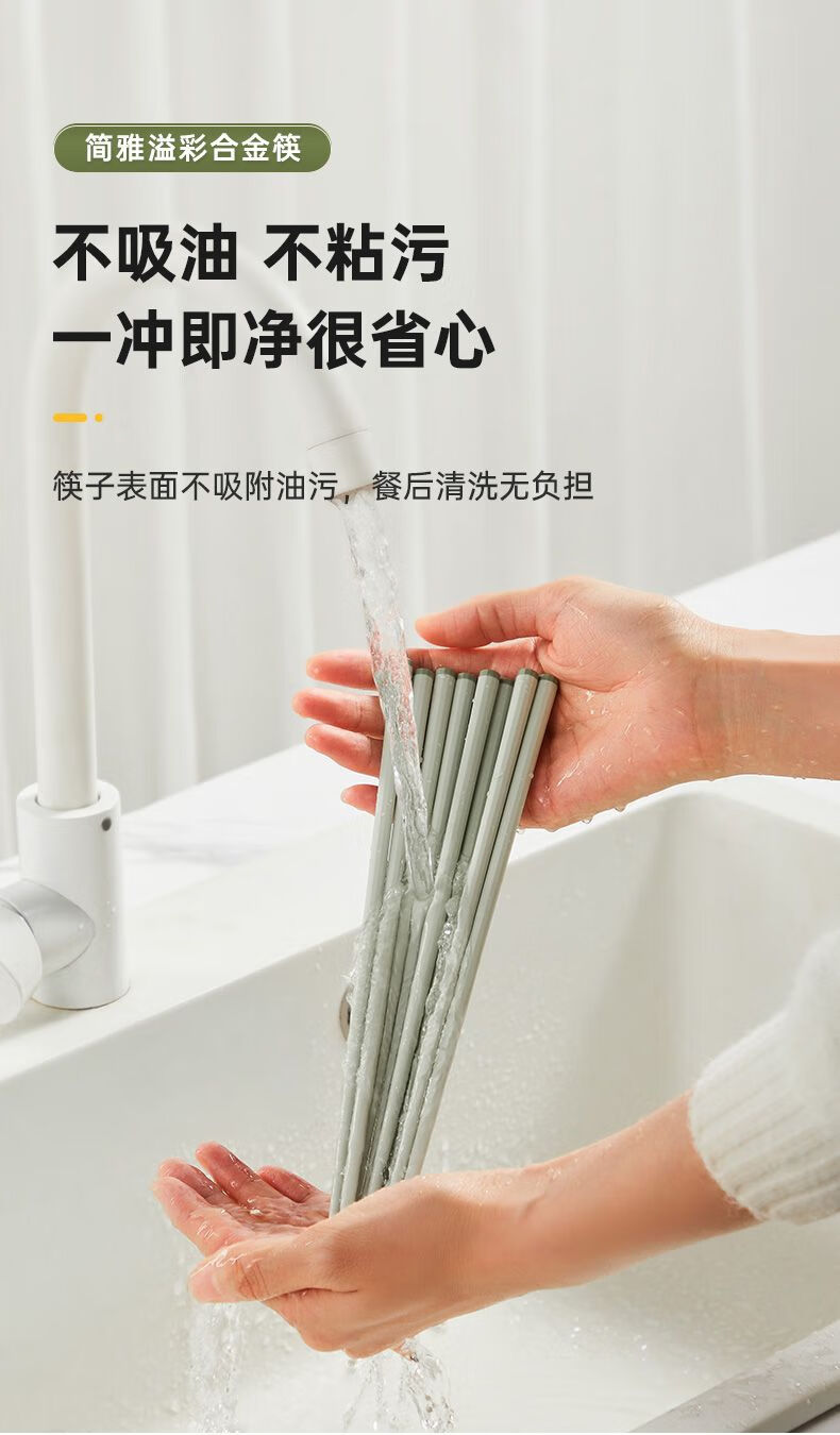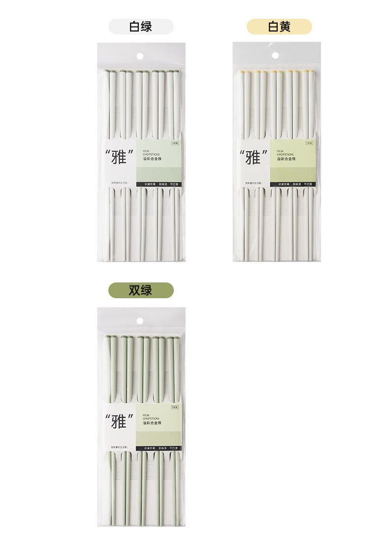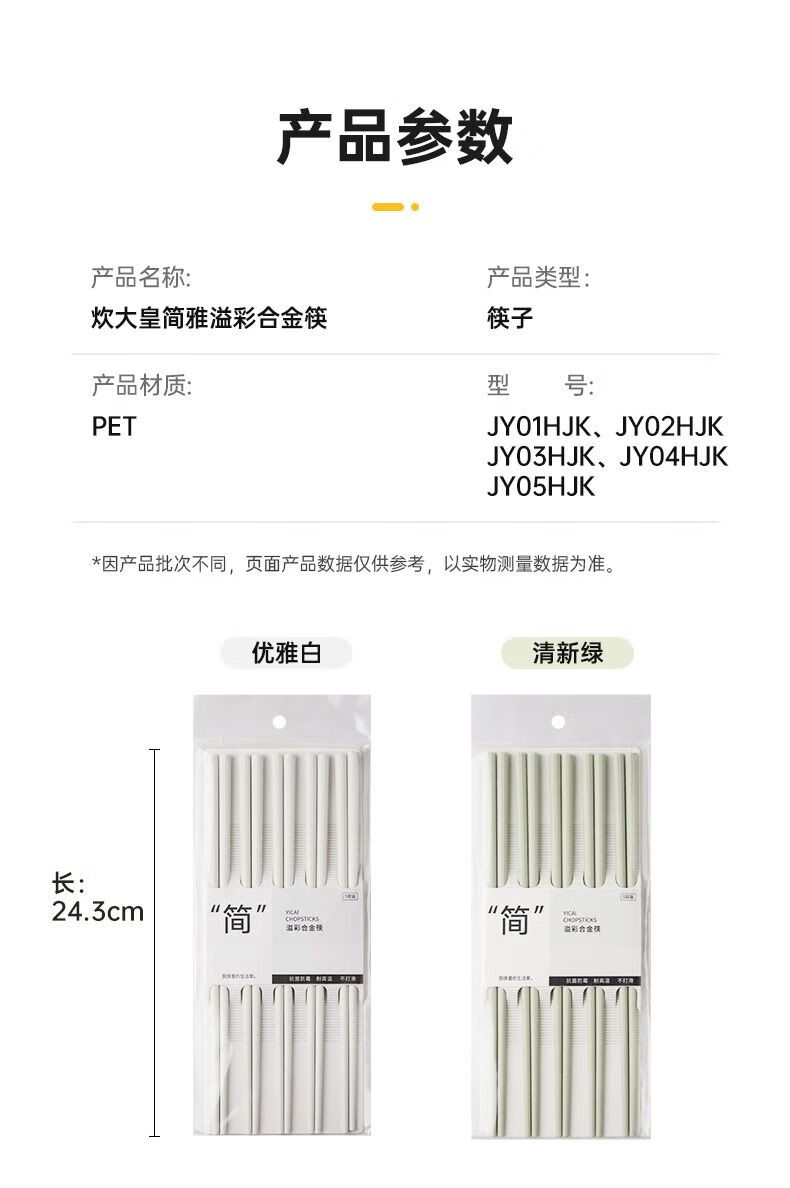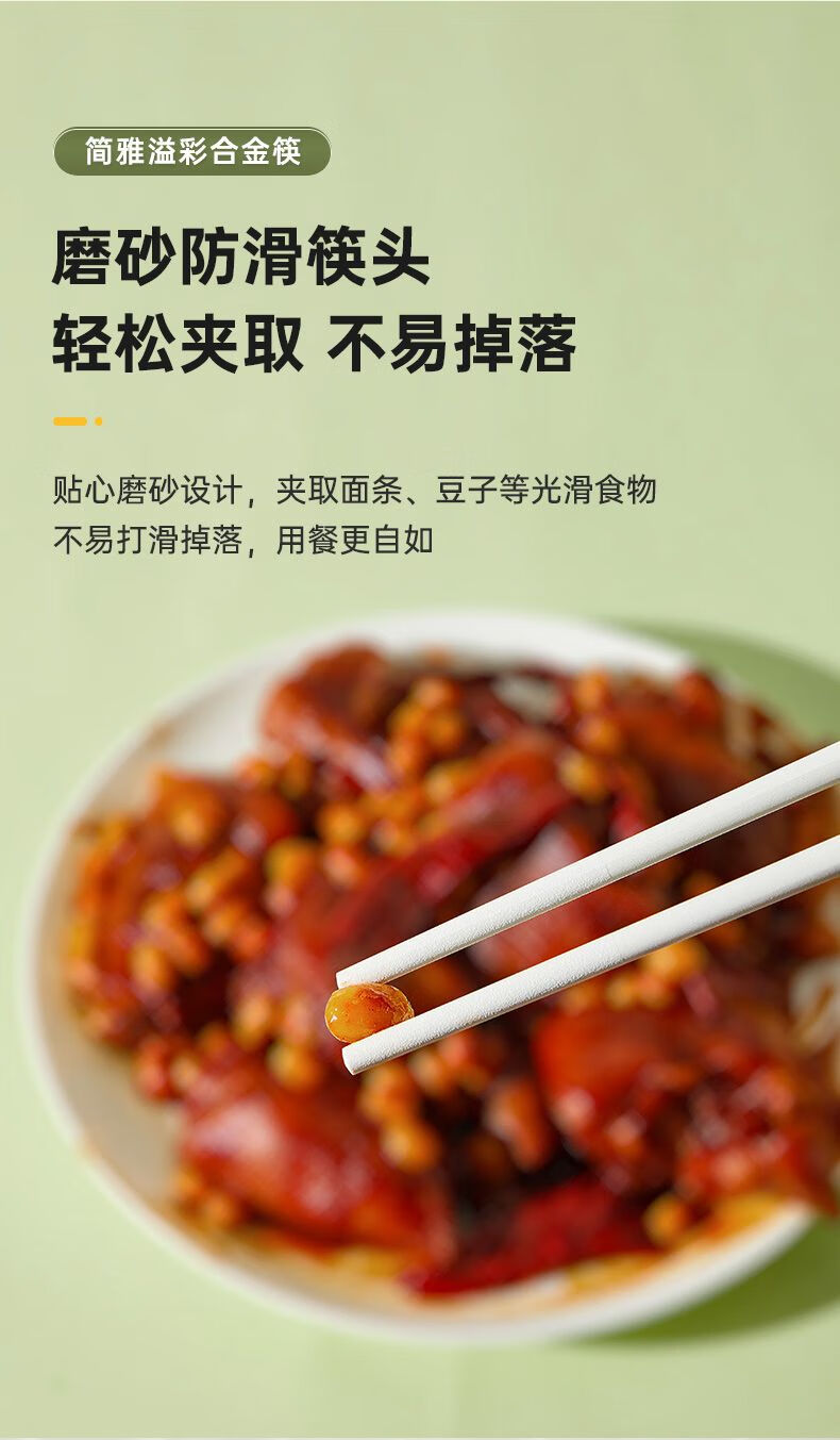 炊大皇筷子5双家用2024新款防霉防滑合金筷耐高温筷 白黄