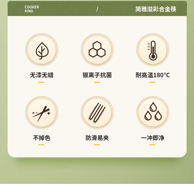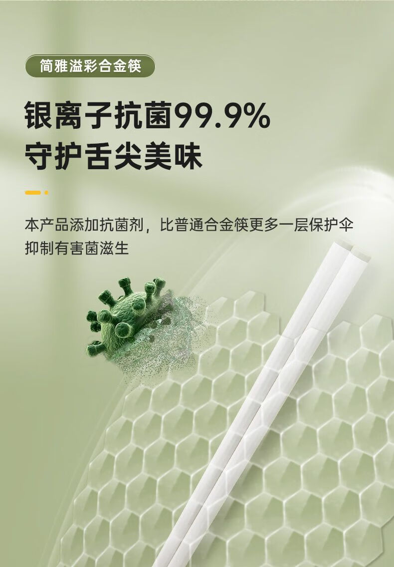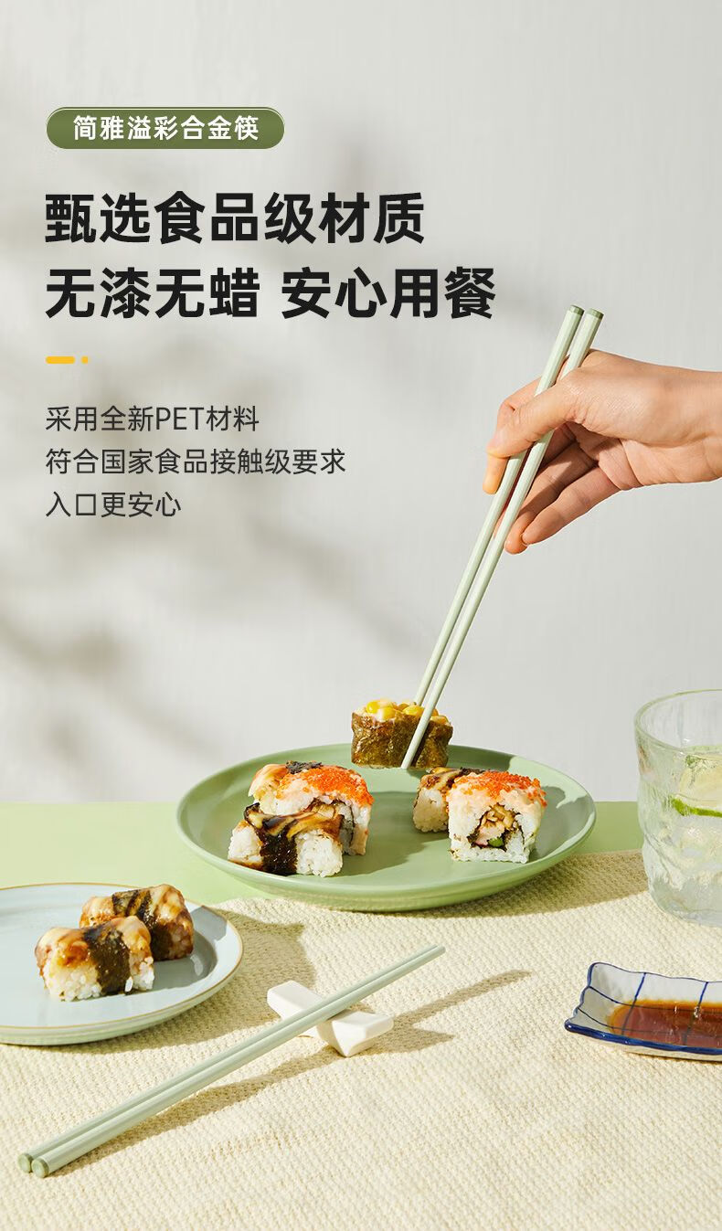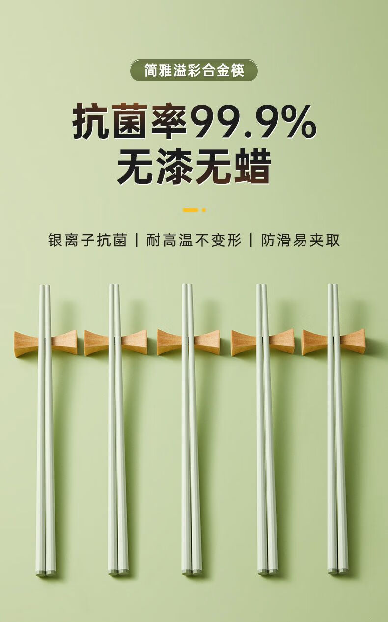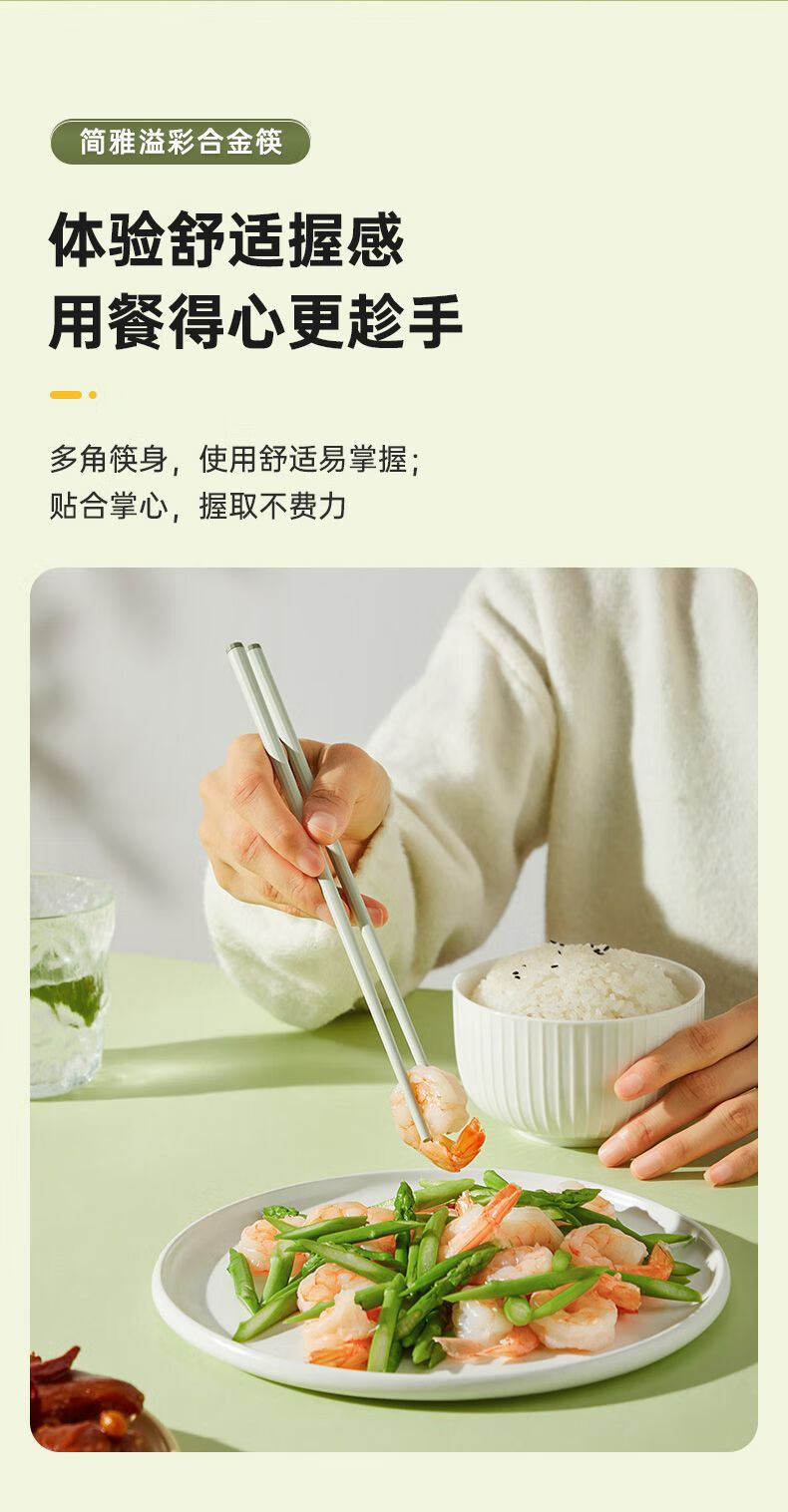 炊大皇筷子5双家用2024新款防霉防滑合金筷耐高温筷 白黄