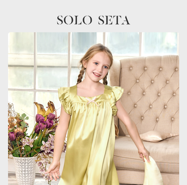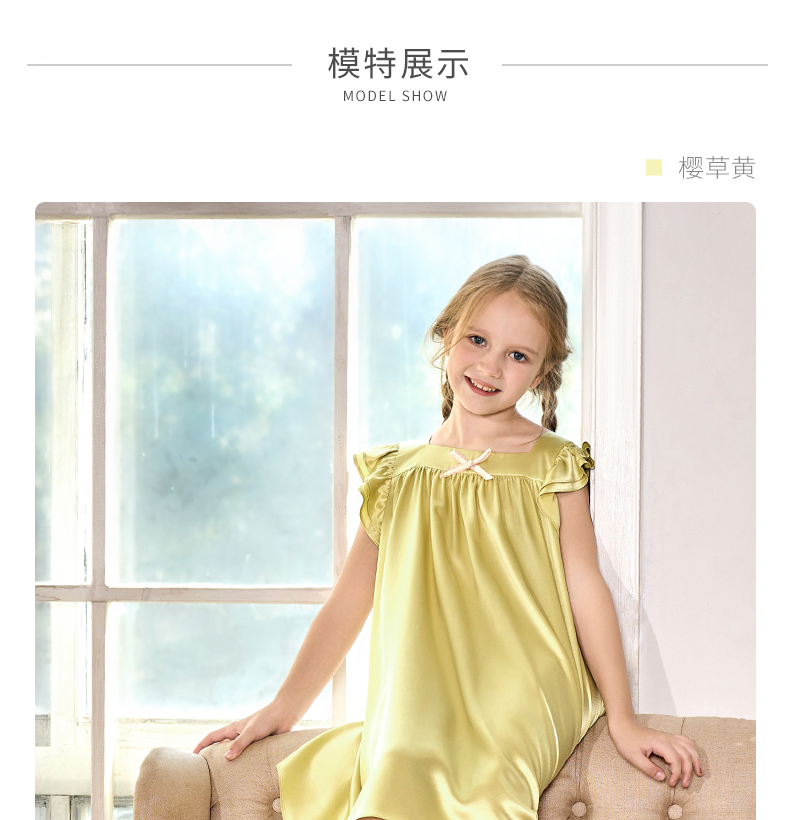 solo seta22姆米纯色真丝儿童睡裙女桑蚕丝连衣裙2025秋冬丝绸新款