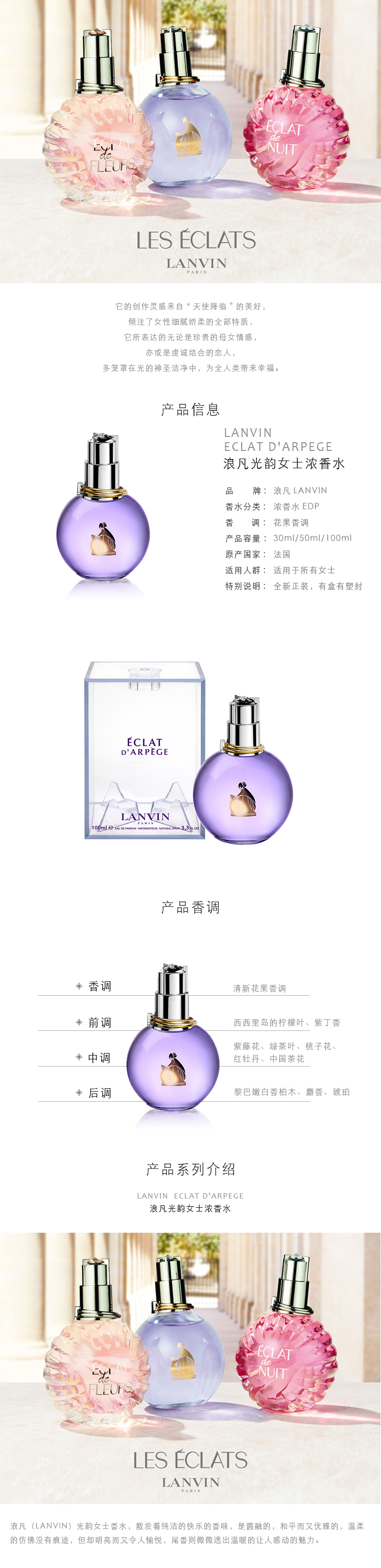 Lanvin/浪凡光韵女士浓香水持久清新花果香调 30/50/100ml