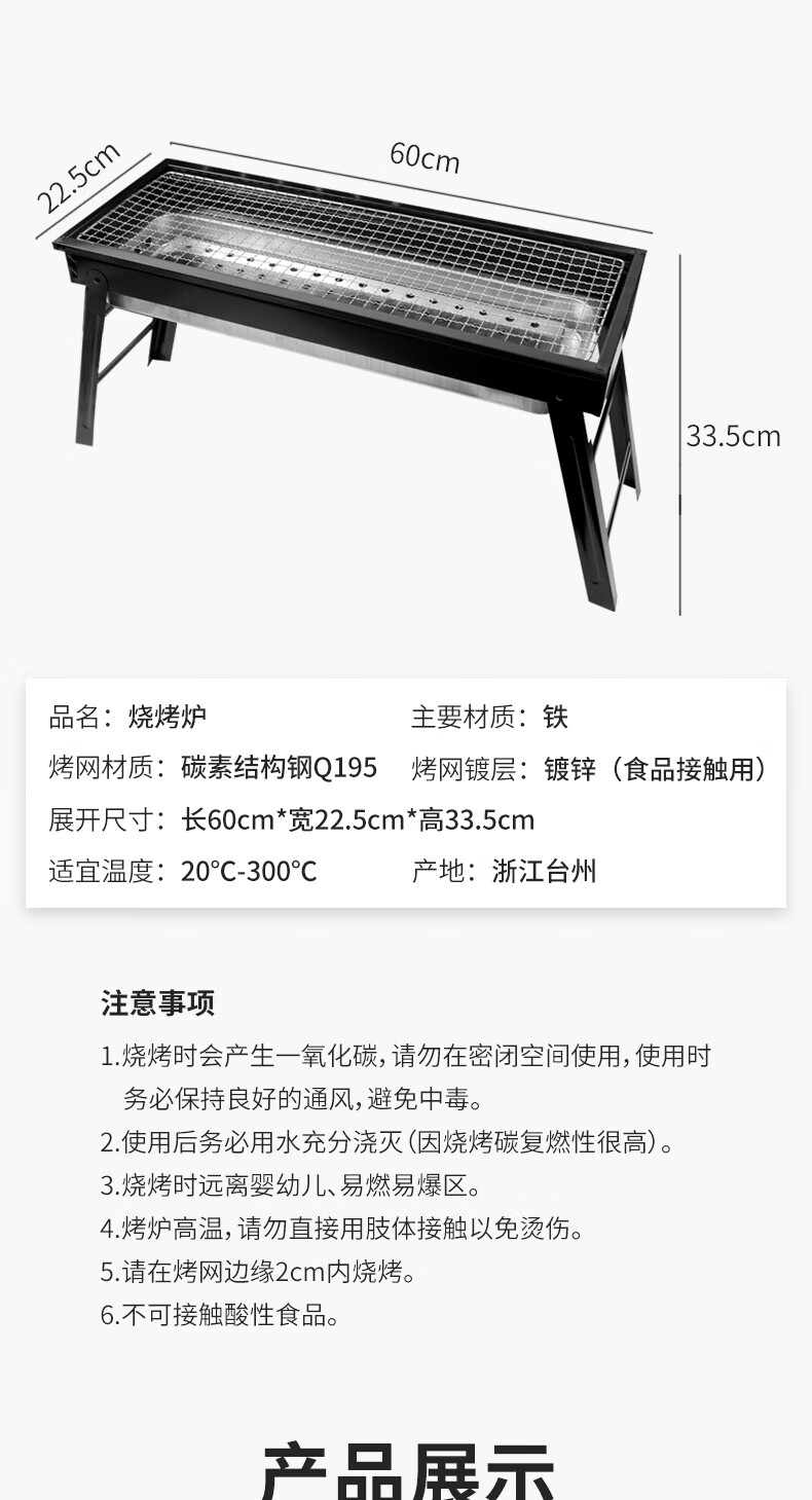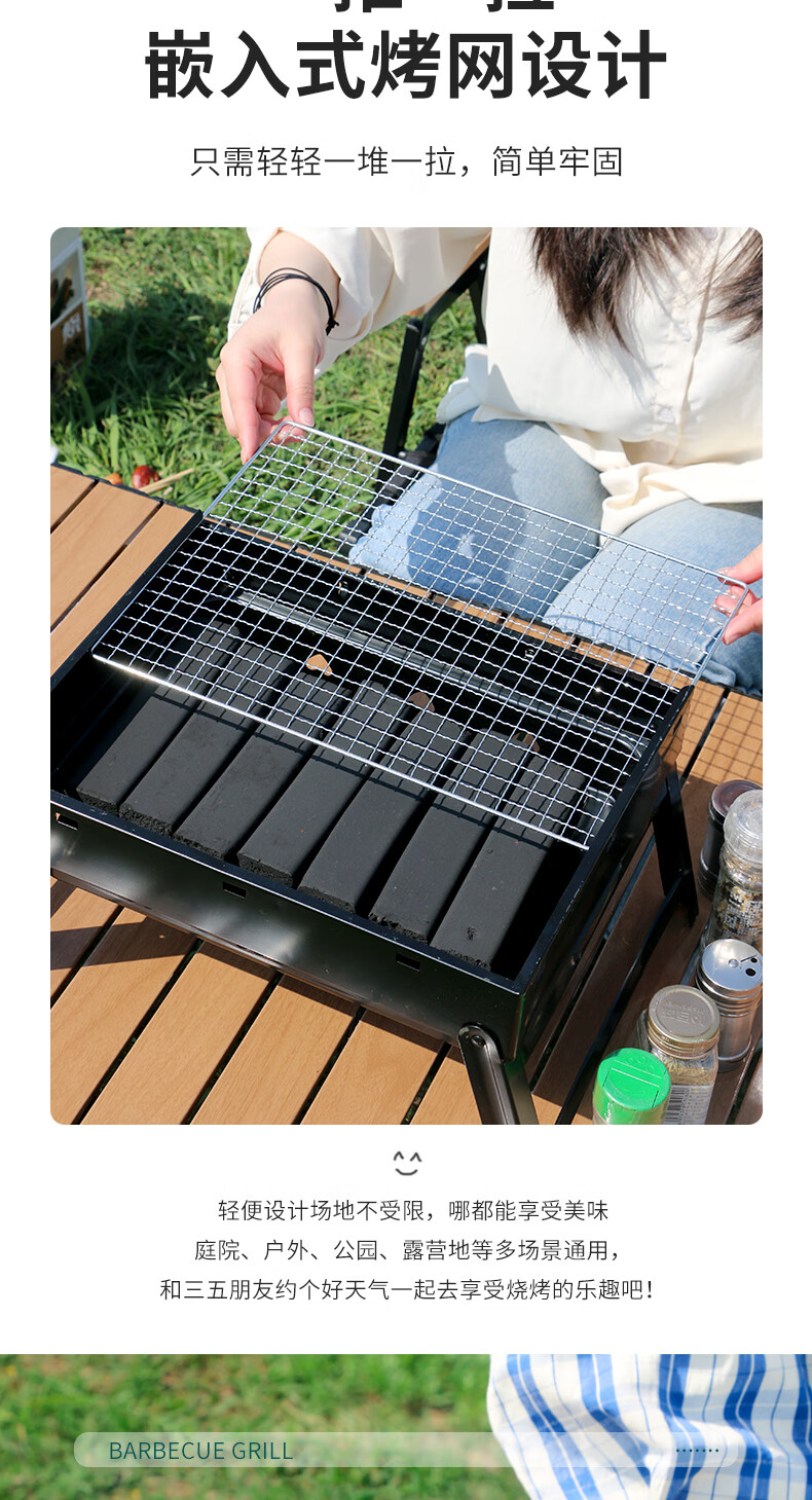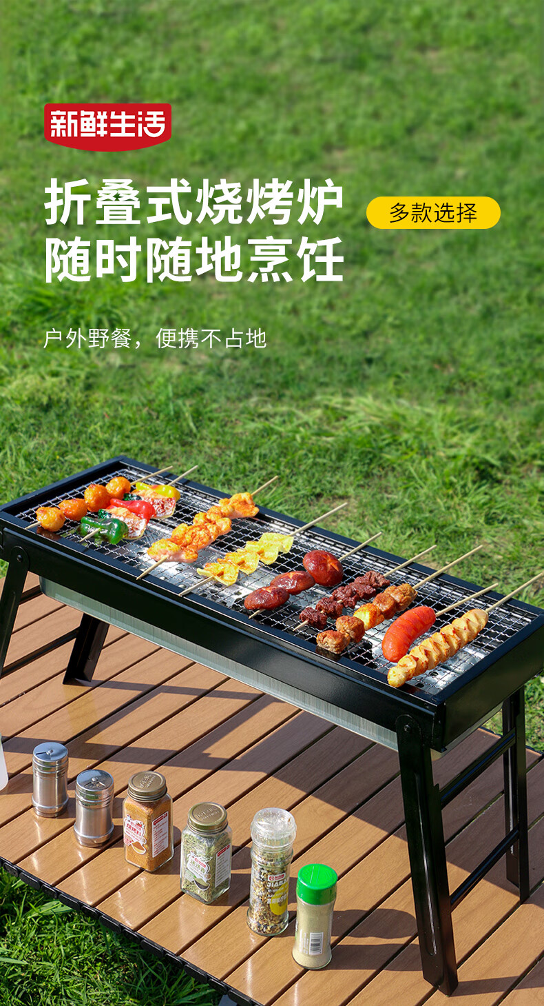 新鲜生活户外烧烤架 木碳烧烤炉 家用木炭烤炉 便携可折叠碳烤架