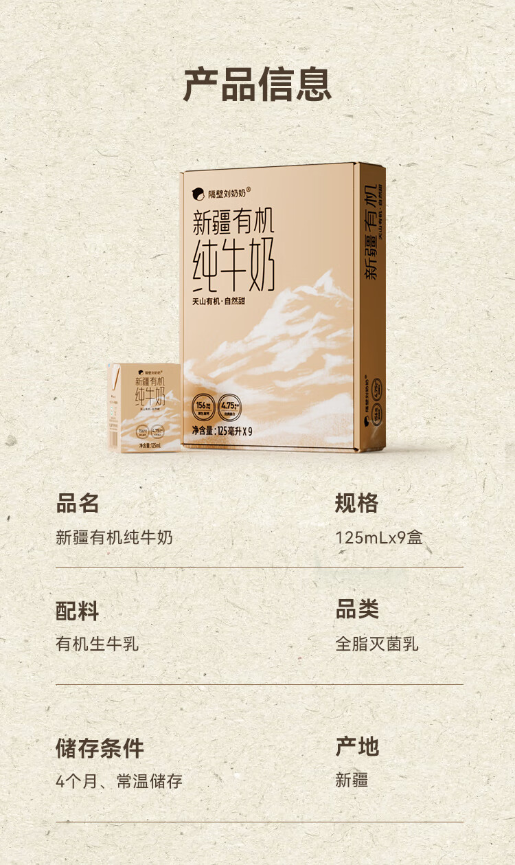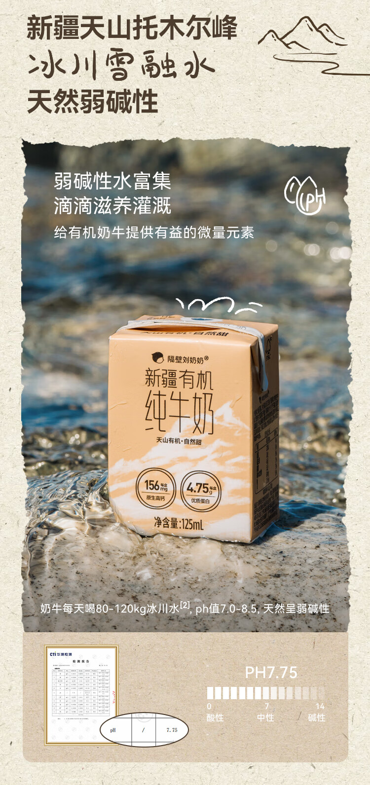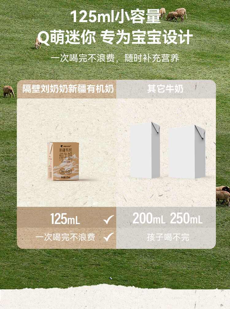 隔壁刘奶奶 新疆有机奶125ml*9盒/箱