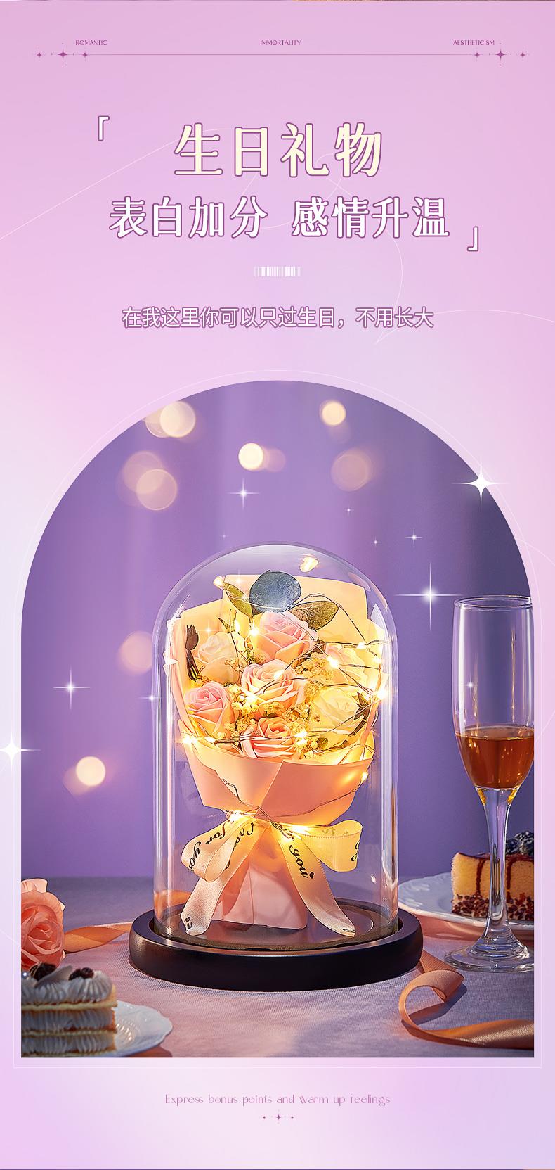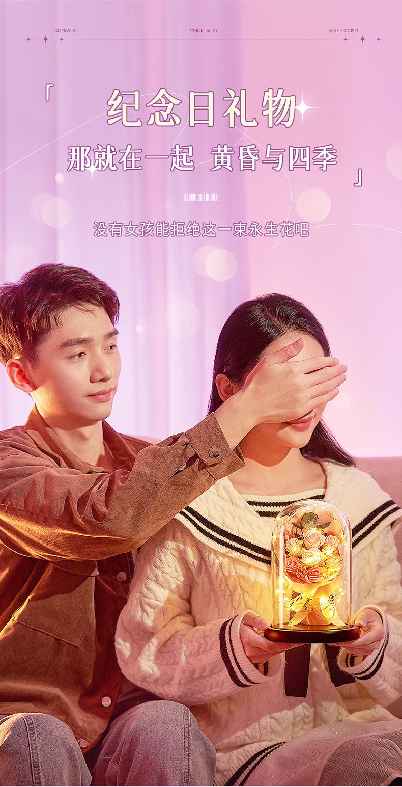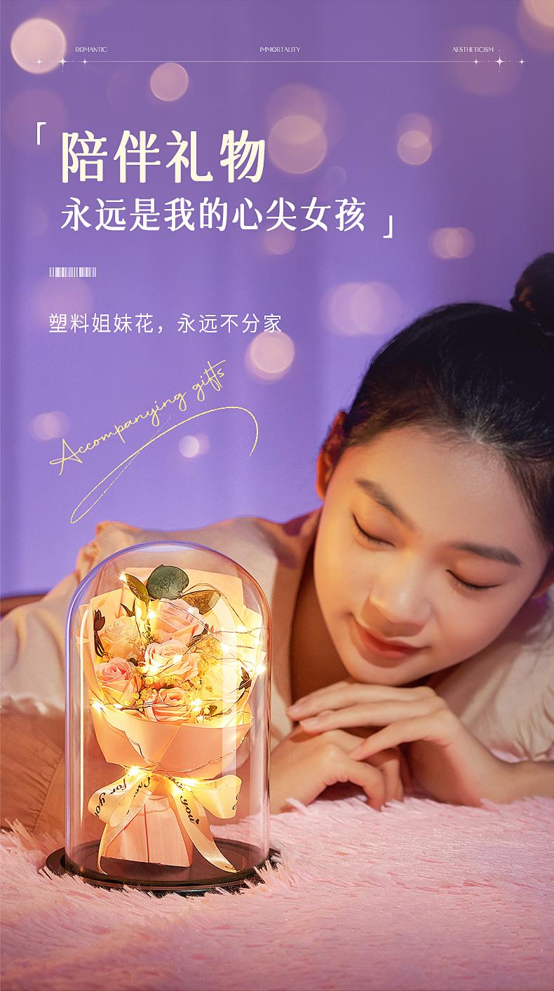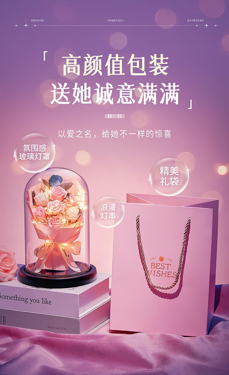 【母亲节!520情人节!永生花!浪漫不止!爱意永恒!】女神节三八节礼物!精致礼袋!浪漫灯串!一朵永不凋零的花!送她诚意满满!-FNJ2403