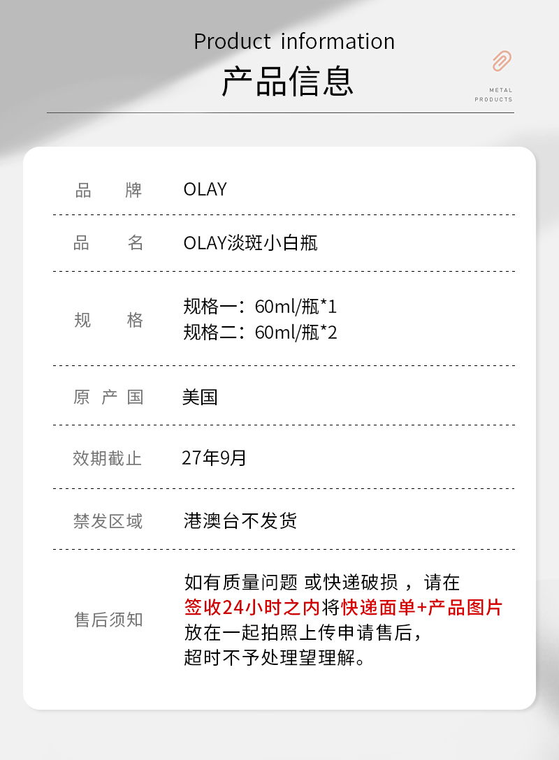 【OLAY淡斑小白瓶】晒后必备明星产品,28天根源淡斑,进阶美白,抗氧亮白,改善暗沉!(下单后72h发货)
