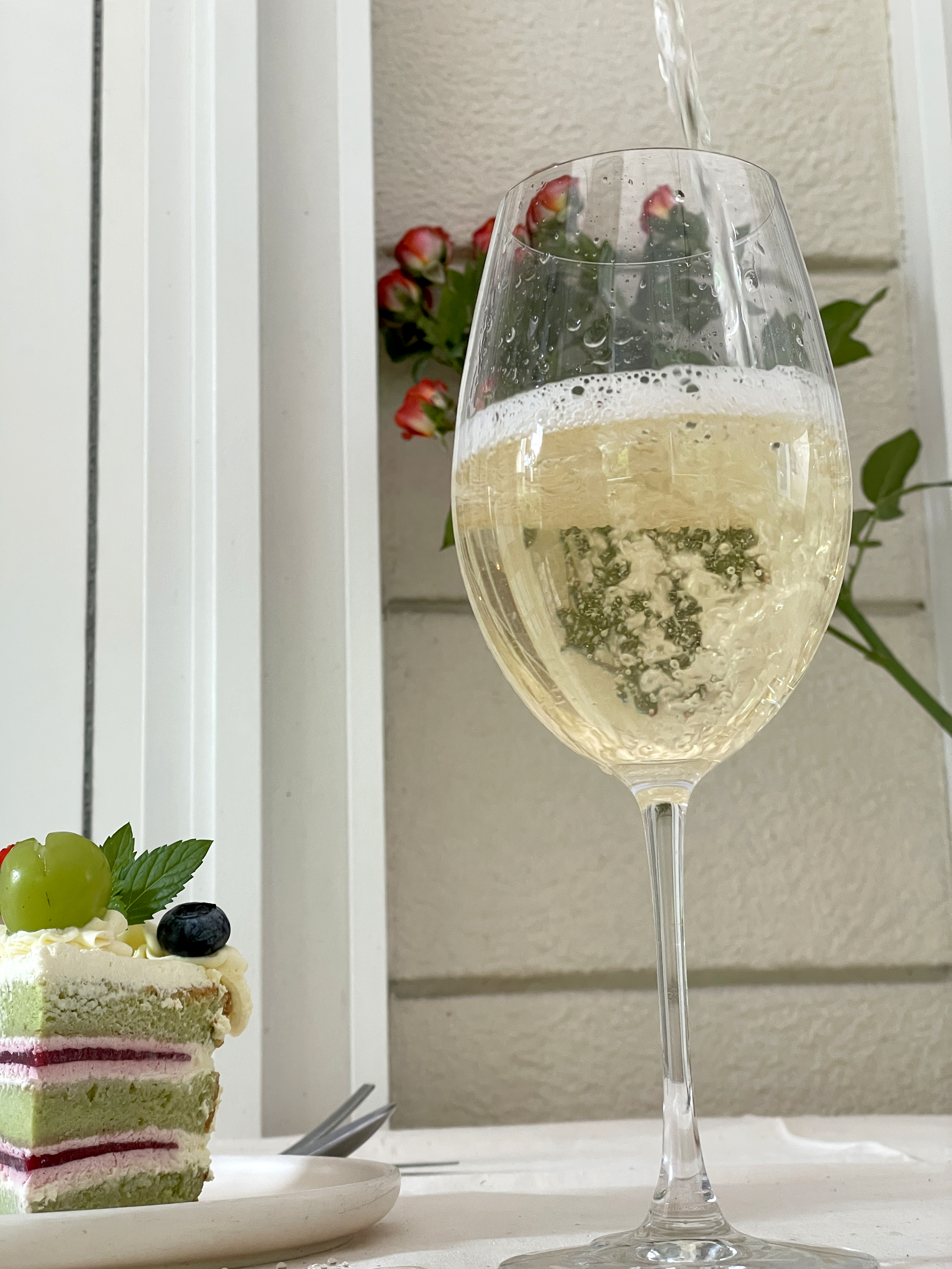 一杯冰镇半甜白葡萄酒配一份不太甜的小蛋糕