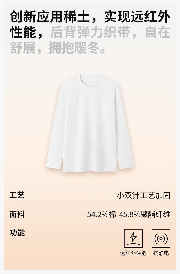 拇指白小T水云棉PLUS小高领长袖男款至简舒感系列