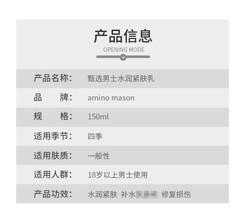 【特卖】AminoMason 阿蜜浓梅森 甄选男士水润紧肤乳 150ml【保质期:2026年4月】